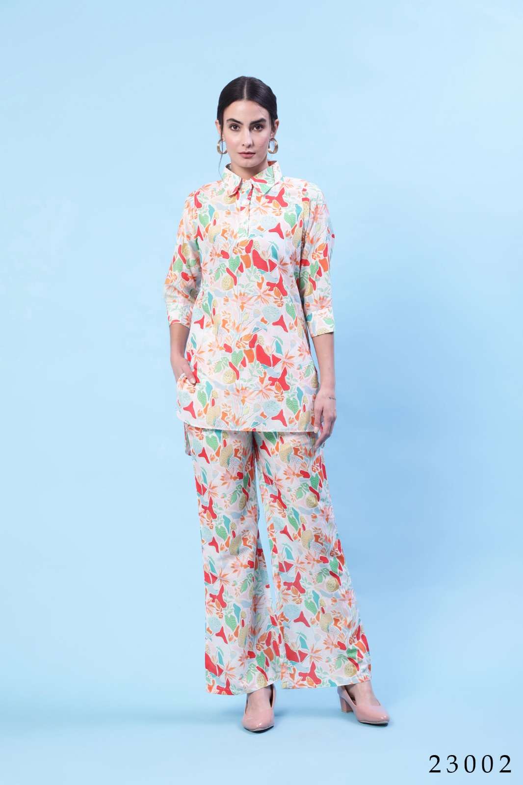 stylishta present charvi digital print fancy co-ord set designer top with pant