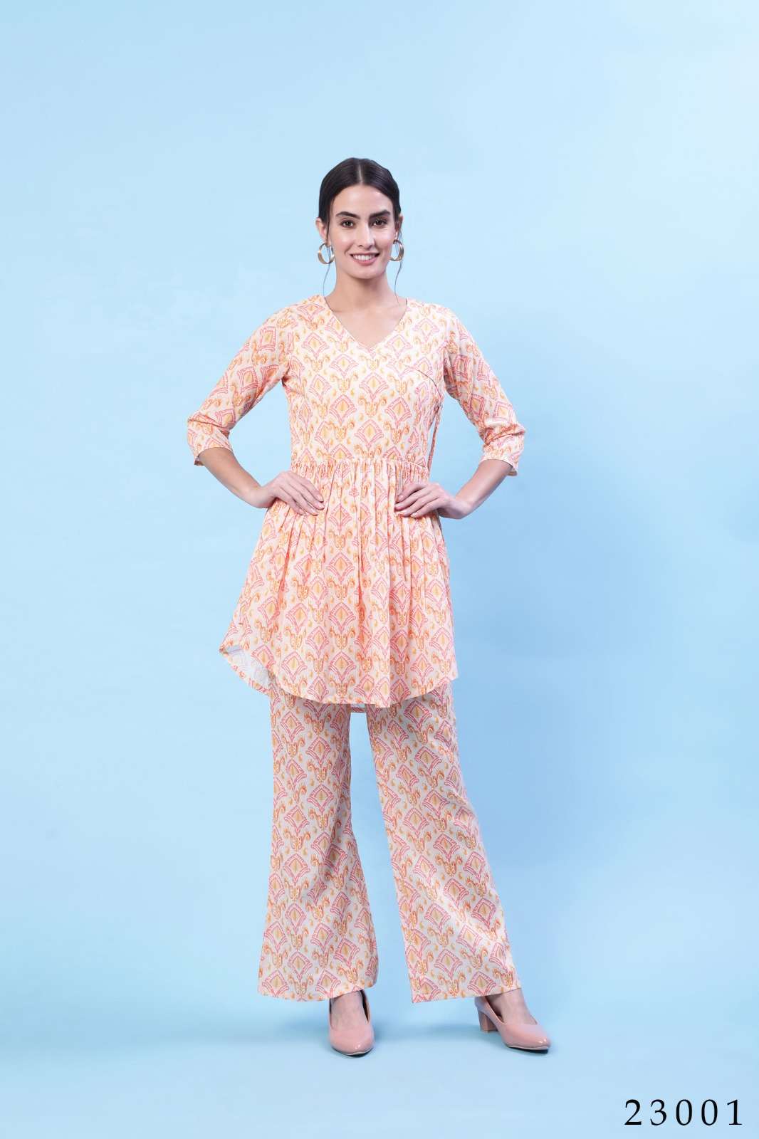 Stylishta present Co-ordinate set Designs Fabric Details- Top Length : Size : L(40) , XL(42) , XXL(44) GST : 5% Rate : |