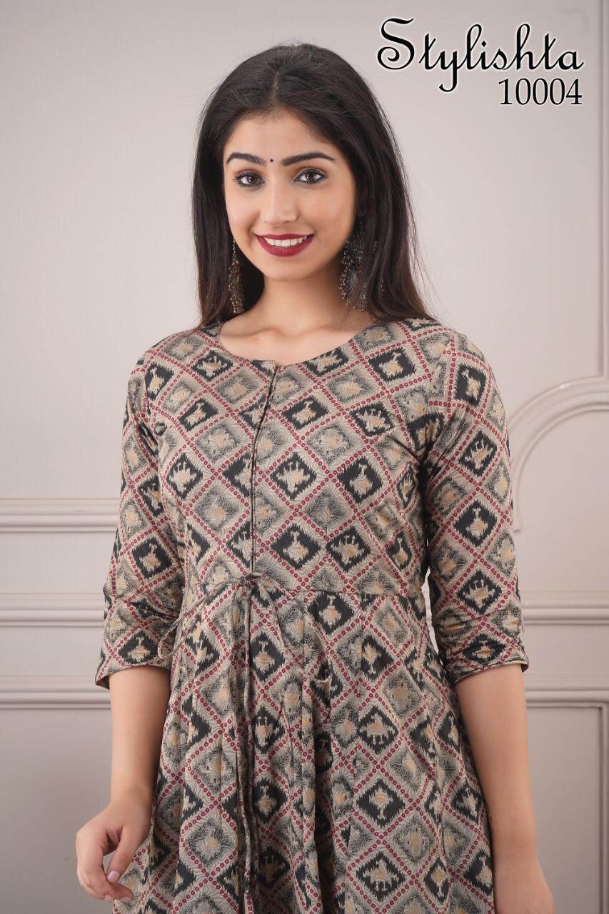 Stylishta Presents Stylishta Vol 10 Pure Chanderi Print Long Gown Kurti For Girls