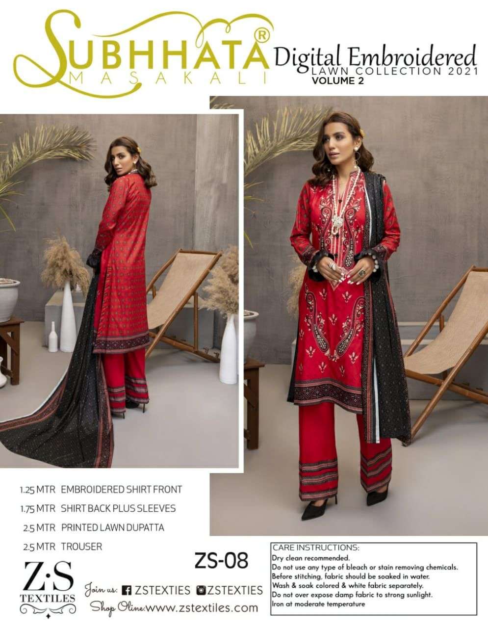 Back with huge public demand!! SUBHHATA Masakali Vol 2 Presenting the most demanded SUBHHATA Digital Printed Embroidered Lawn Collection with Digital Printed Lawn Dupatta and Dyed Bottom by ZS Textiles.. 8 Pieces Set.. 8 Designs Single Colourway.. RATE-1440/- Bookings Open.. |