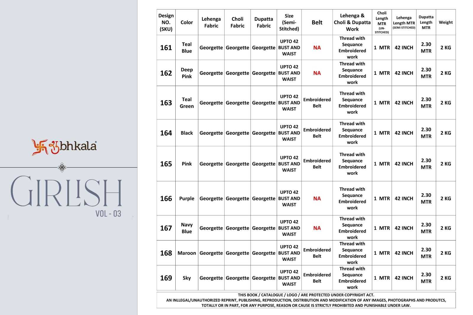 GIRLISH VOL. 3 DESIGNER EXCLUSIVE LEHENGA CHOLI COLLECTION GIRLISH VOL. 3 • RATE LIST 161: 3000/- CAN-CAN AVAILABLE. Real Pic Available. |