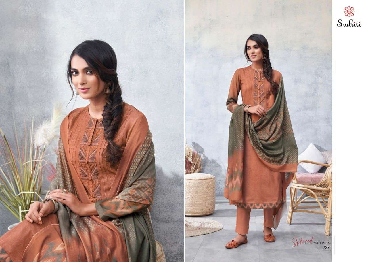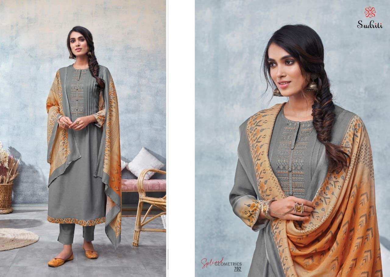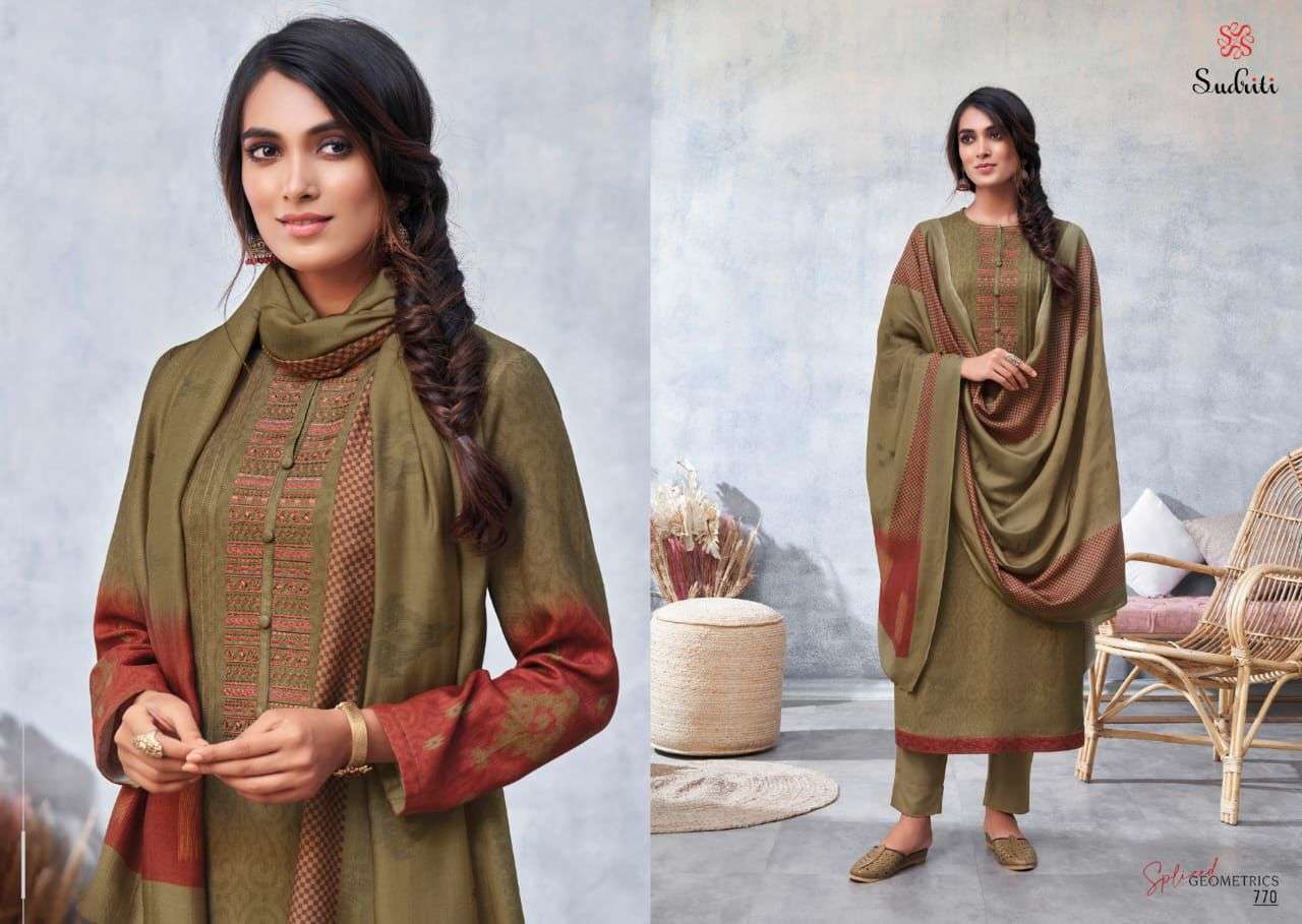 sudriti spliced geometrics pashmina ethnic wear fancy suit online supplier