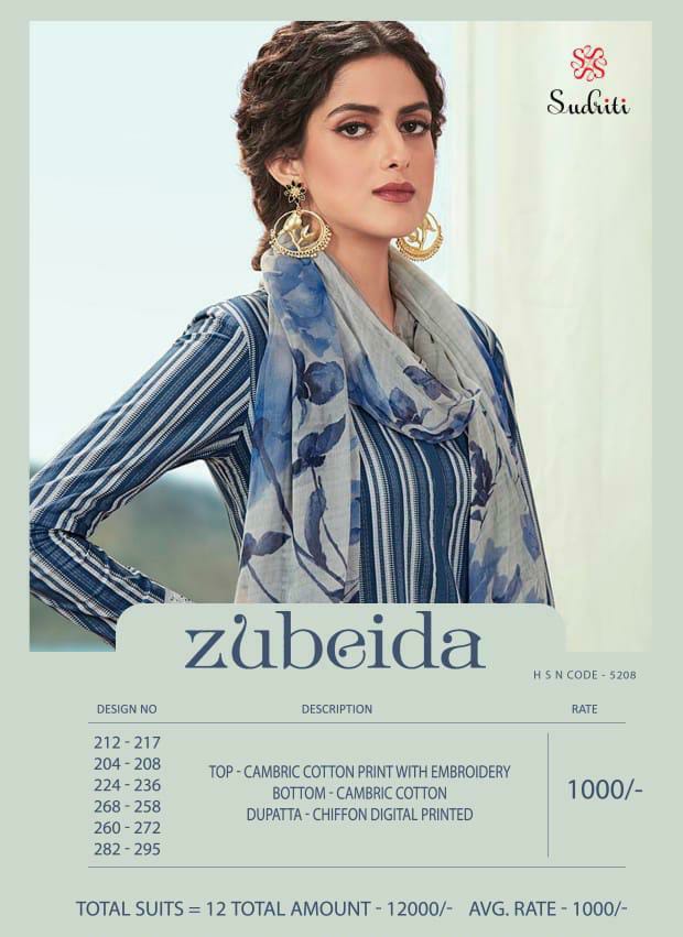 Sudriti Zubeida Cambric Cotton Print With Embroidery Dress Materials