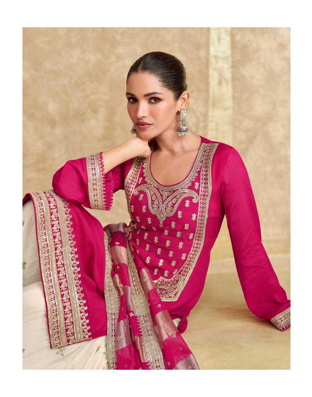 SAYURI DESIGNER SUHAGAN (3 PCS) FABRIC - PREMIUM REAL CHINON SILK ( HEAVY LOOK EMBROIDERED TOP WITH EMBROIDERED GHARARA AND DIGITAL CHINON SILK EMBROIDERED DUPATTA ) PRICE - 2699/- |