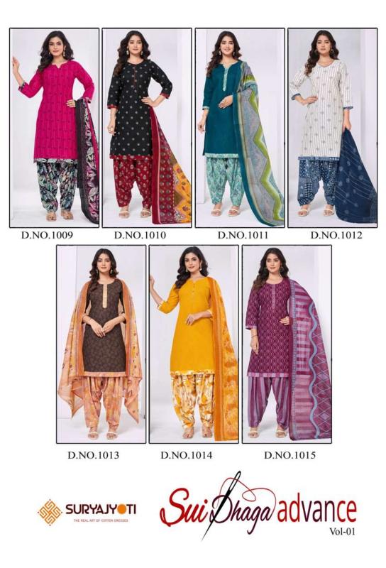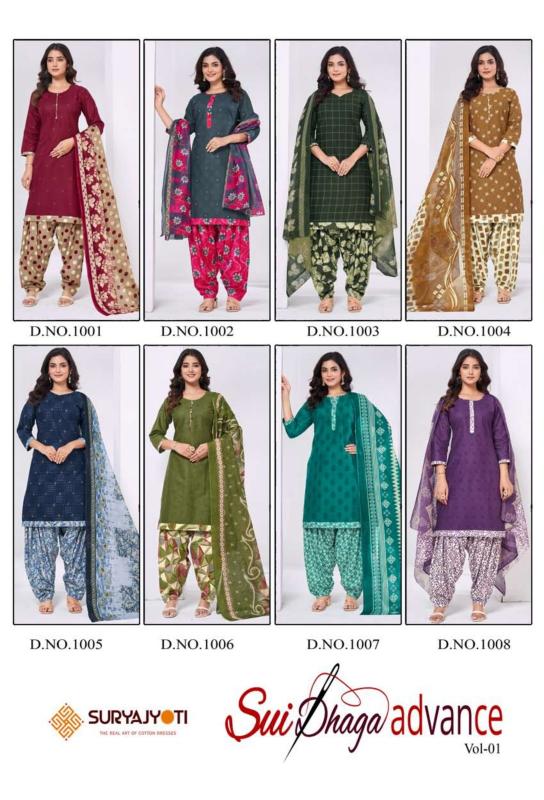DEAR CUSTOMER, WELCOME TO SURYAJYOTI LAUNCHING OF SURYAJYOTI ‘S READYMADE PATIYALA NEW CATALOG 📕 CATALOUGE:- *SUI DHAGA ADVANCE VOL -1*🪡🧵 👗FABRIC:- COTTON 🧣DUPATTA:- COTTON RATE PACKING:- EXCLUSIVE POUCH PACK |