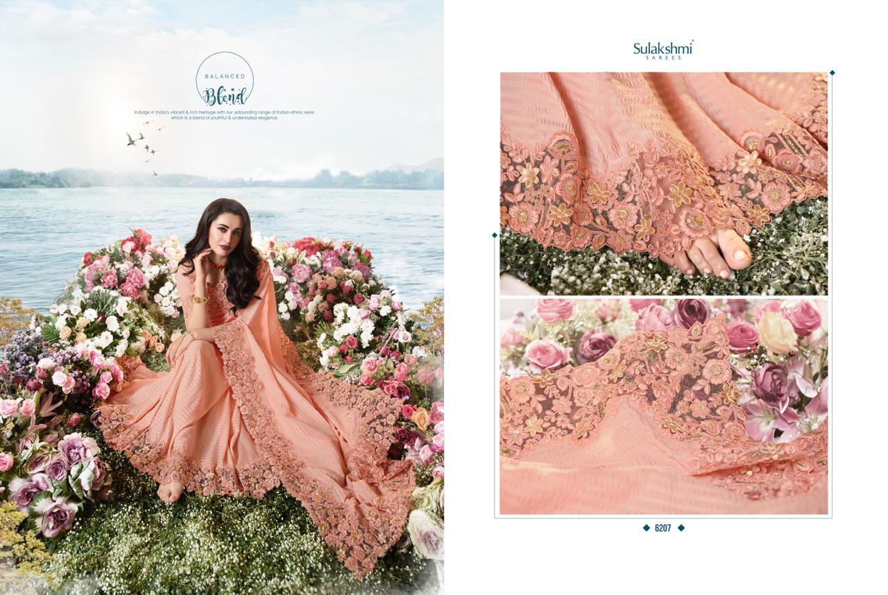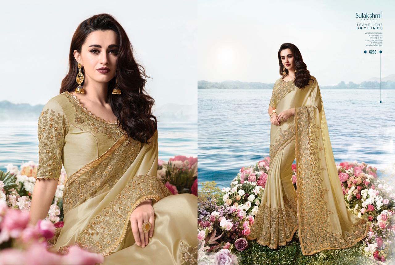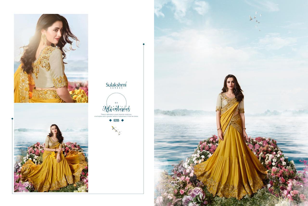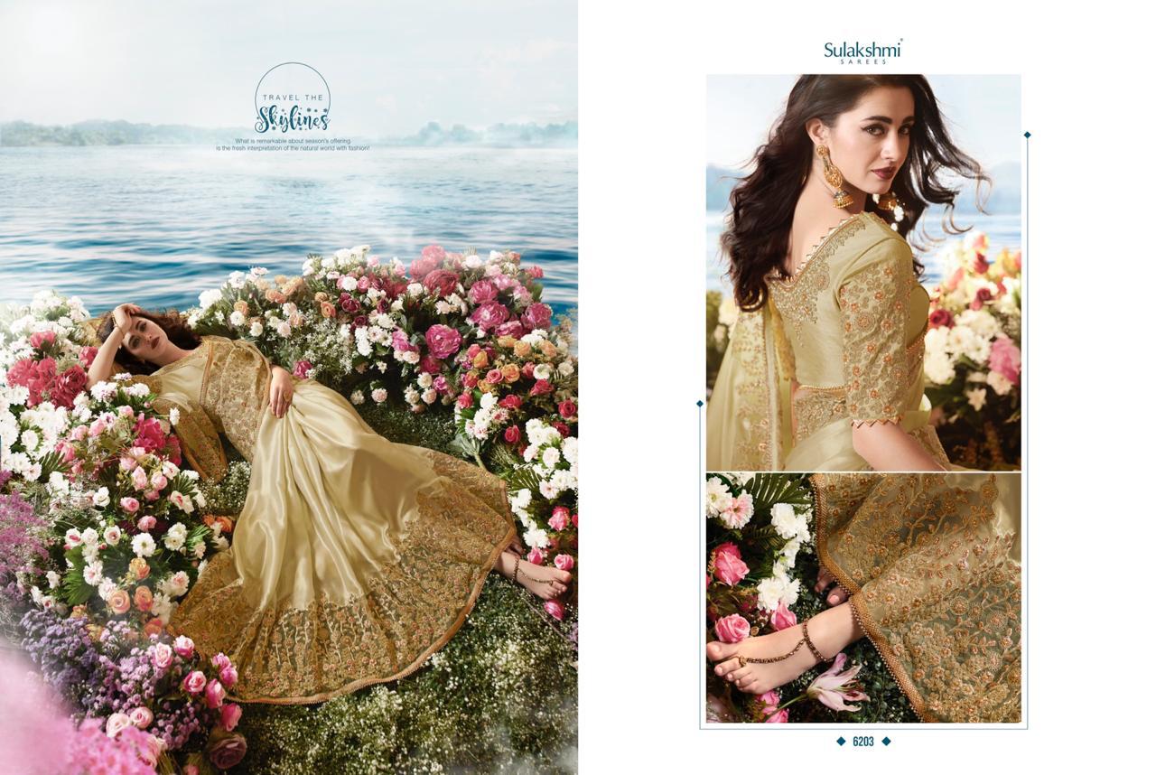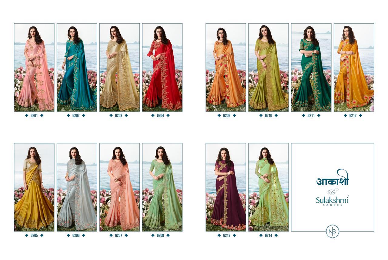 Sulakshmi Sarees Aakashi 6201-6214 Series Indian Bridal Party Wear Saris Designs 2020