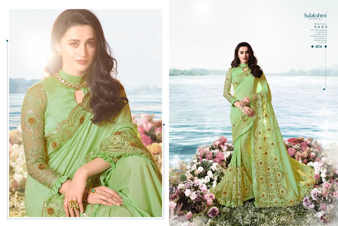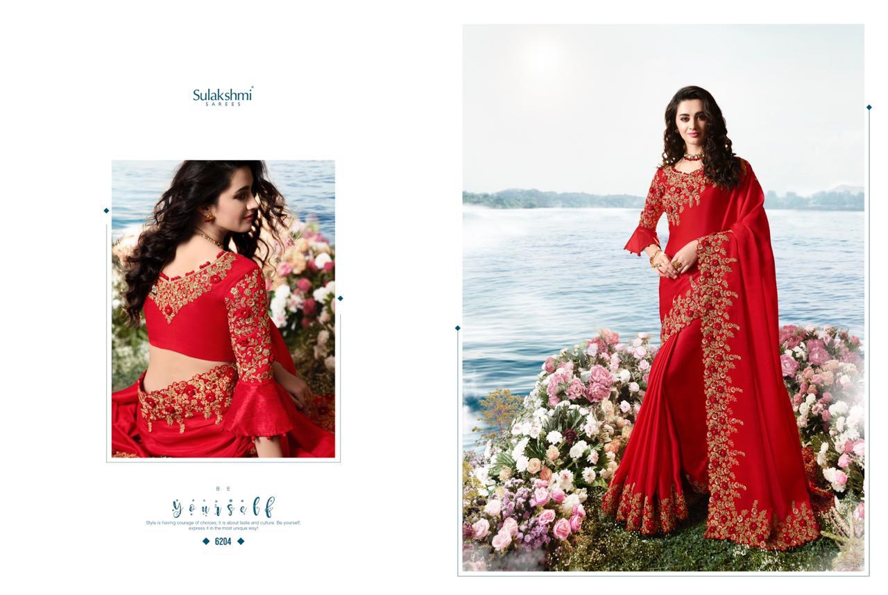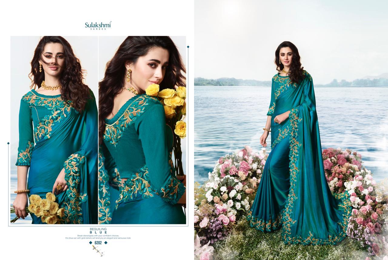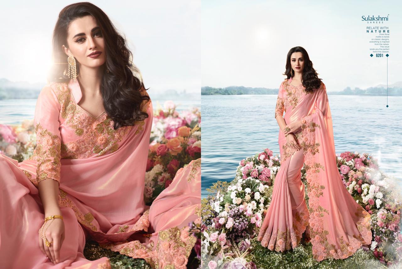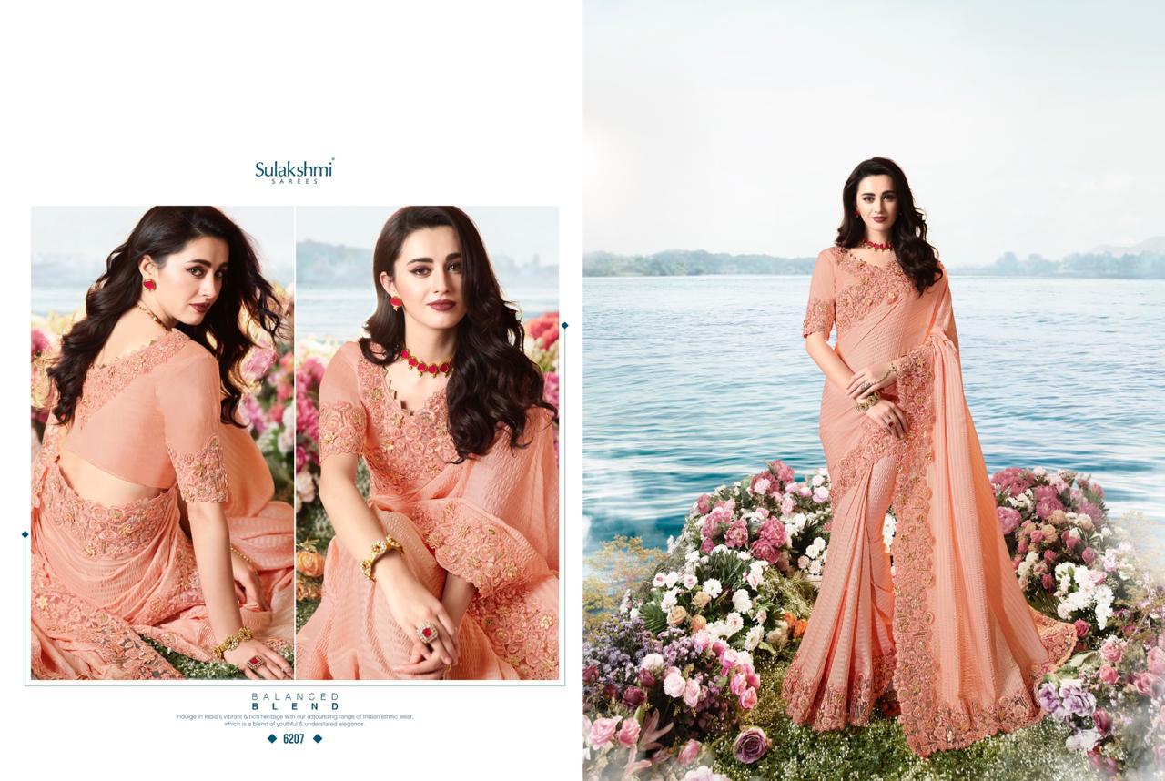 Sulakshmi Sarees Aakashi 6201-6214 Series Indian Bridal Party Wear Saris Designs 2020