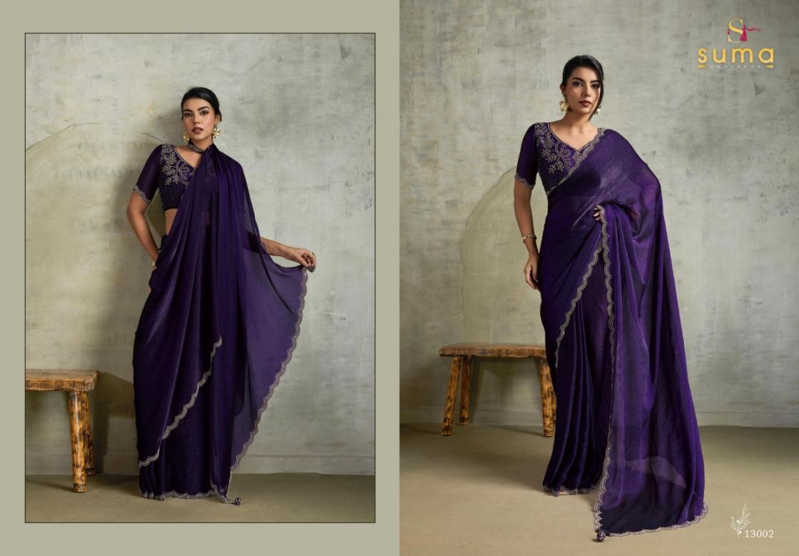 °°°°°°° 🕉️ °°°°°°° ❤️ Saree Drapes and Festival Cheers 🥂 Brand ~ Suma Designer 🩵 💕 Catalog ~ Amelia💕 Series ~ 13001 To 13008 Fabric _ Fendy Chiffon blooming Price $ 1380 /- per pcs GST 5% Extra Single & Bulk available Make Every moment memorable with SUMA sarees |