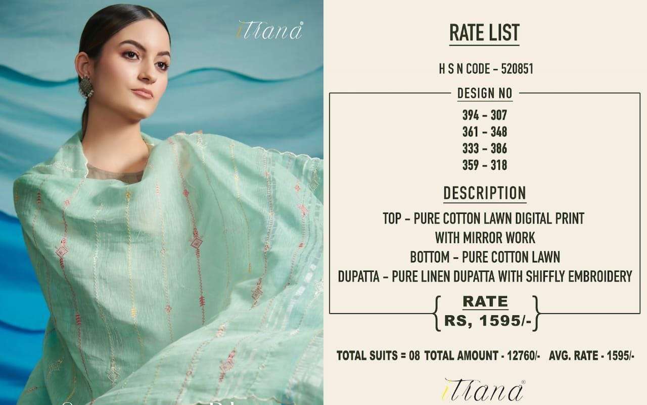 Itrana Presents Latest Collection Launched on 28-06-2022. Presenting Beautiful collection of 8 PCS with Unstitched .