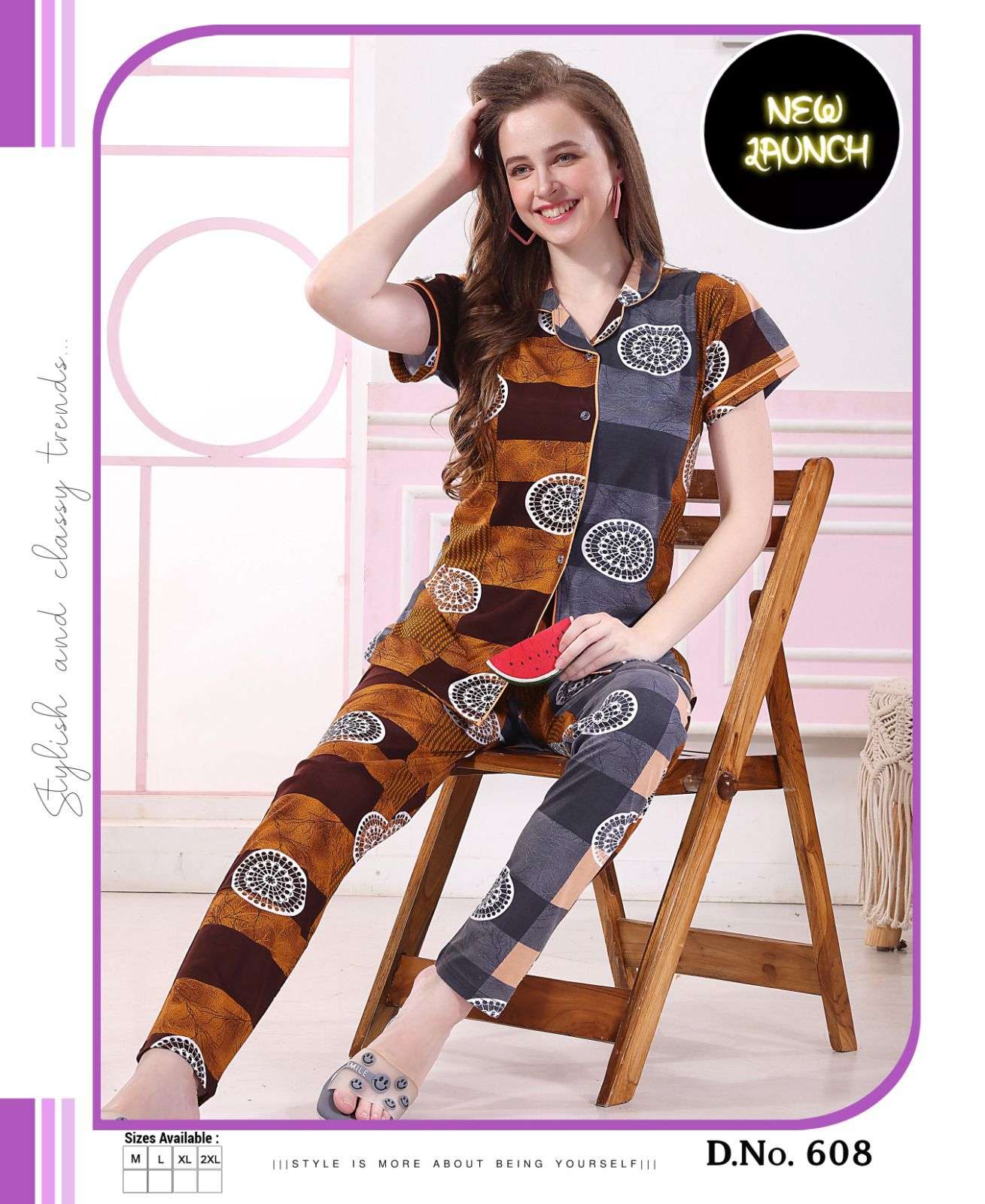 SUMMER SPECIAL C.NS VOL.B437 KNS Heavy Fancy Printed Shinker Hosiery Cotton Printed Collar Night Suits CATALOG