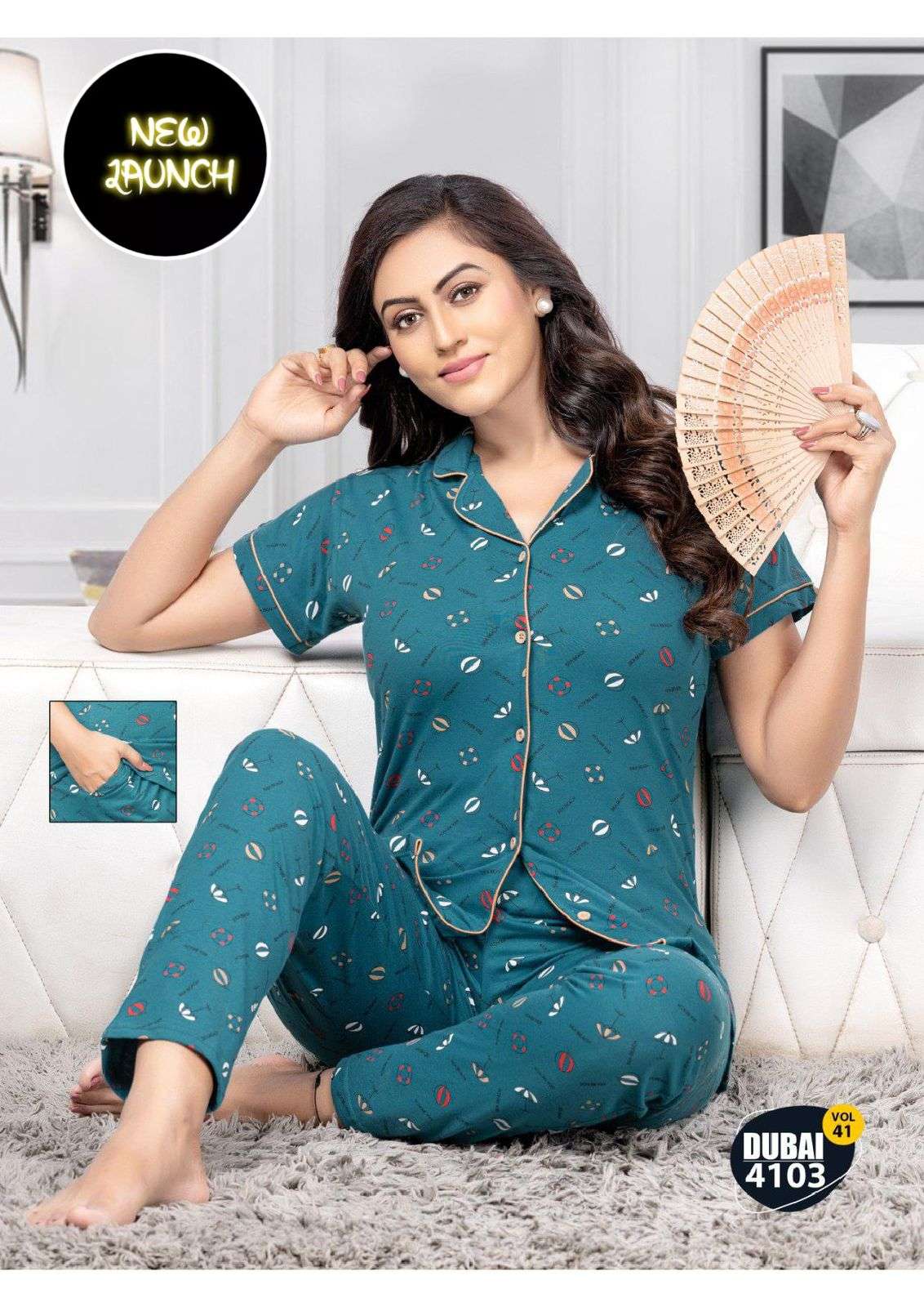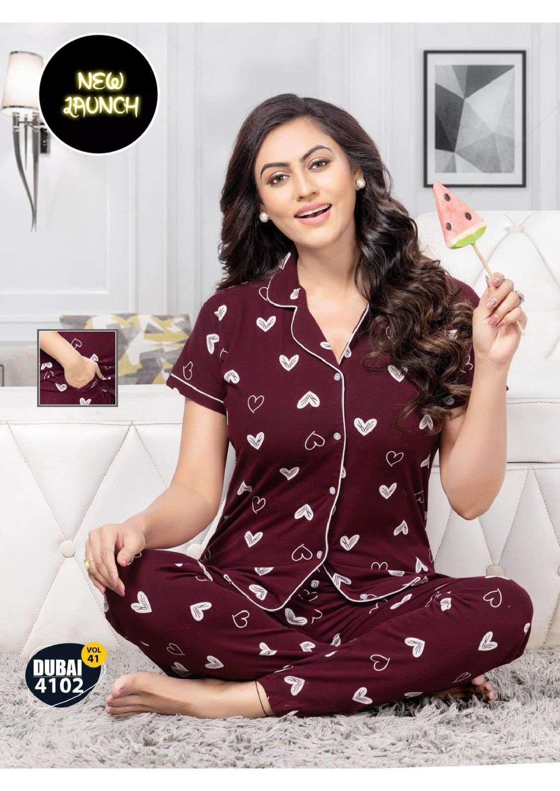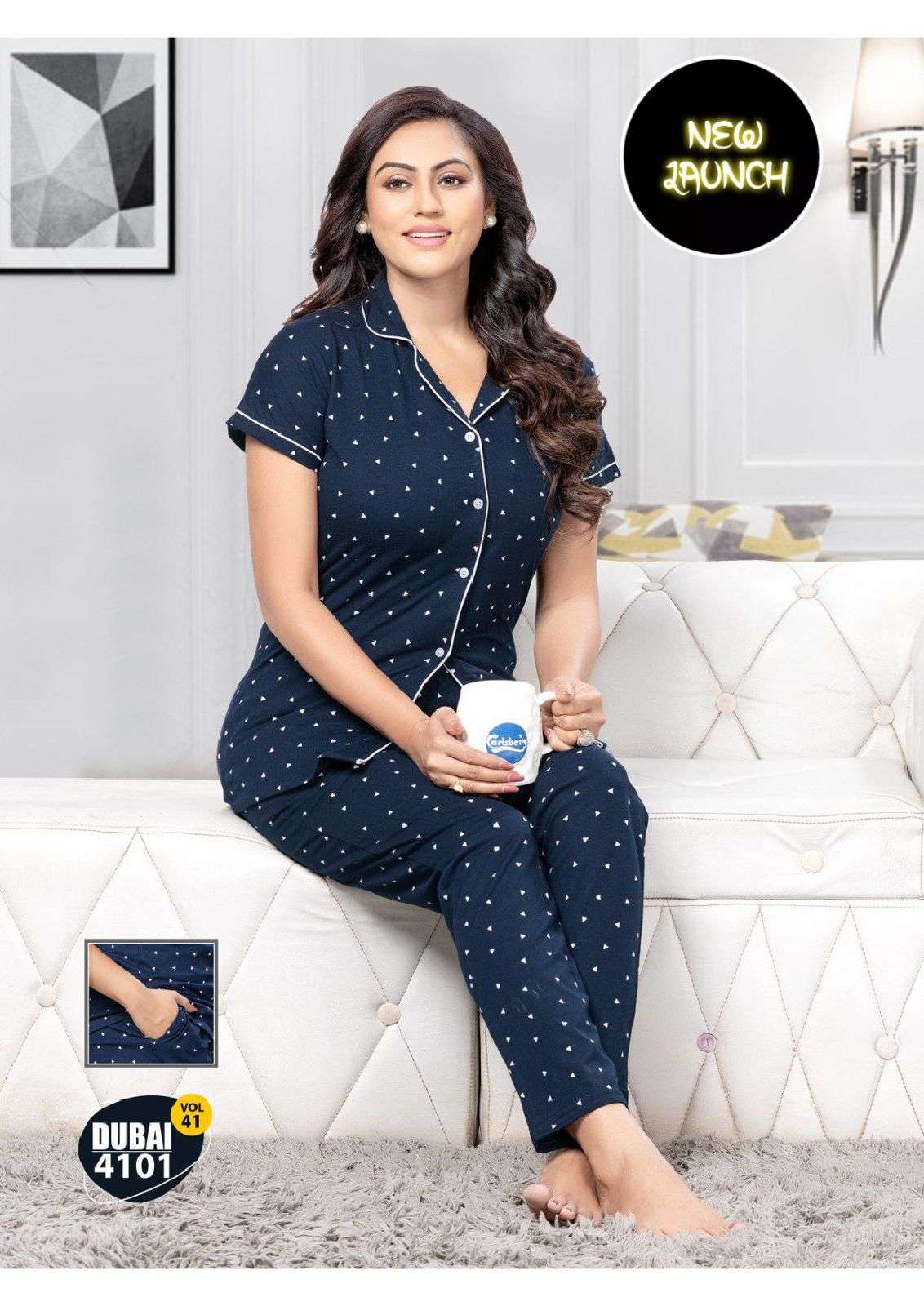 SUMMER SPECIAL C.NS VOL.D41 Heavy Fancy Printed Shinker Hosiery Collar Night Suits With Pocket CATALOG WHOLESALER BEST RATE