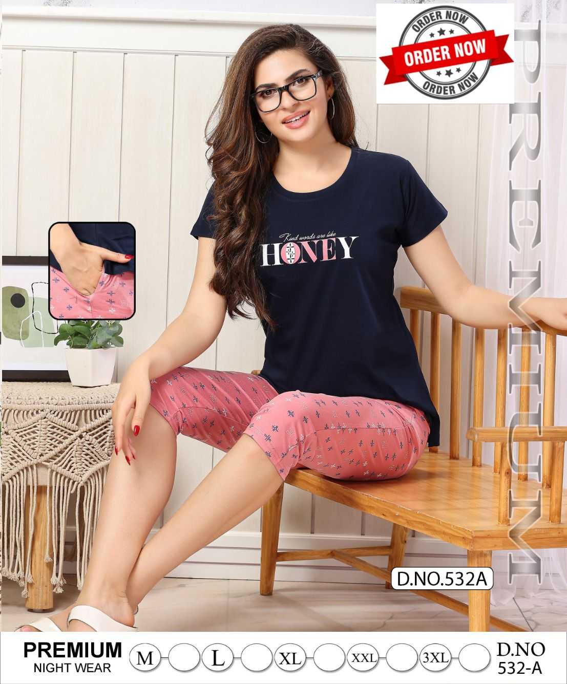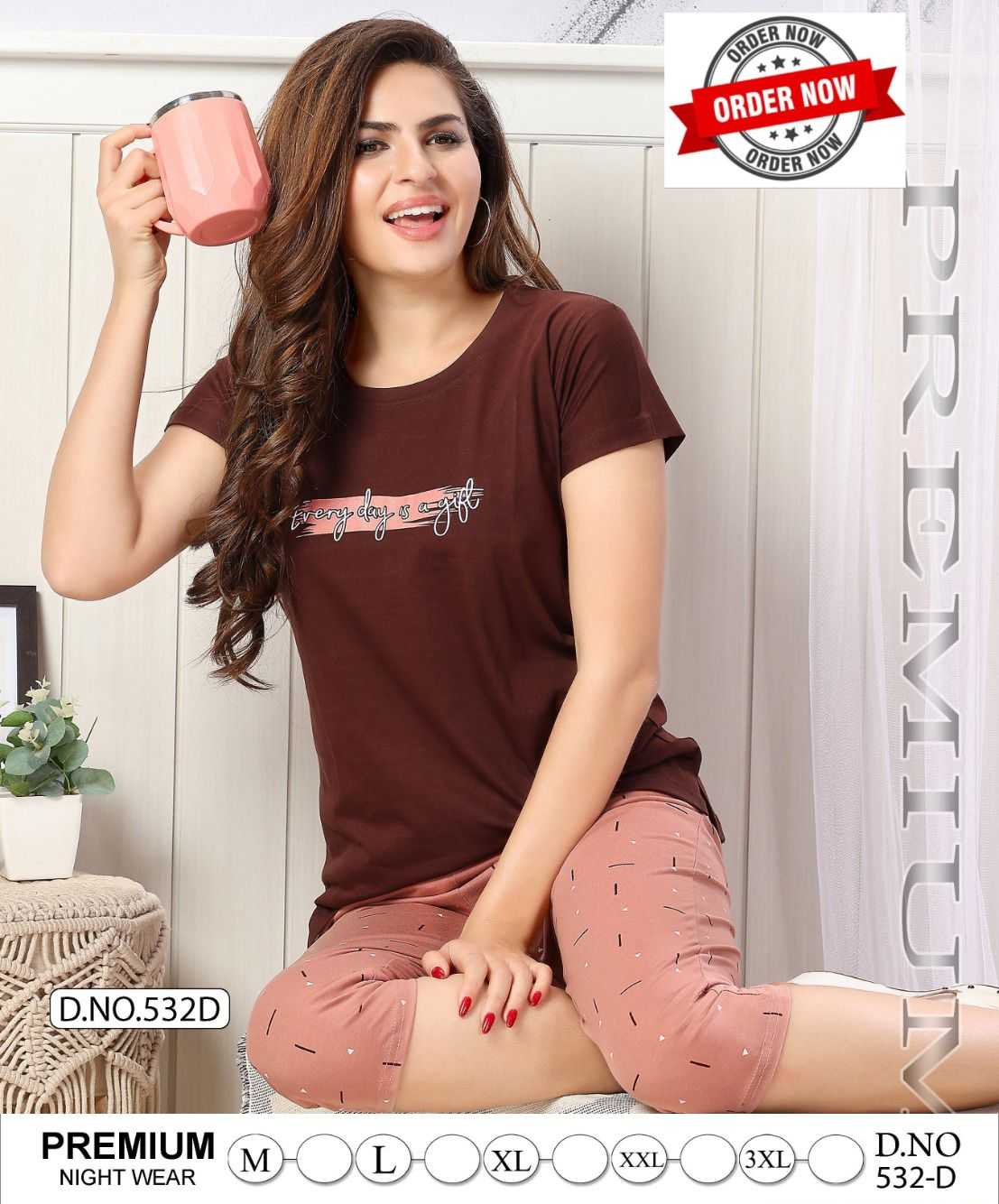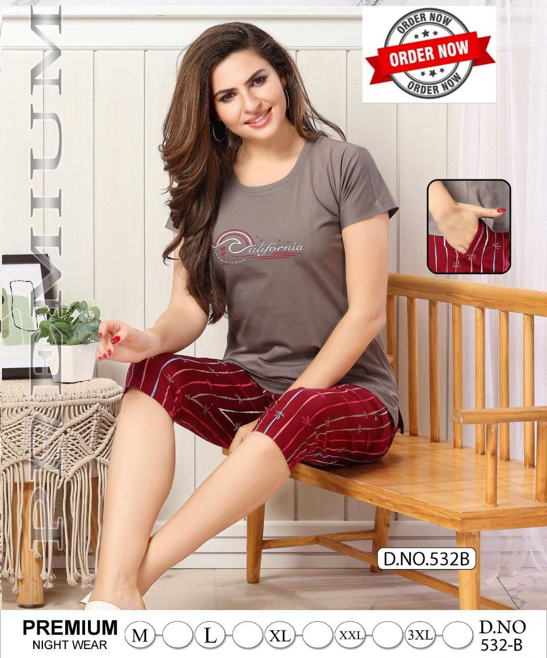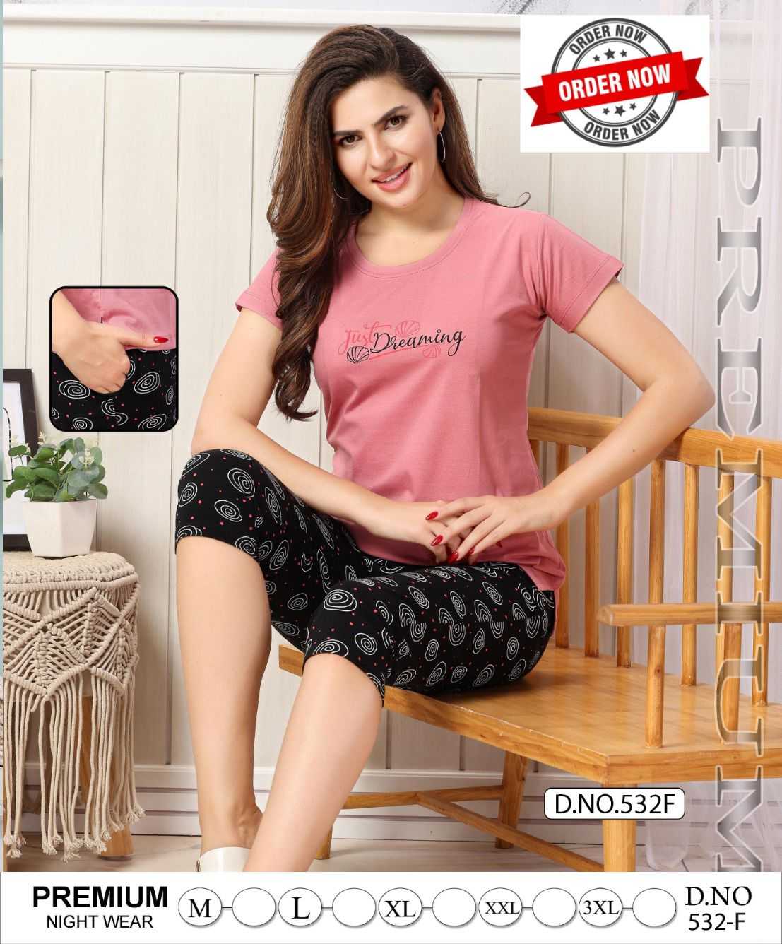 SUMMER SPECIAL CAPRI VOL.PC532 Heavy Shinker Hosiery Cotton Night Suits With Pocket Capri CATALOG WHOLESLAER BEST RATE