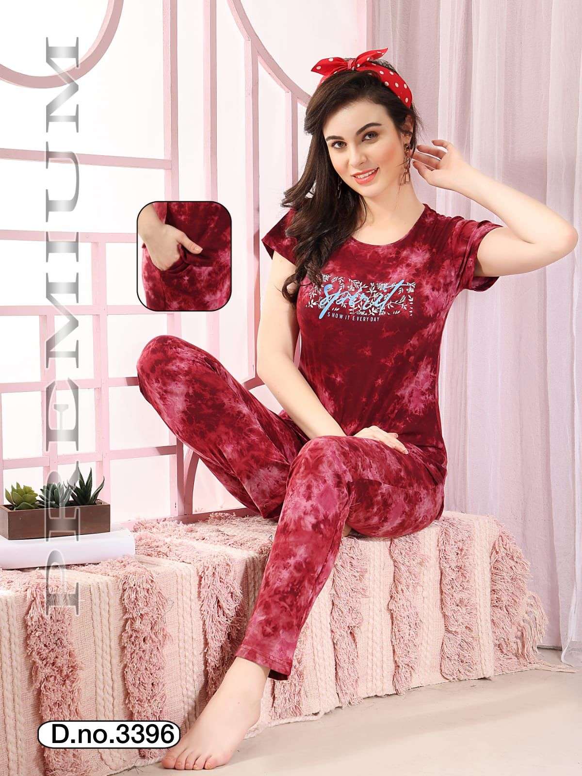 SUMMER SPECIAL NEW VOL.3396 Heavy Shinker Hosiery Cotton Tie Die Night Suits With Pocket CATALOG WHOLESALER BEST RATE