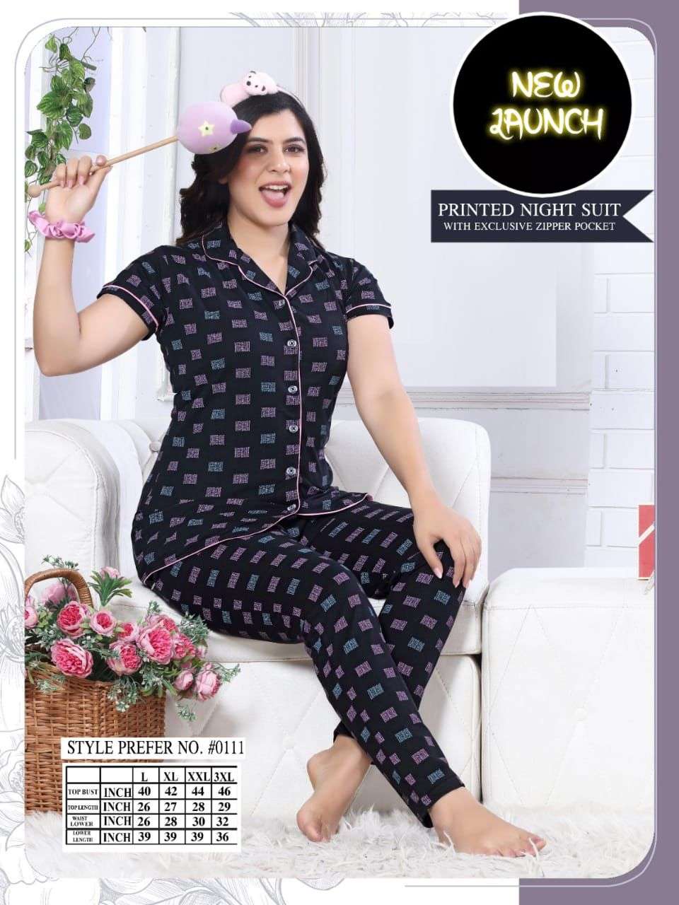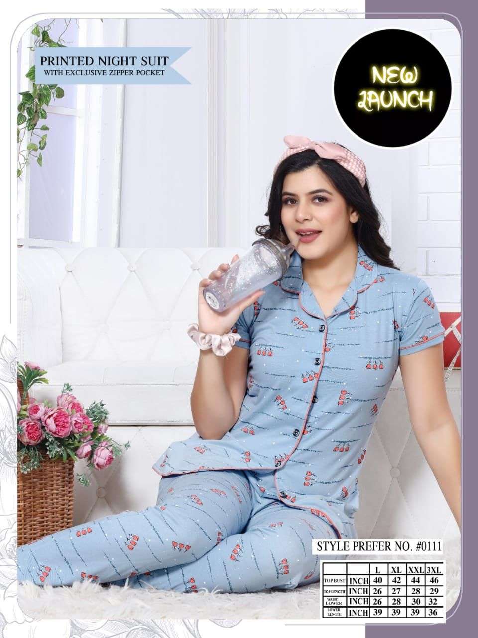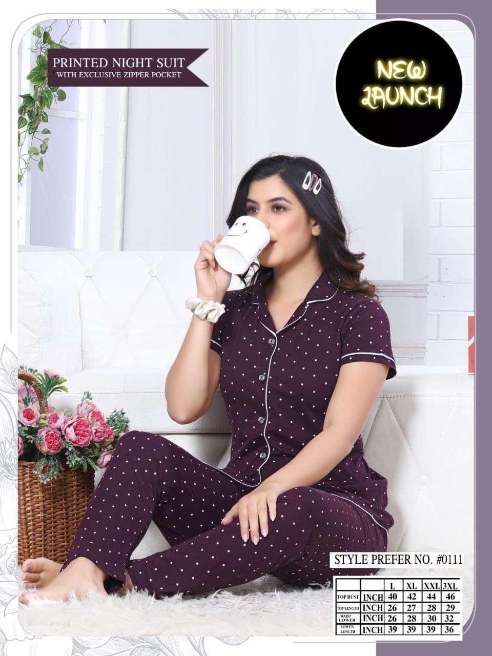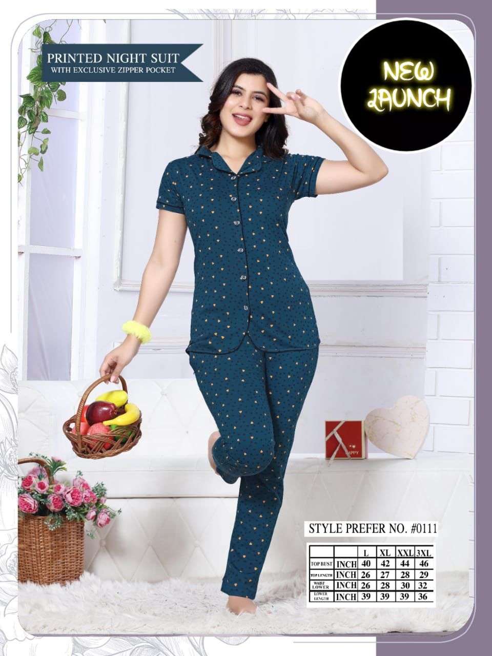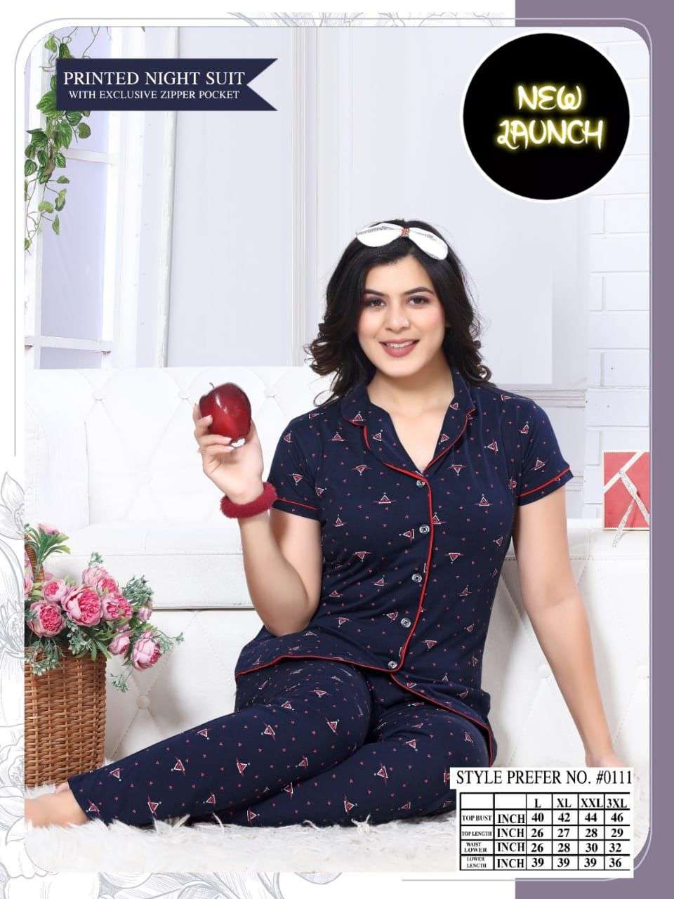 Summer Special No.#0111 Hosiery Cotton Printed Night Suit With Excl Zipp Pocket NIGHT SUIT CATALOG WHOLESALER BEST RATE