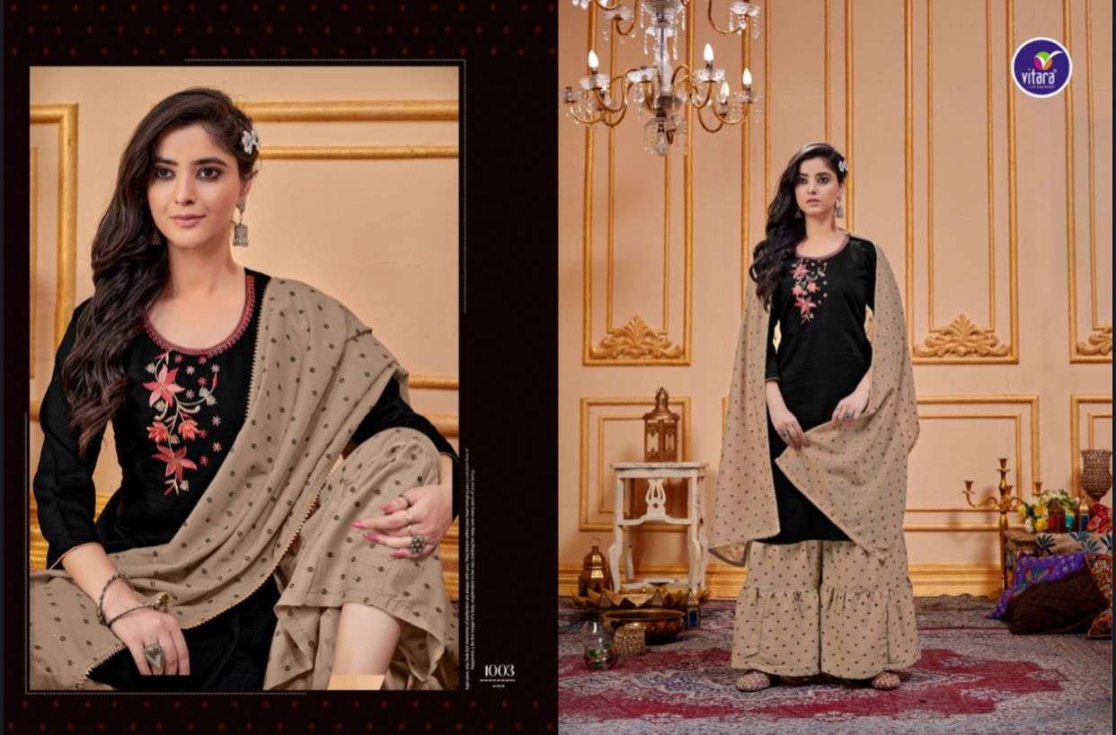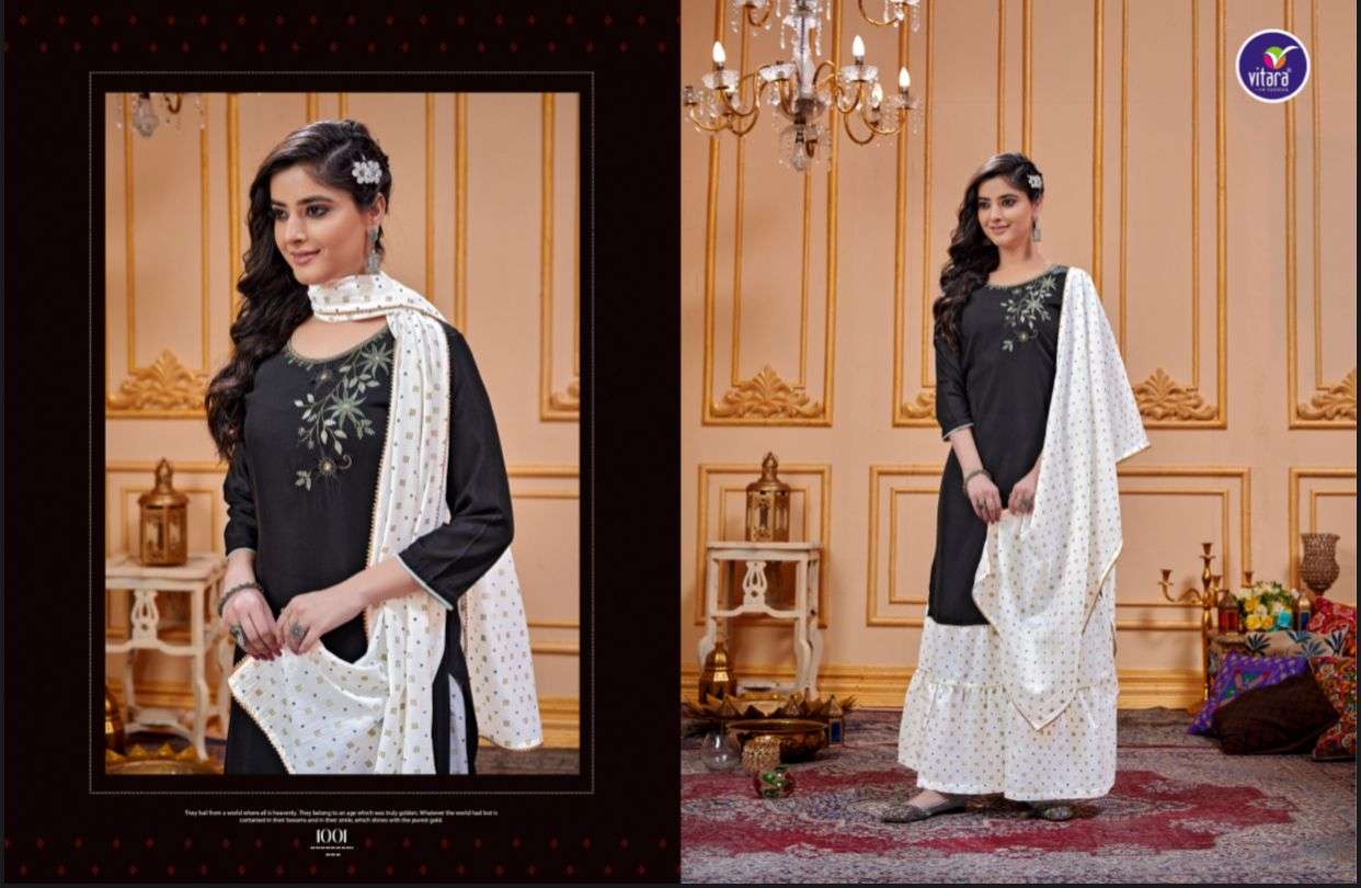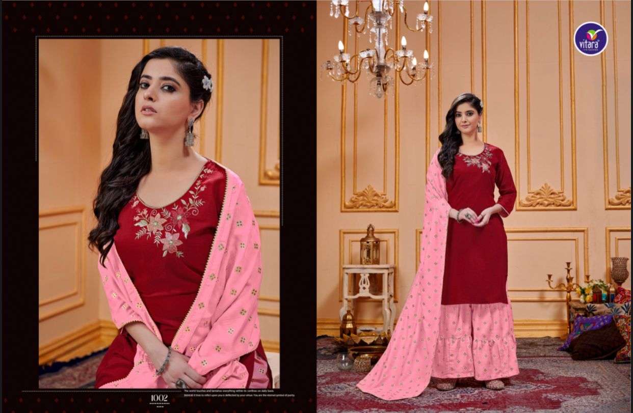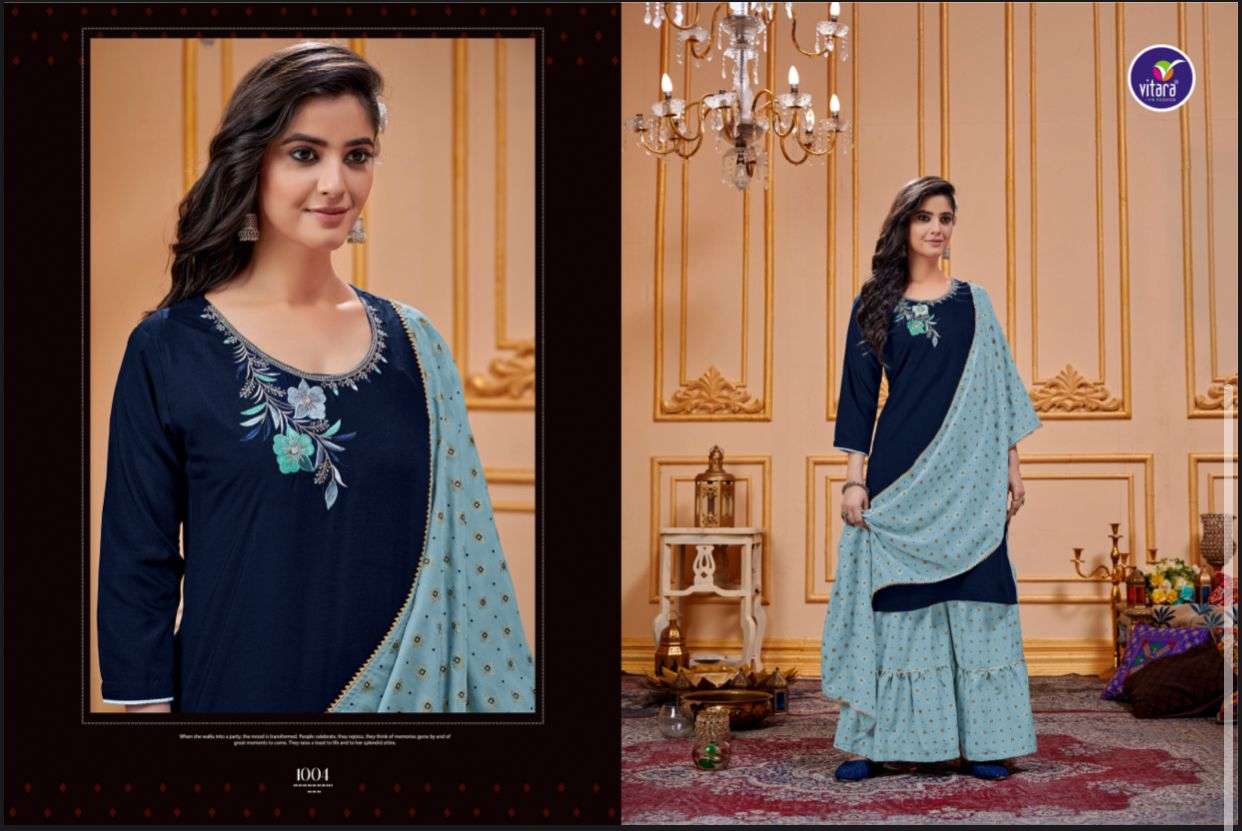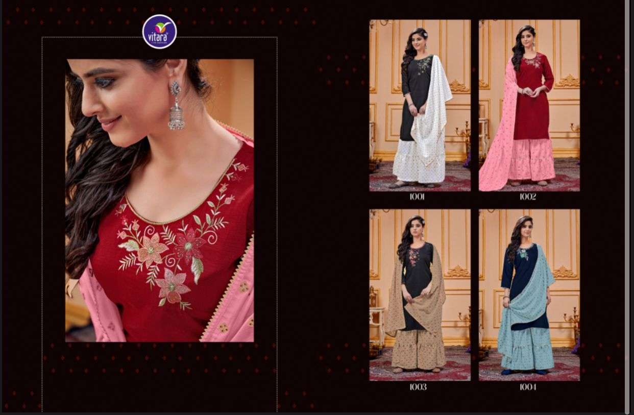 🎀 vitara fashion launches exclusive designer kurti sarara with dupatta 🎀 size-m(38),L(40),xl(42),xxl(44) ☣Designs- 4 🔴Rate:- 799 per pcs |