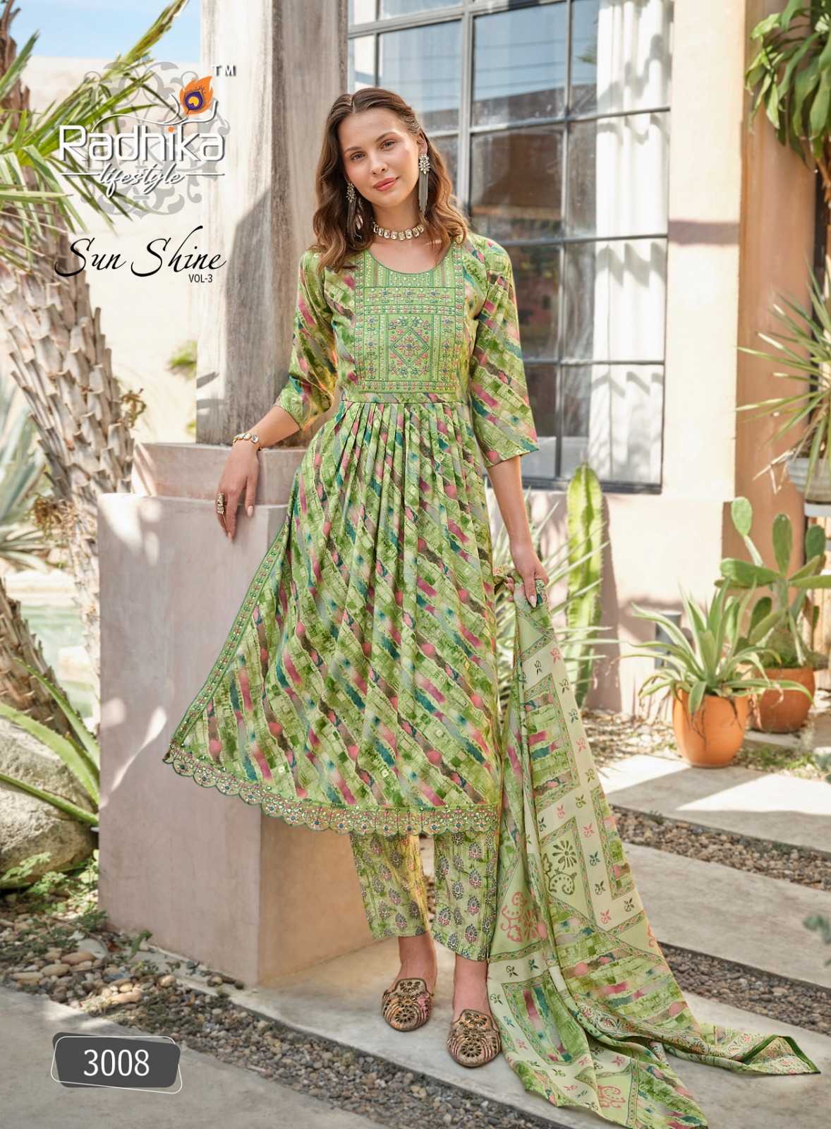 sun shine vol 3 by radhika lifestyle fancy readymade nayra cut 3pcs set festive collection