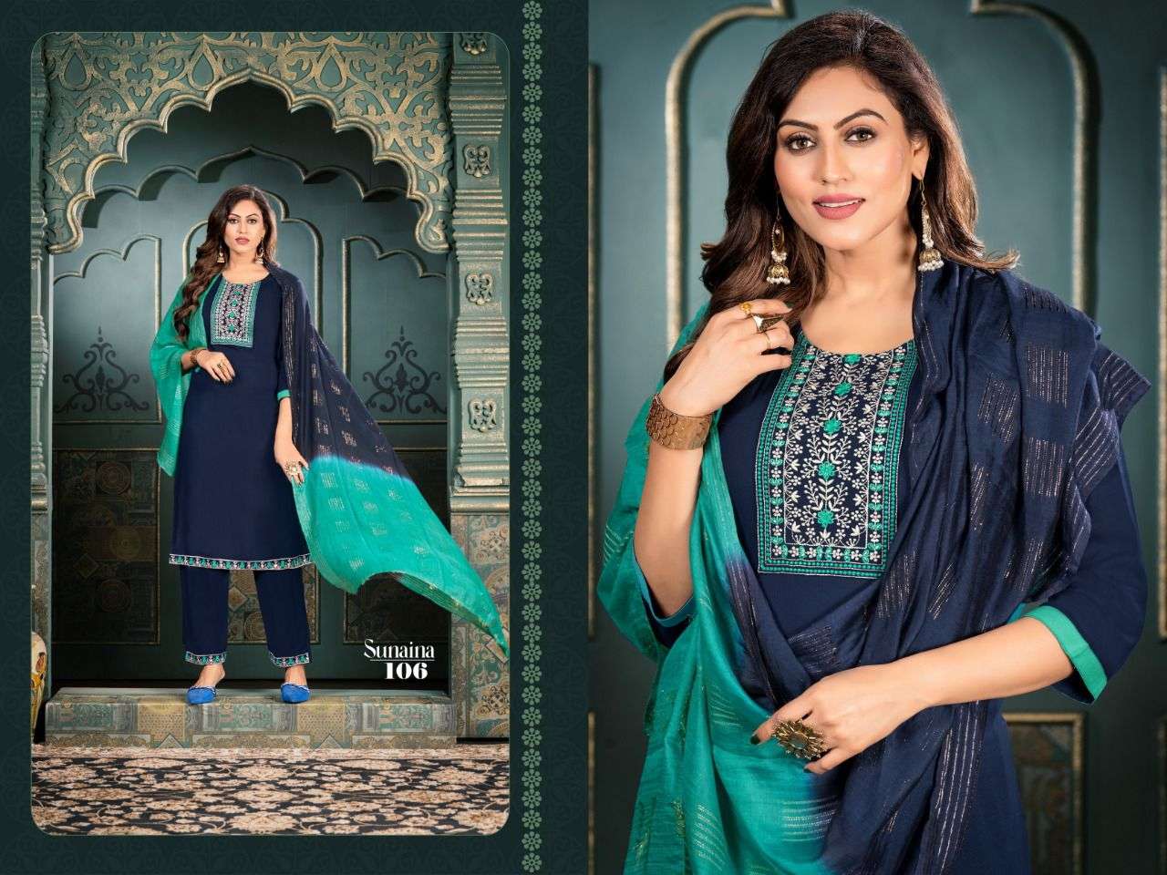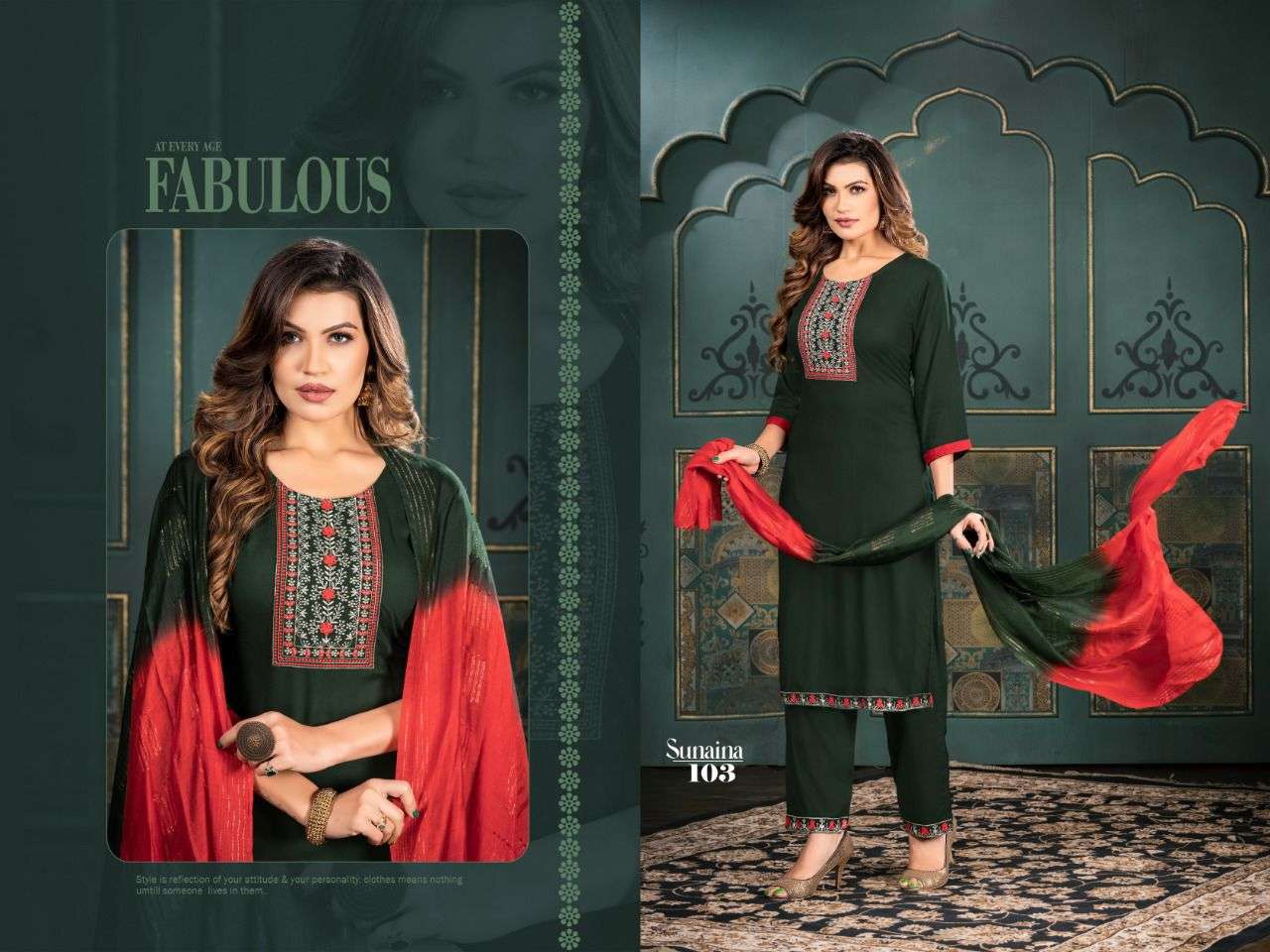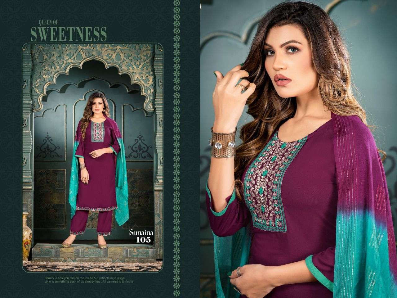 SUNAINA RAYON 14KG EMBROIDERY TOP PENT FANCY DUPATTA READYMADE SUIT CATALOG WHOLESALER BEST RATE