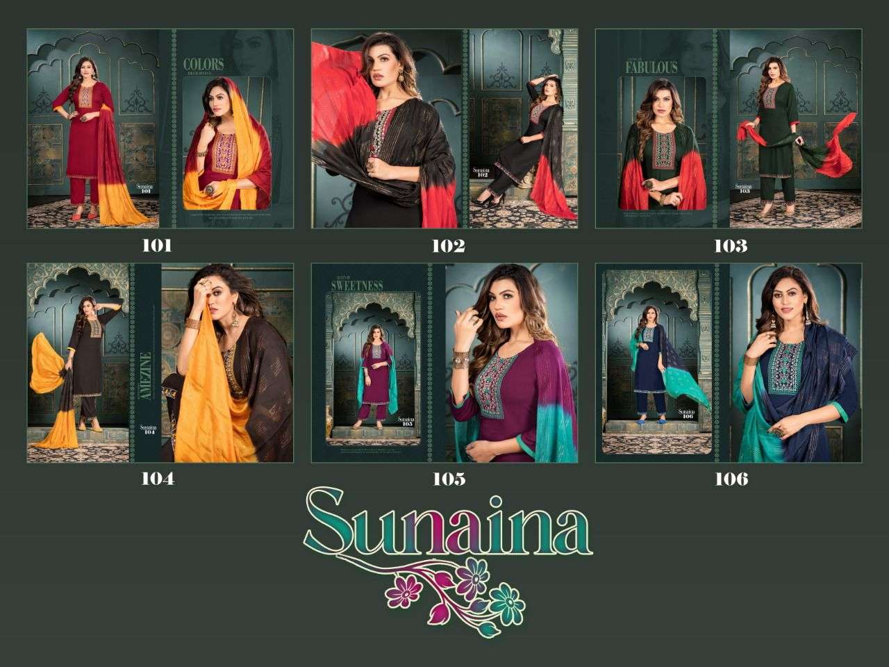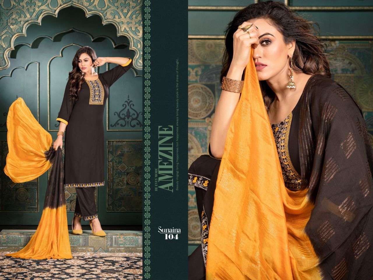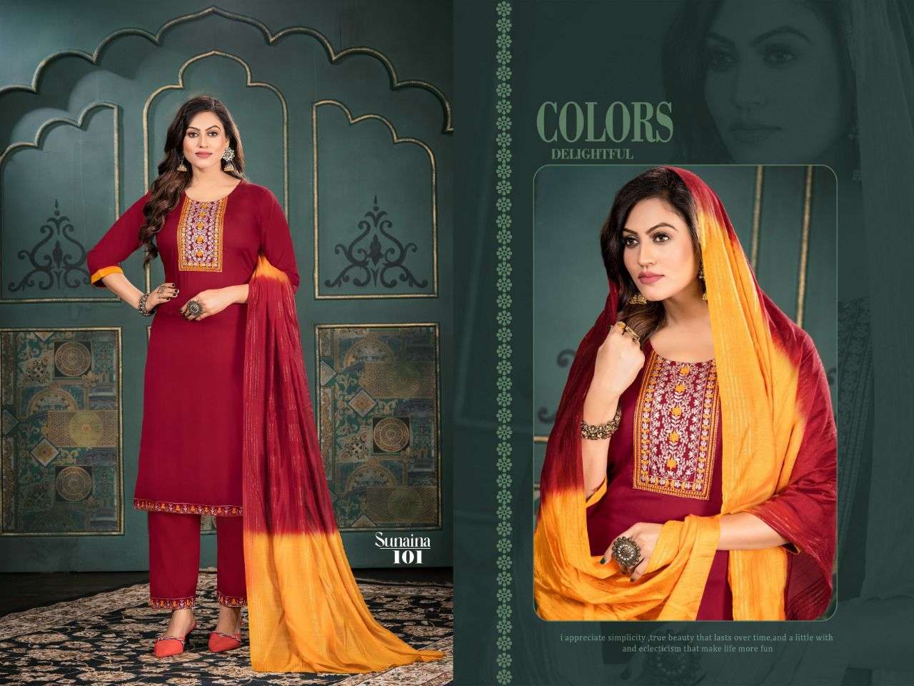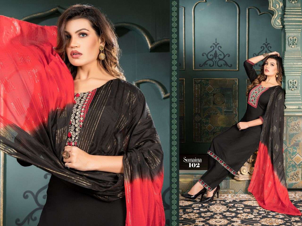 SUNAINA RAYON 14KG EMBROIDERY TOP PENT FANCY DUPATTA READYMADE SUIT CATALOG WHOLESALER BEST RATE