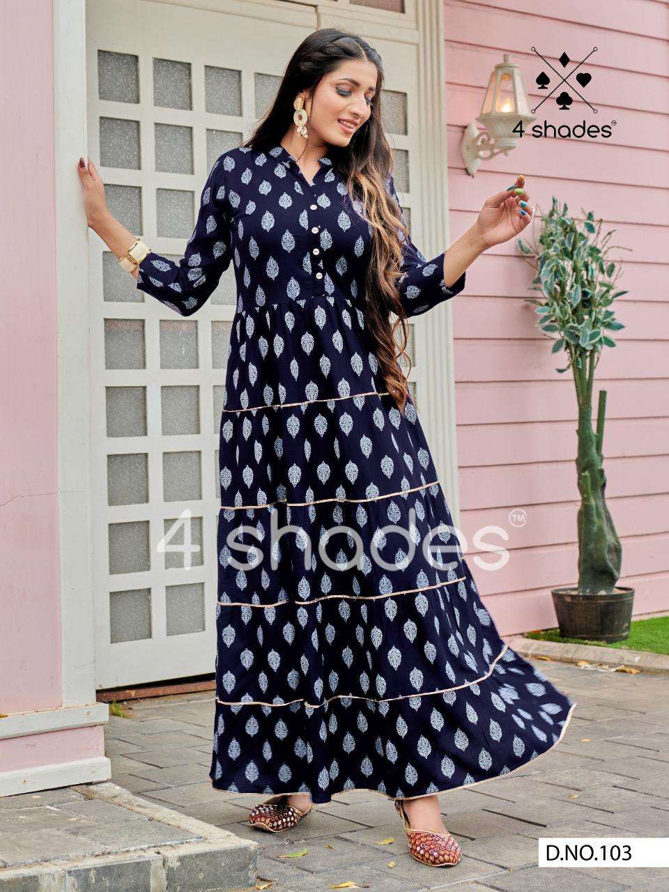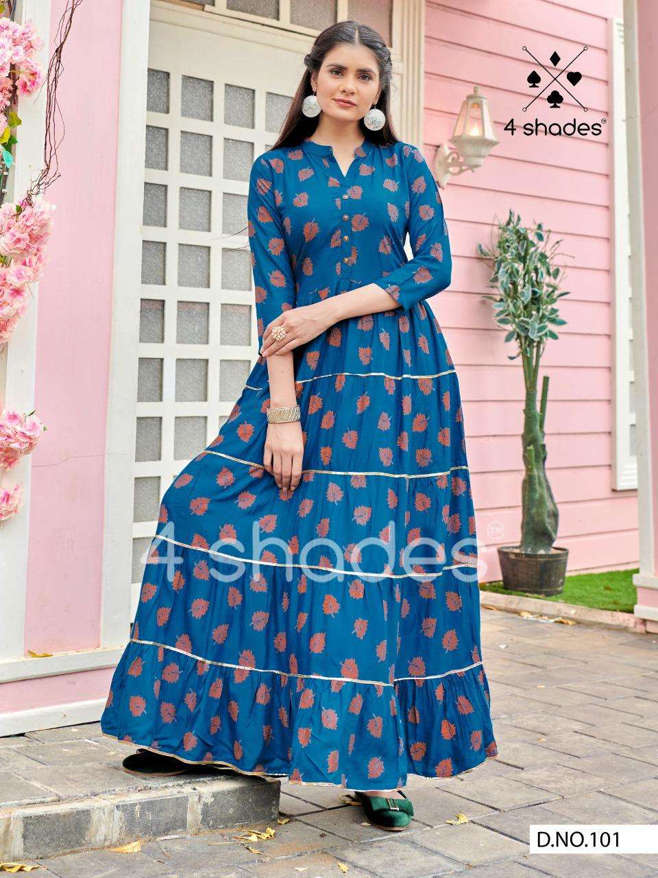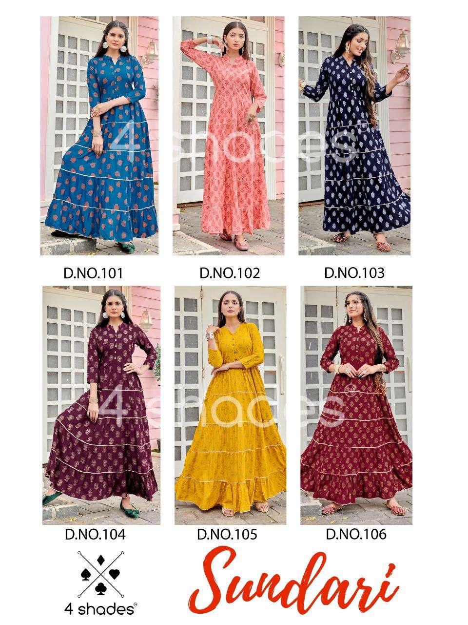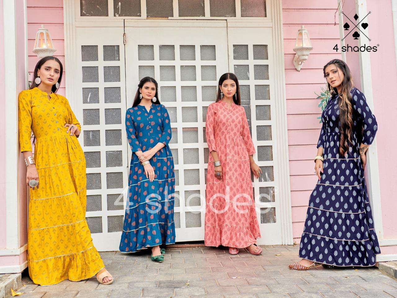 4SHADES BY BLUE HILLS Presents SUNDARI VOL 1 Clothes mean nothing until someone lives in them - gown style -52 length -M (38)  L  (40) XL (42 )  XXL (44) 3XL (46) Rate -595+GST |