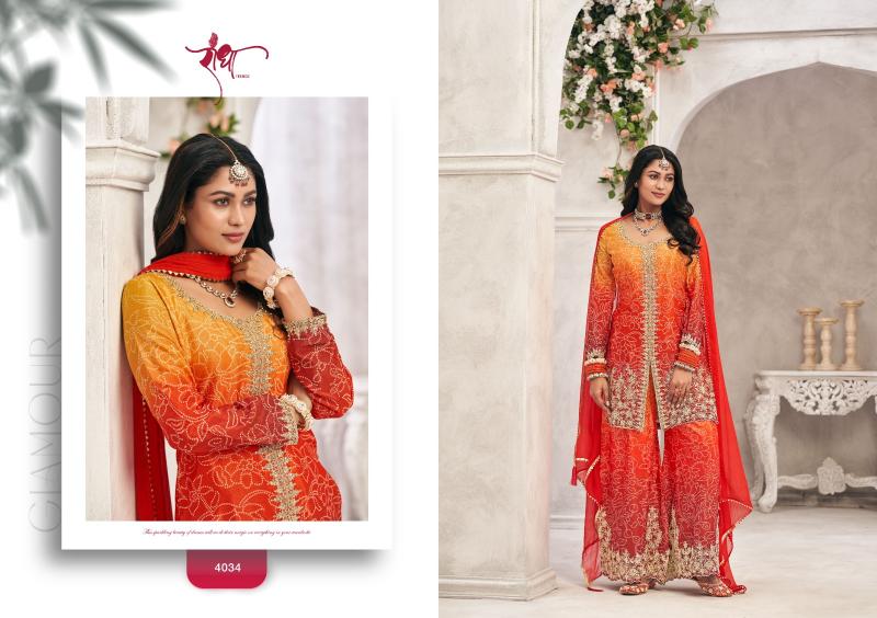 BRAND: RADHA TRENDZ CATLOG TOP: HEAVY PREMIUM CHINON WITH HEAVY EMBROIDARY WORK & HAND WORK. (FREE SIZE STITCHED) BOTTOM : HEAVY PREMIUM CHINON WITH DIGITAL PRINT & EMBROIDARY WORK (FREE SIZE STITCHED) DUPATTA: PURE CHIFFON WITH FOUR SIDE JECQUARD LACE & FANCY LATKAN RATE: 1895/- NOTE : FREE SIZE STITCHED SUIT |