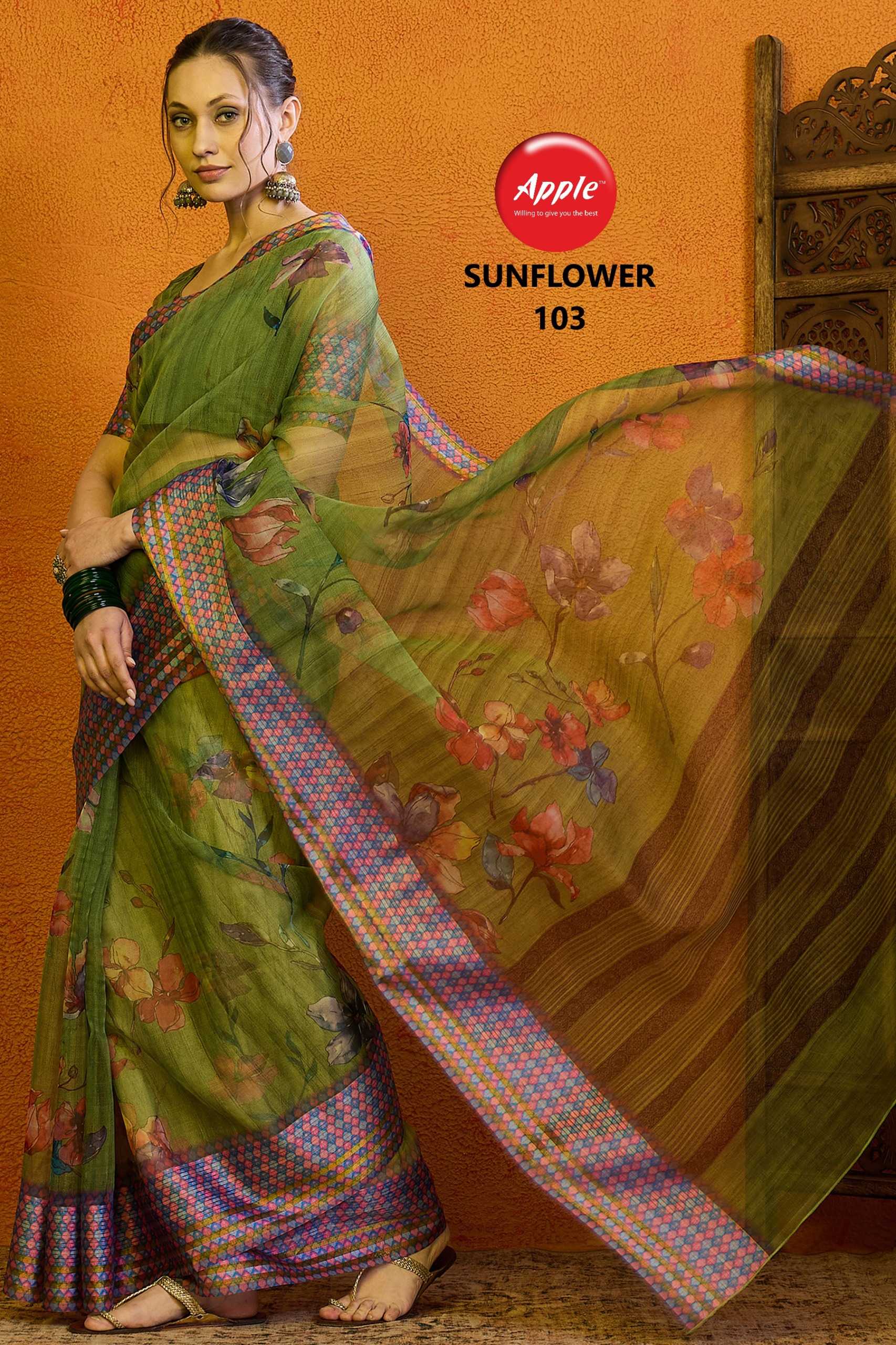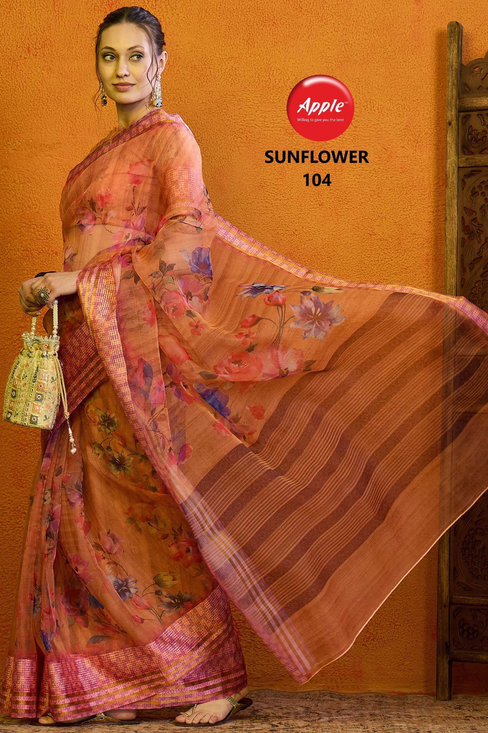 sunflower vol 1 by apple 101-104 organza gold line fancy saree wholesaler