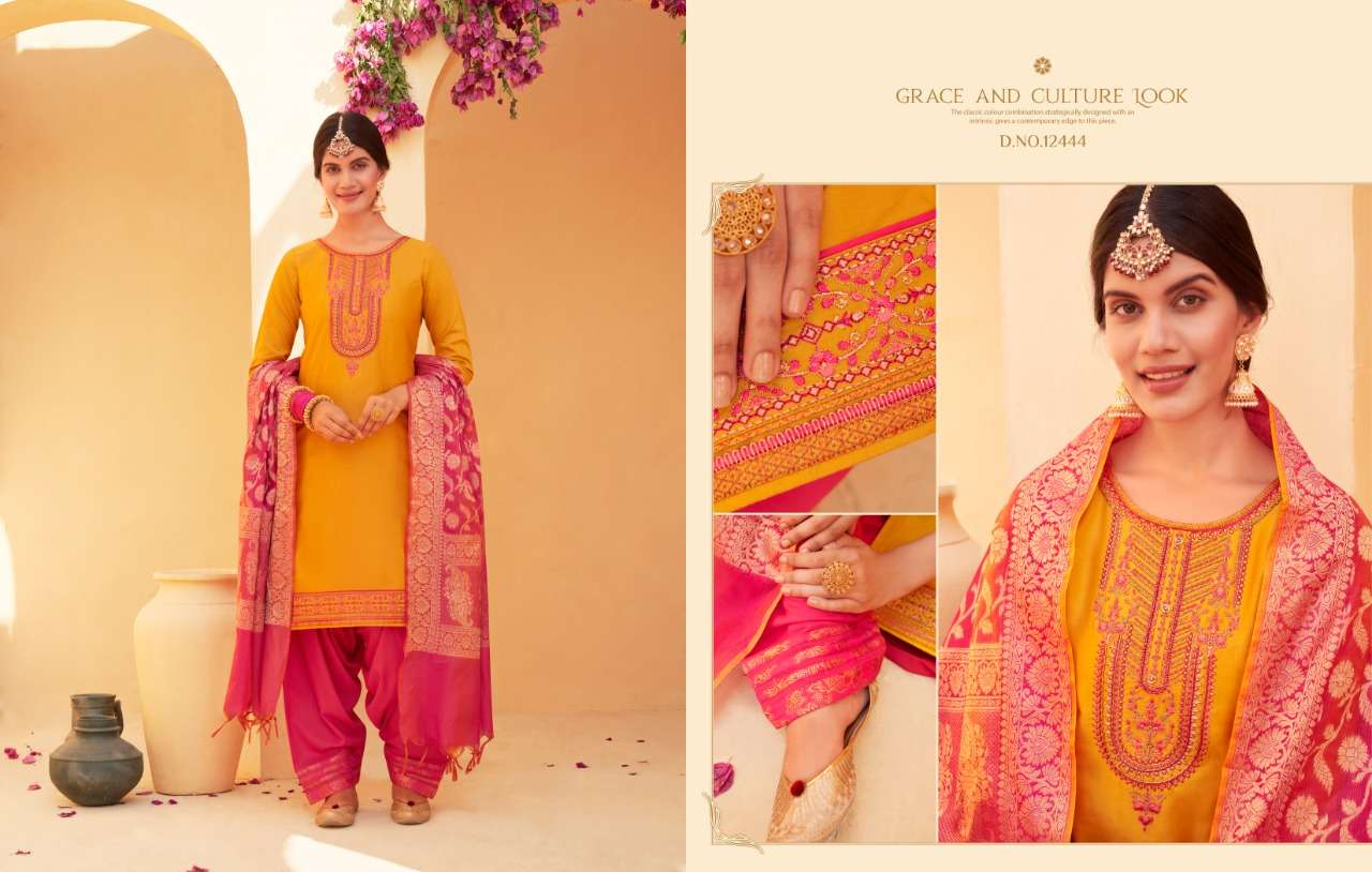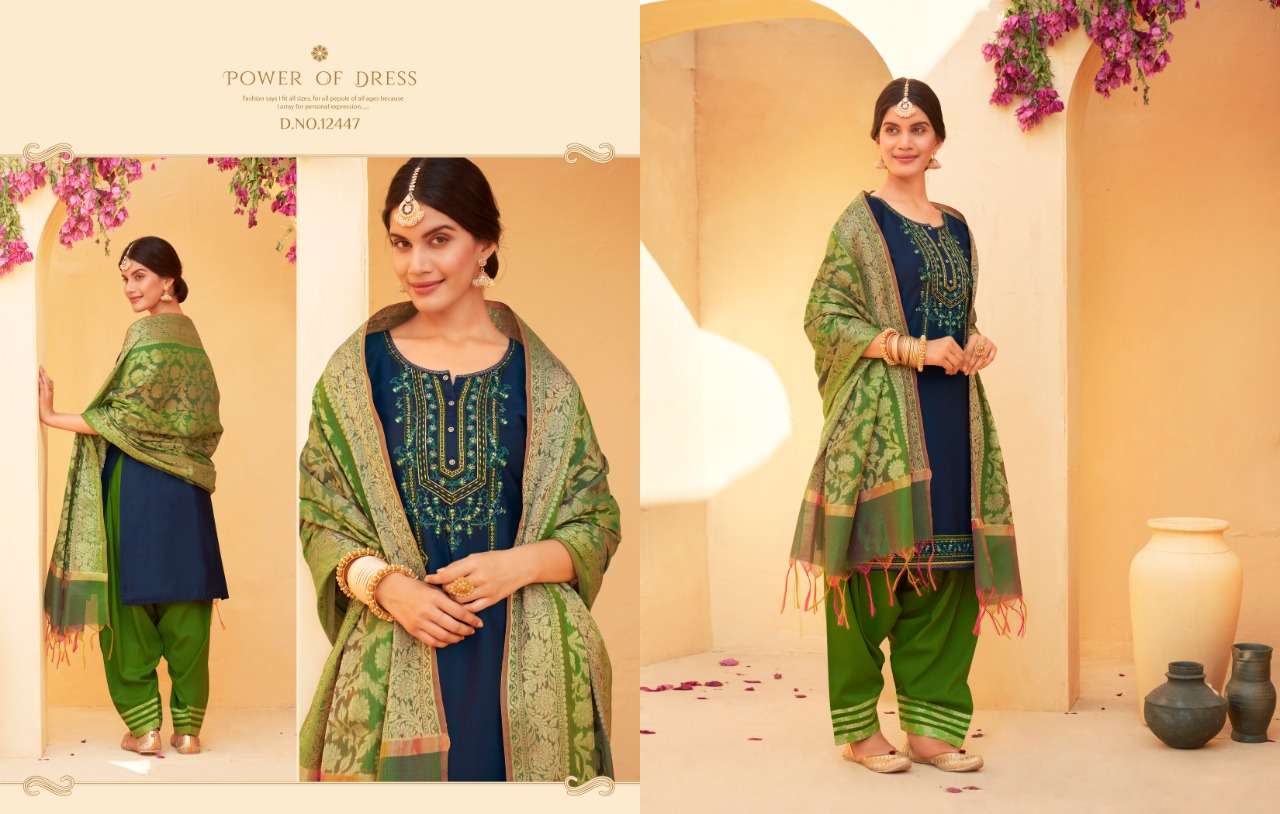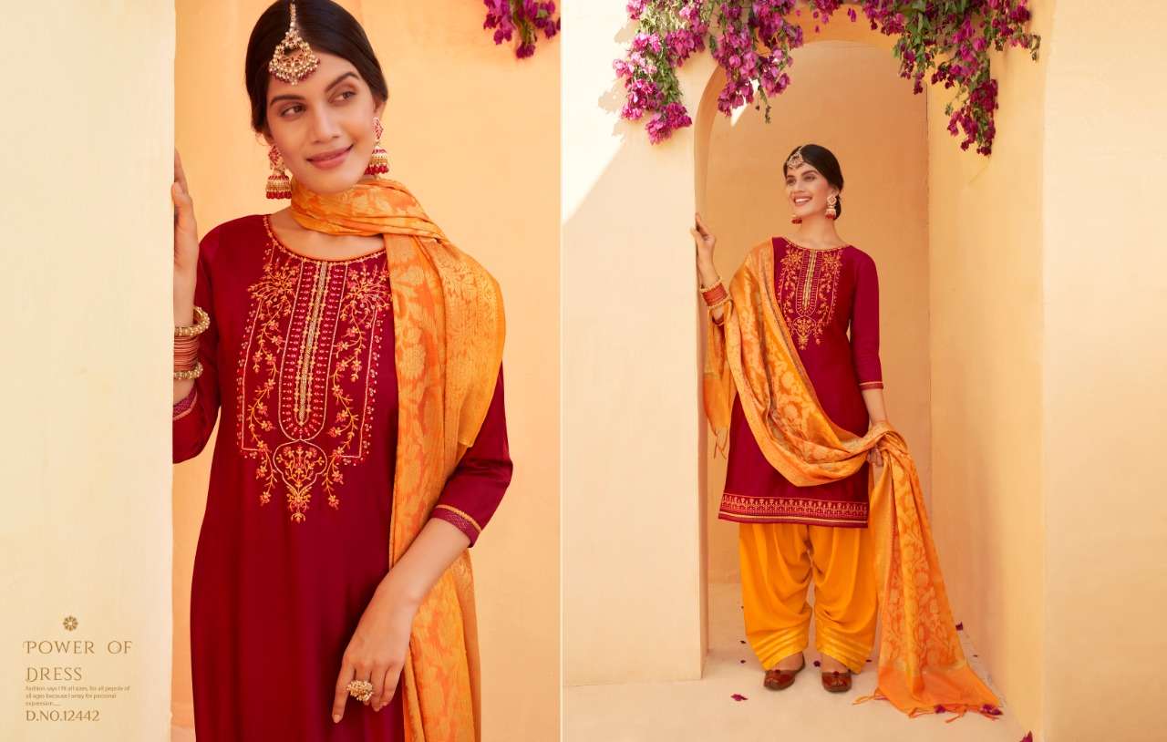 📌 KALAROOP by Kajree has launched Catalog Name : Sunheri by Patiala Vol - 4 🔸 Fabric Details 🔸 ▪Top:- Jam Silk with Embroidery Work & Khatli Work ▪Total Design:- 08 ▪Size:- L-40, XL-42, XXL-44, Rate-1099/- |