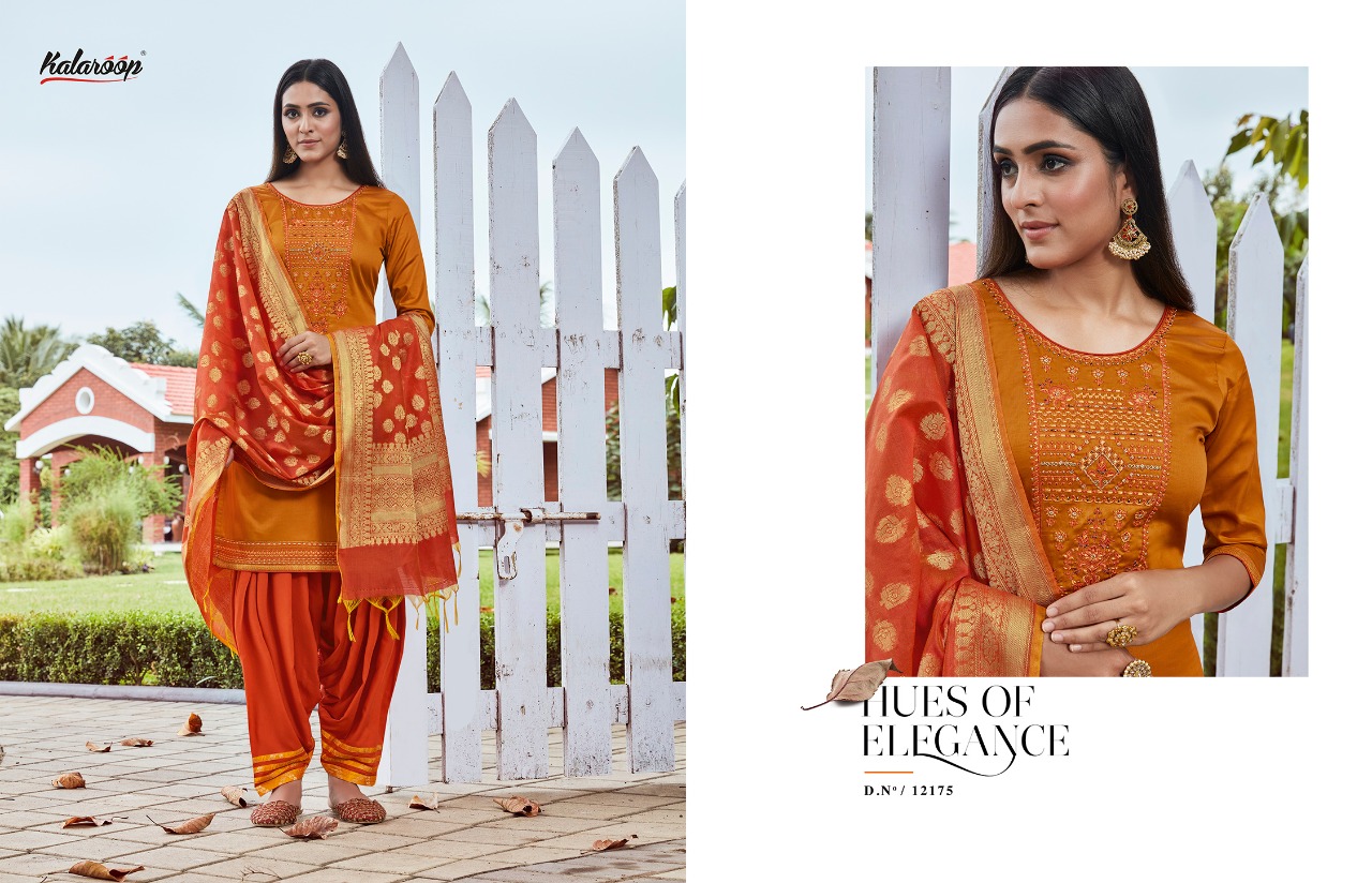 Sunheri Patiyala Vol 2 By Kalaroop Jam Silk Embroidery Readymade Patiyala Suits