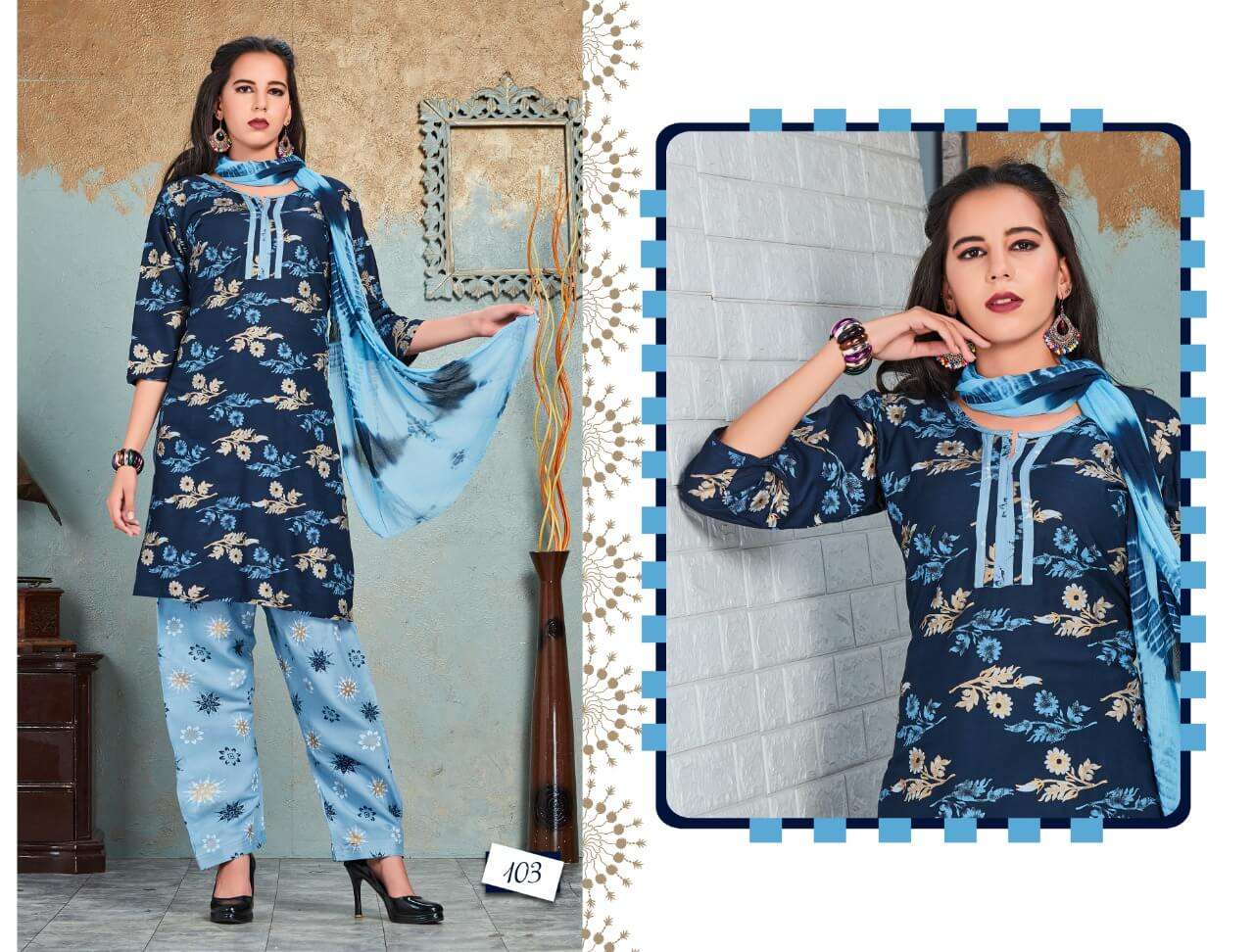 IN STOCK Model:tt-Sunheri-vol-2 Weight:3.00kg MOQ:6 Pcs Fabric: 17 kg Rayon Work: Embroidery Type: SALWAR SUIT Size L XL 2XL |