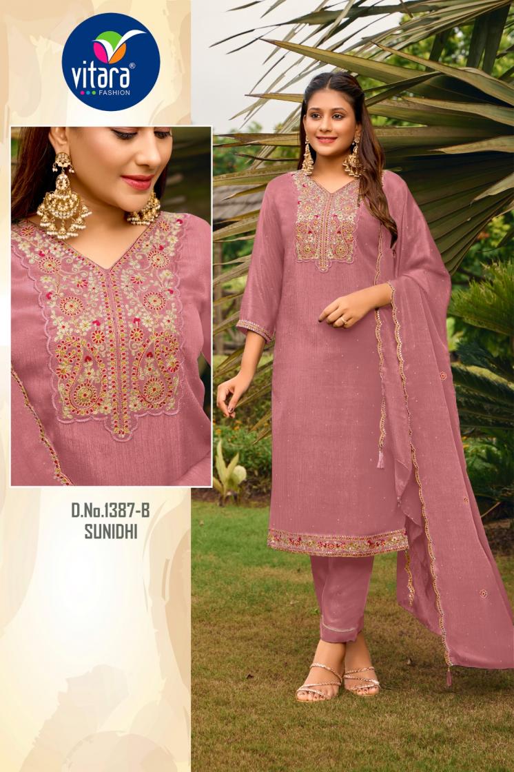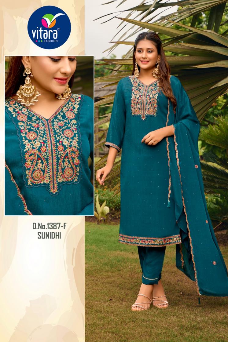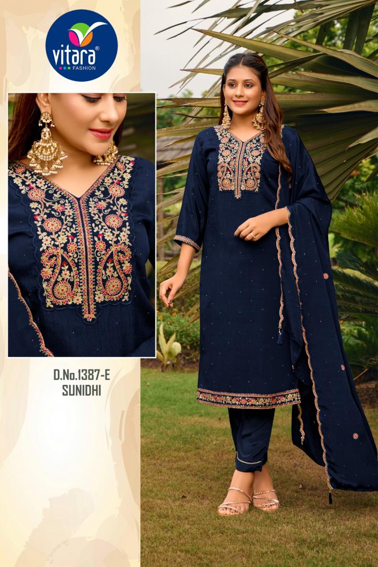 Vitara fashion launched pic & choose 3pcs Combo set Name - SUNIDHI fabric🎀 *TOP- poly chinon fabric with embroidery 🏵️*Bottam-*- *poly chinon fabric 🌻dupatta- poly chinon with embroidery 💥size - m to 2xl 🌟design- 8 RATE- 955/- |