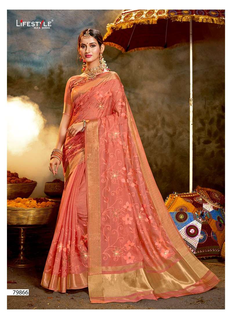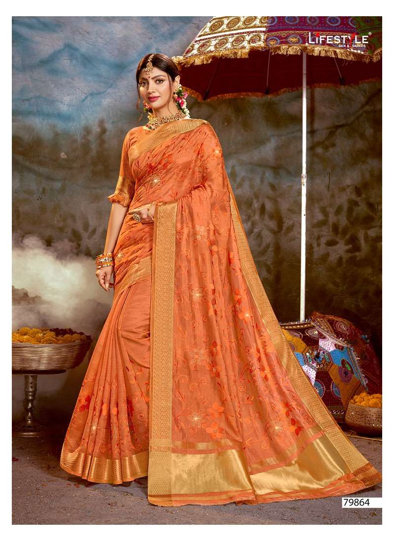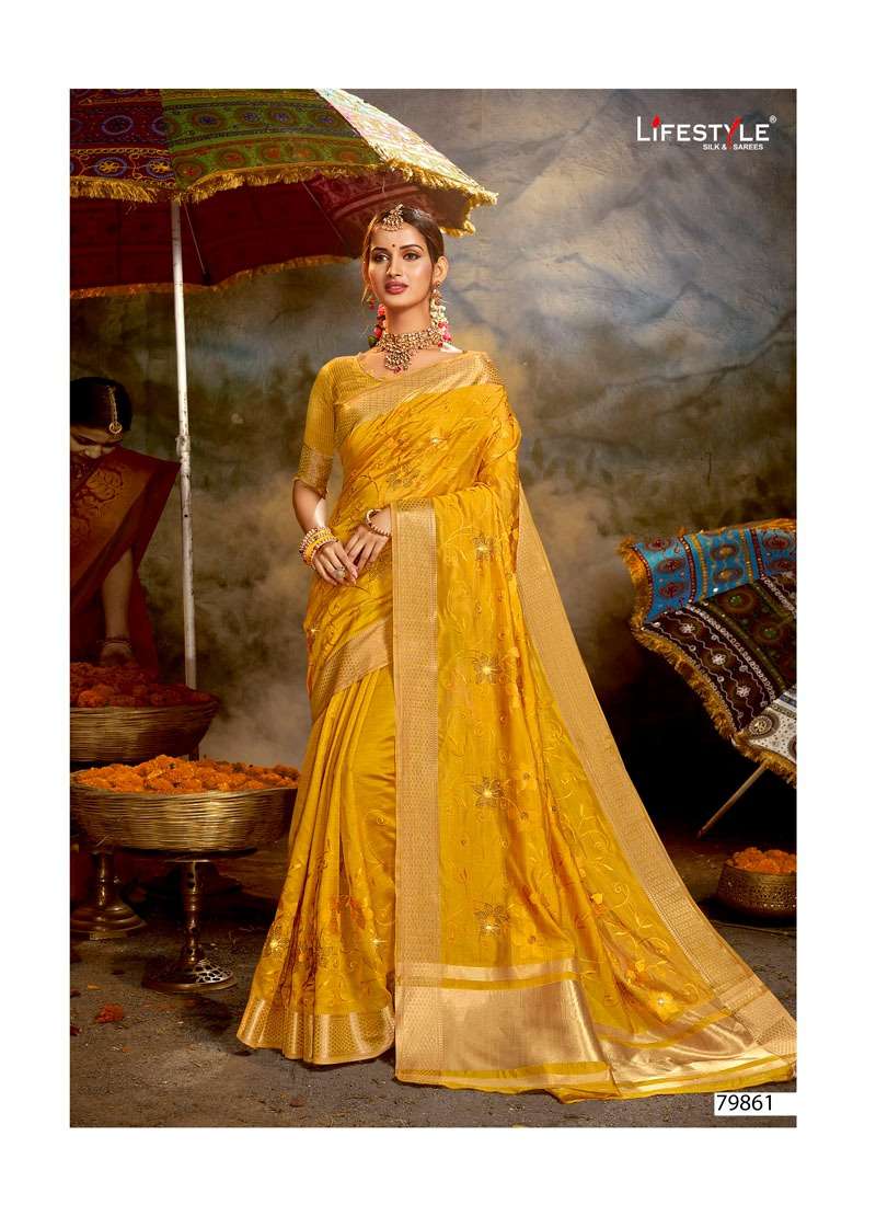 Brand = LIFESTYLE Catalog = SUNNY DAYS FANCY ORGENJA TISSUE TO DYED GALA SAREE |