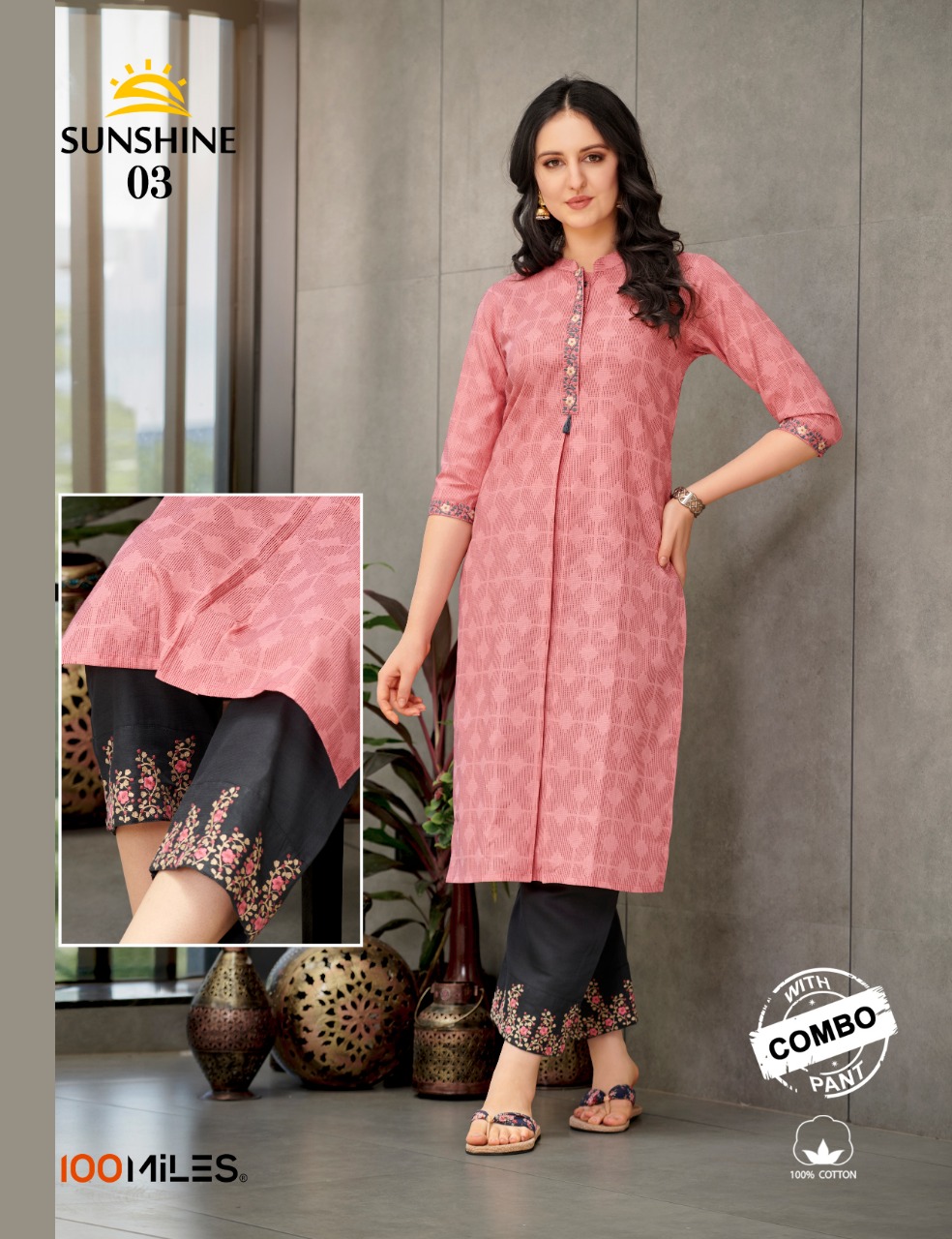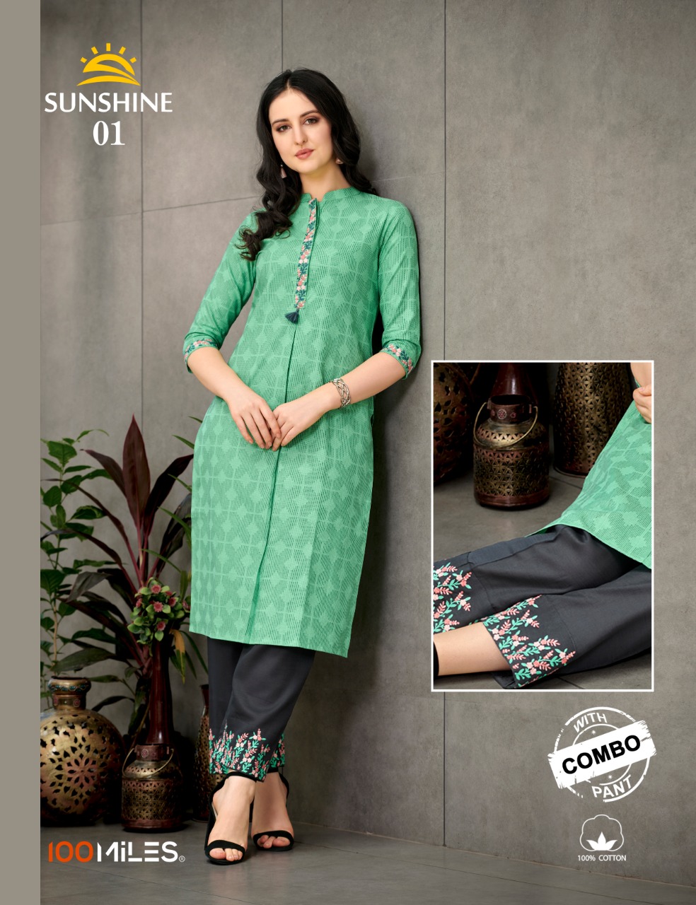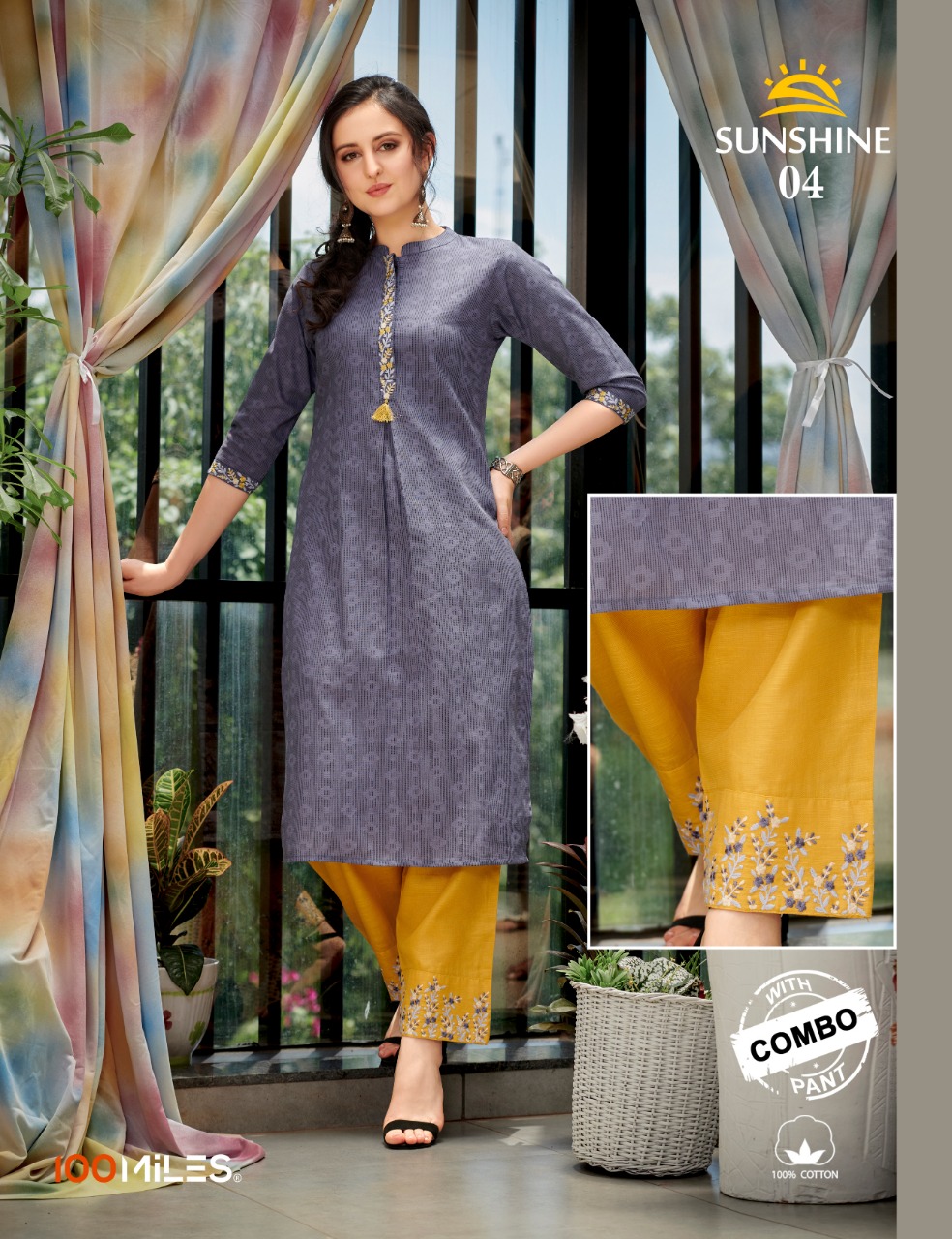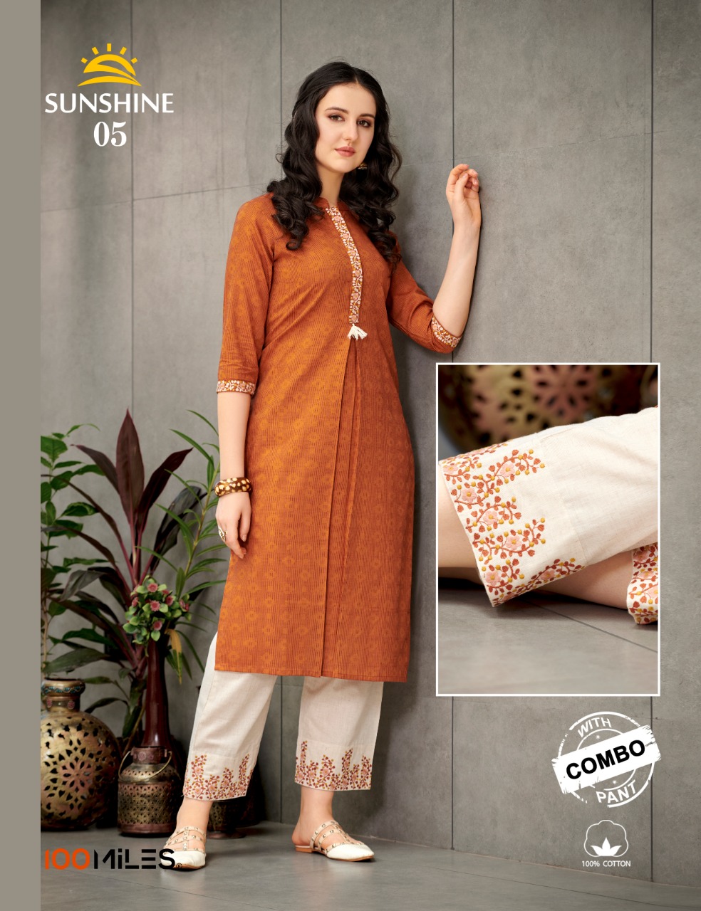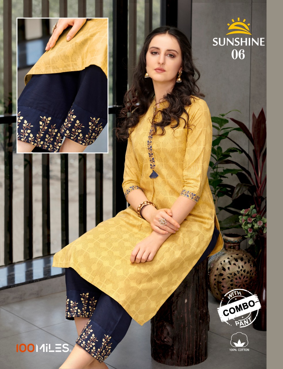 Sunshine By 100 Miles Cotton Pattern With Embroidery Kurti With Contrast Combo Pant