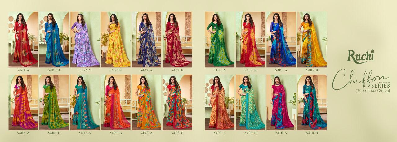 Super Kesar Chiffon Vol 54 By Ruchi Chiffon Printed Saree Wholesaler