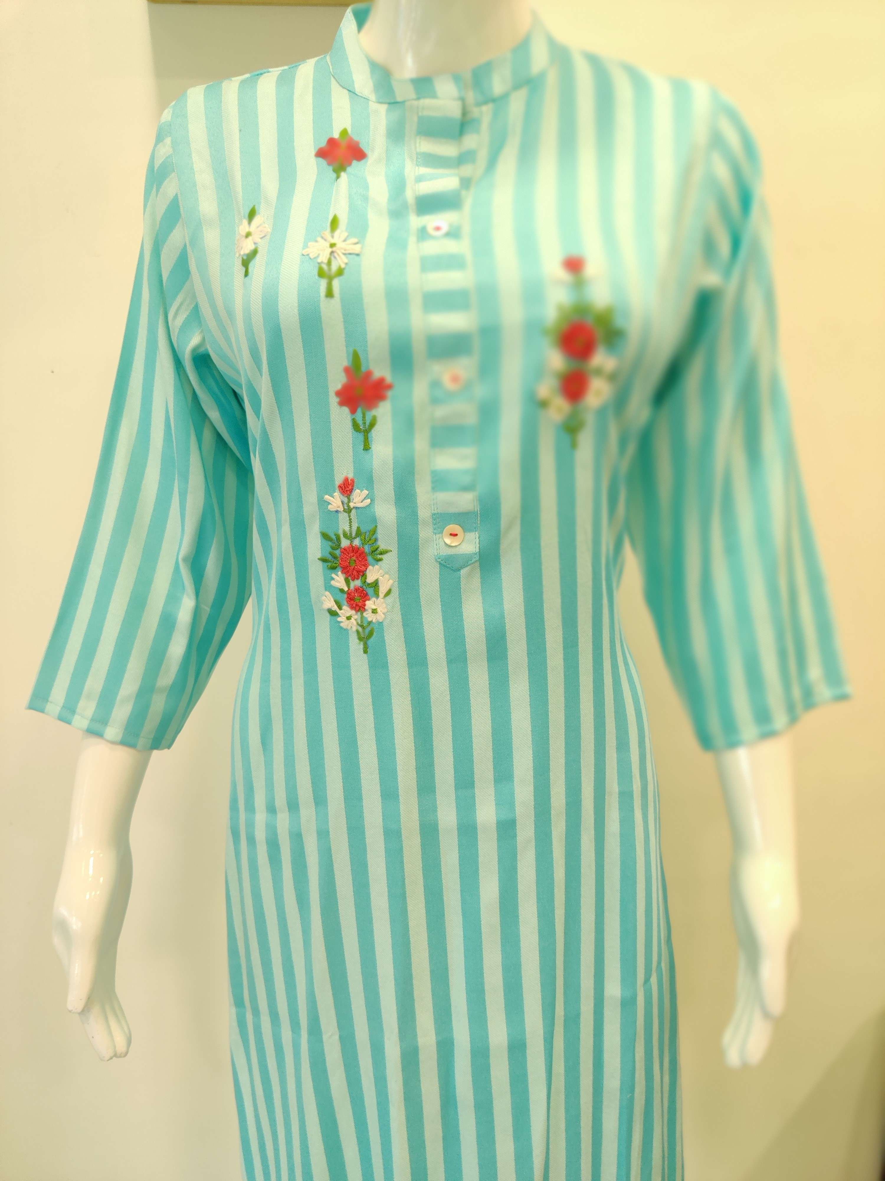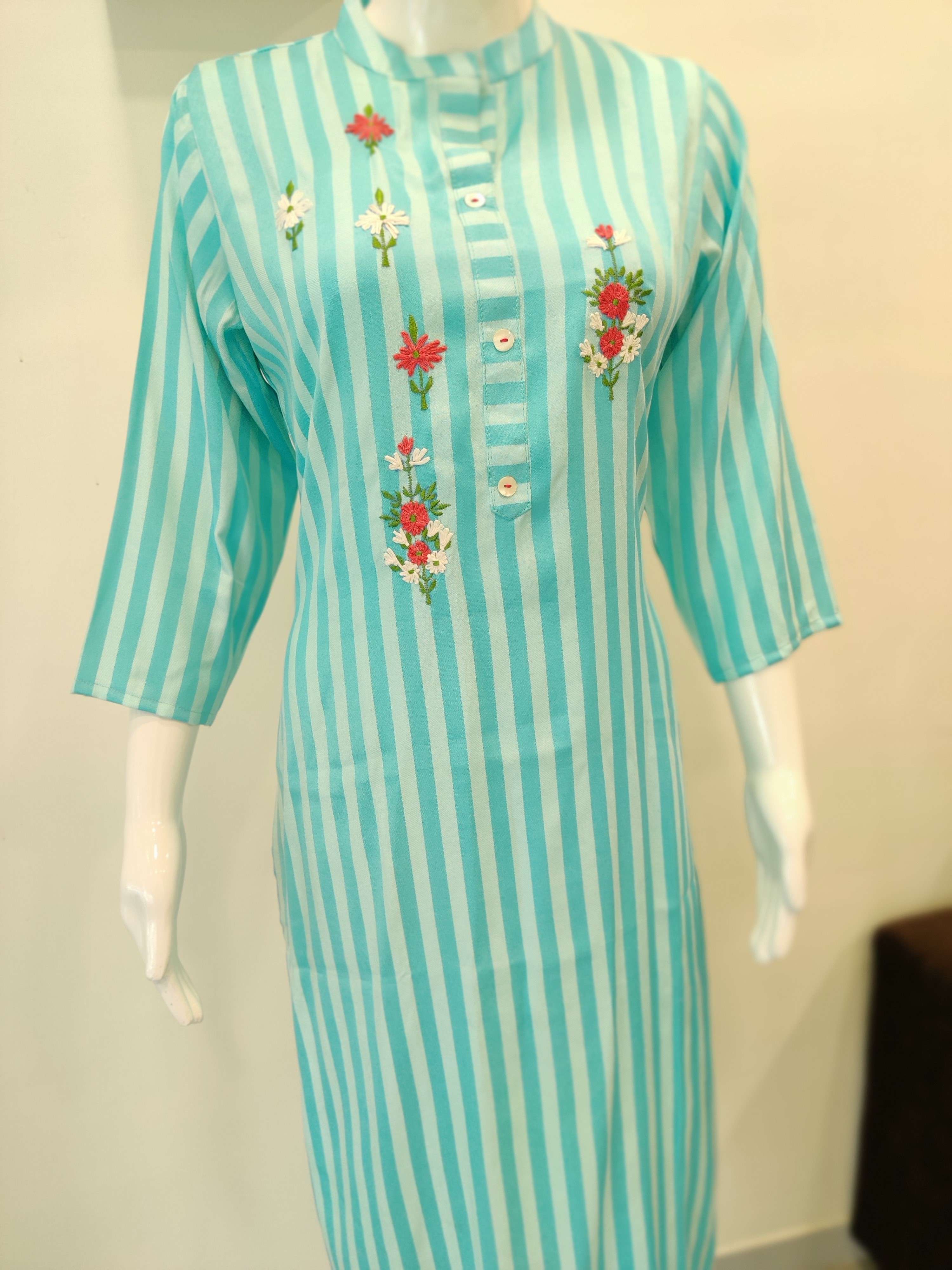 SUPERIOR COTTON STRIPES KURTI WITH EMBROIDERY. SETWISEÂ -Â SIZES - L, XL, XXL RATE - RS 425 + 5 % GST |