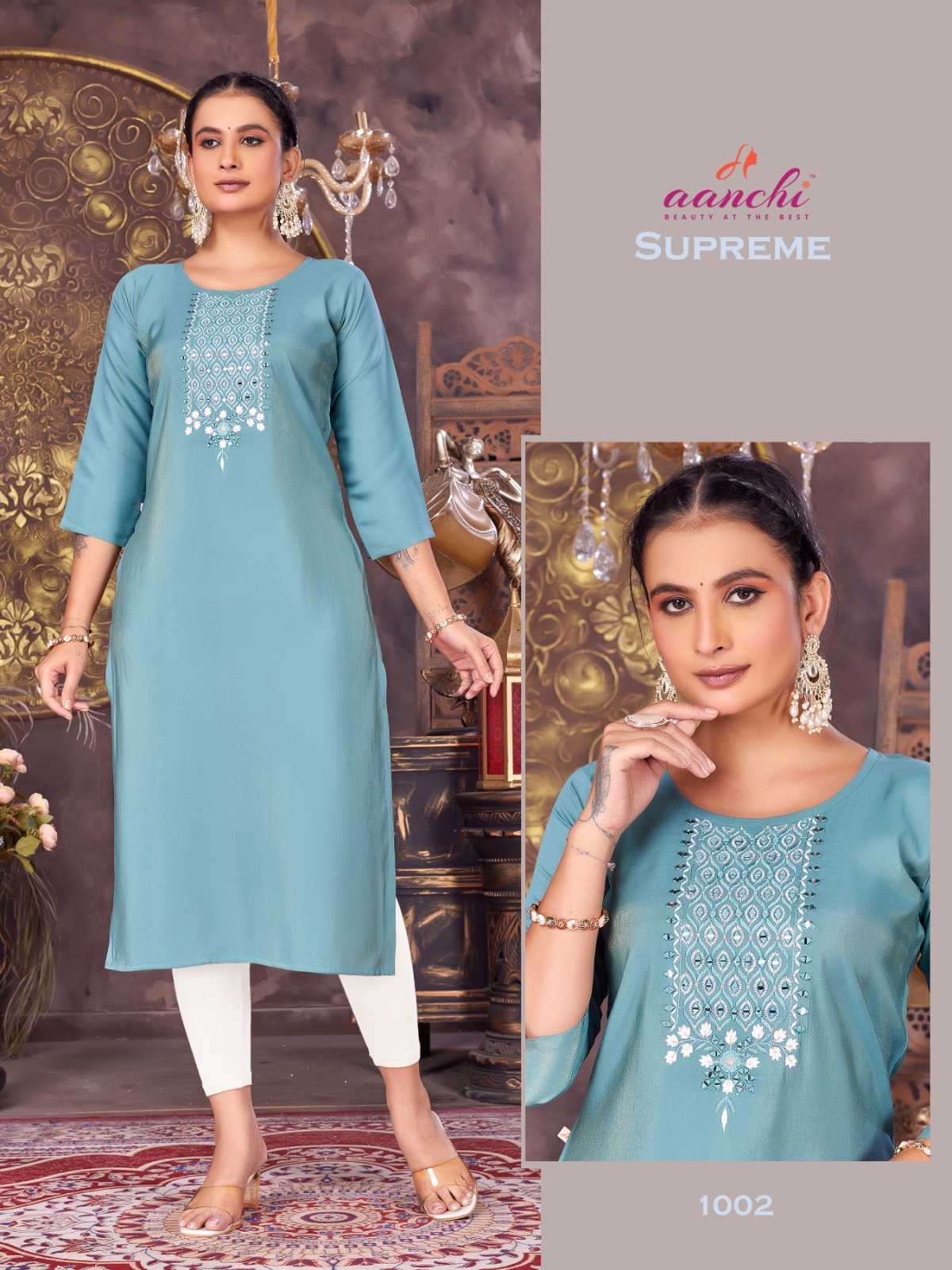 supreme by aanchi roman shimmer classic full stitch long kurti