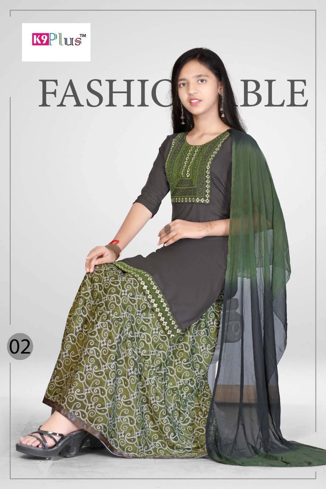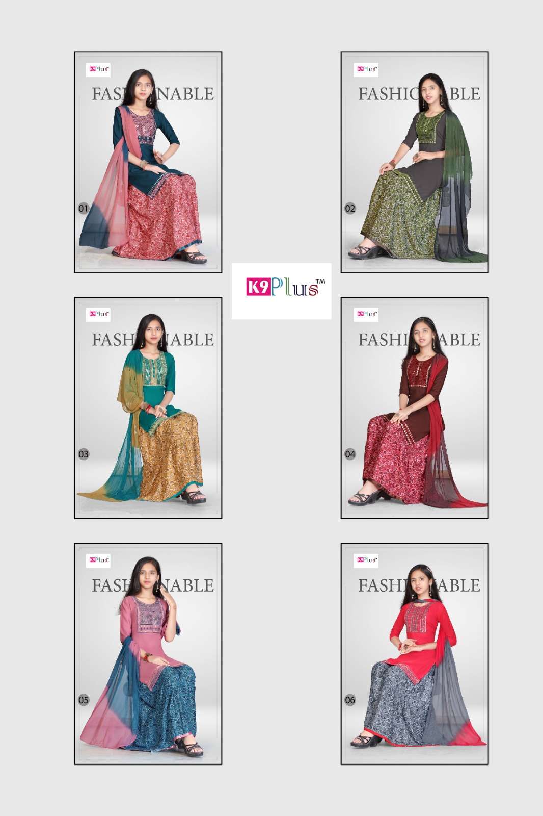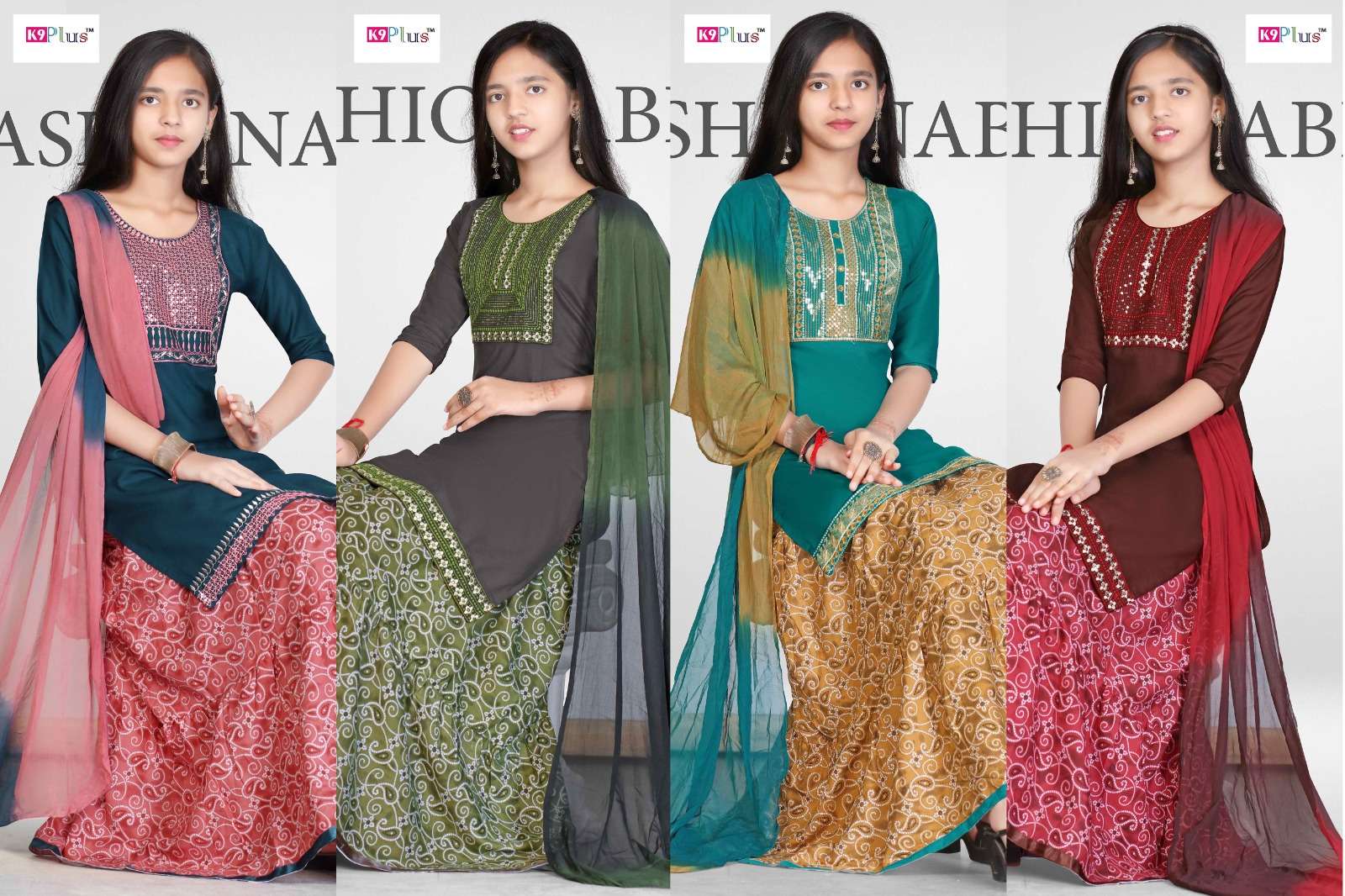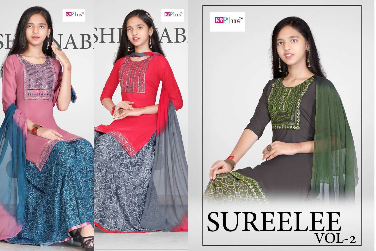 sureelee vol 2 by k9 plus fancy kids readymade rayon kurti bottom and duppata set