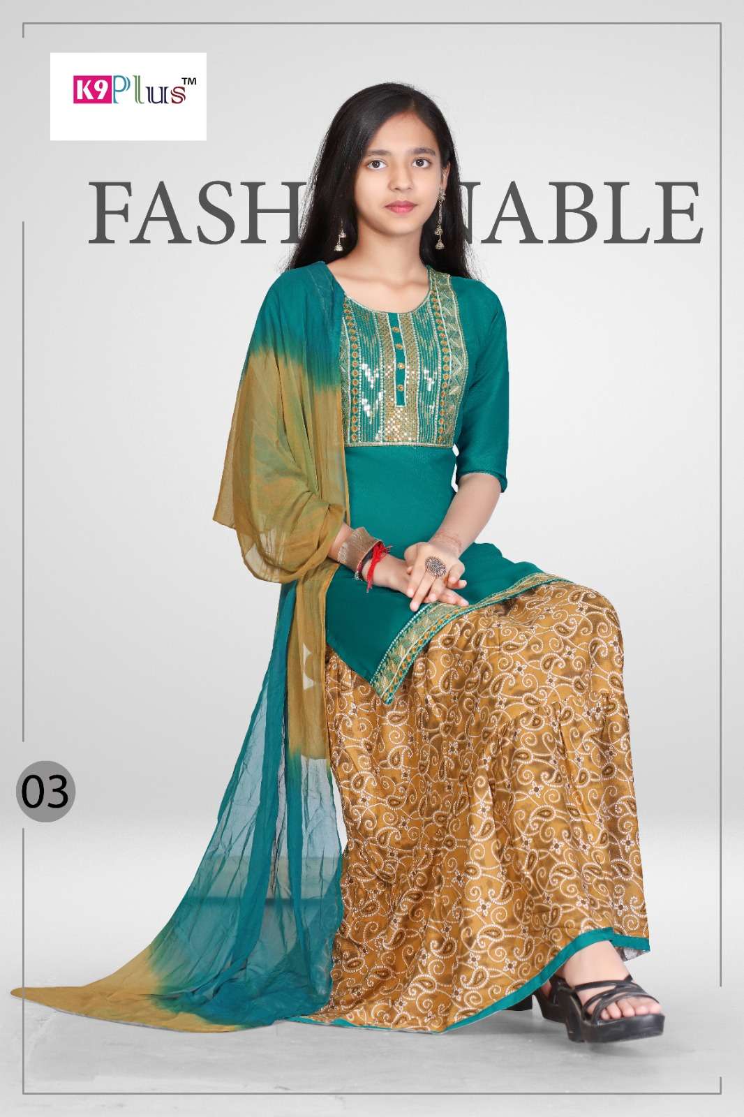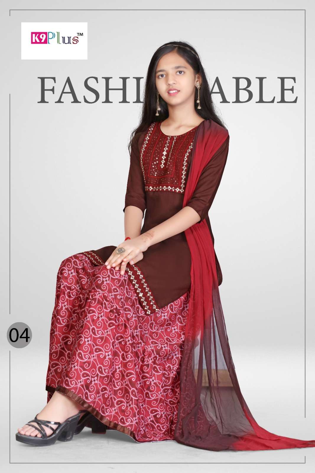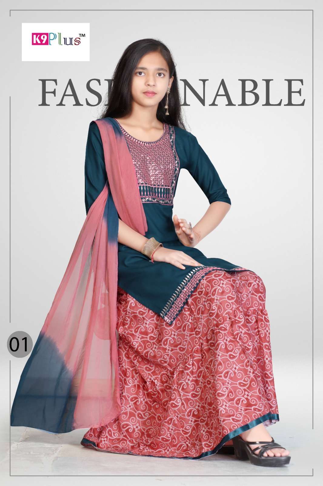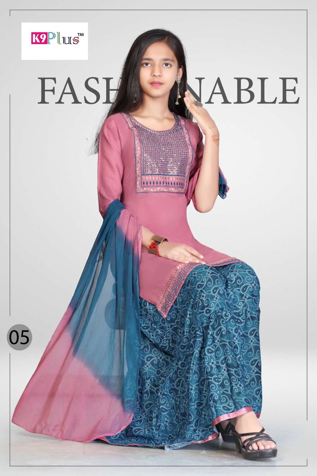 sureelee vol 2 by k9 plus fancy kids readymade rayon kurti bottom and duppata set