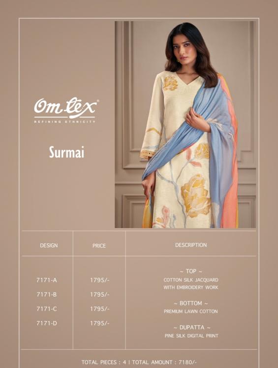 Om Tex Presents Latest Collection Launched on 10-03-2025. Presenting Beautiful collection of 4 PCS with Unstitched .