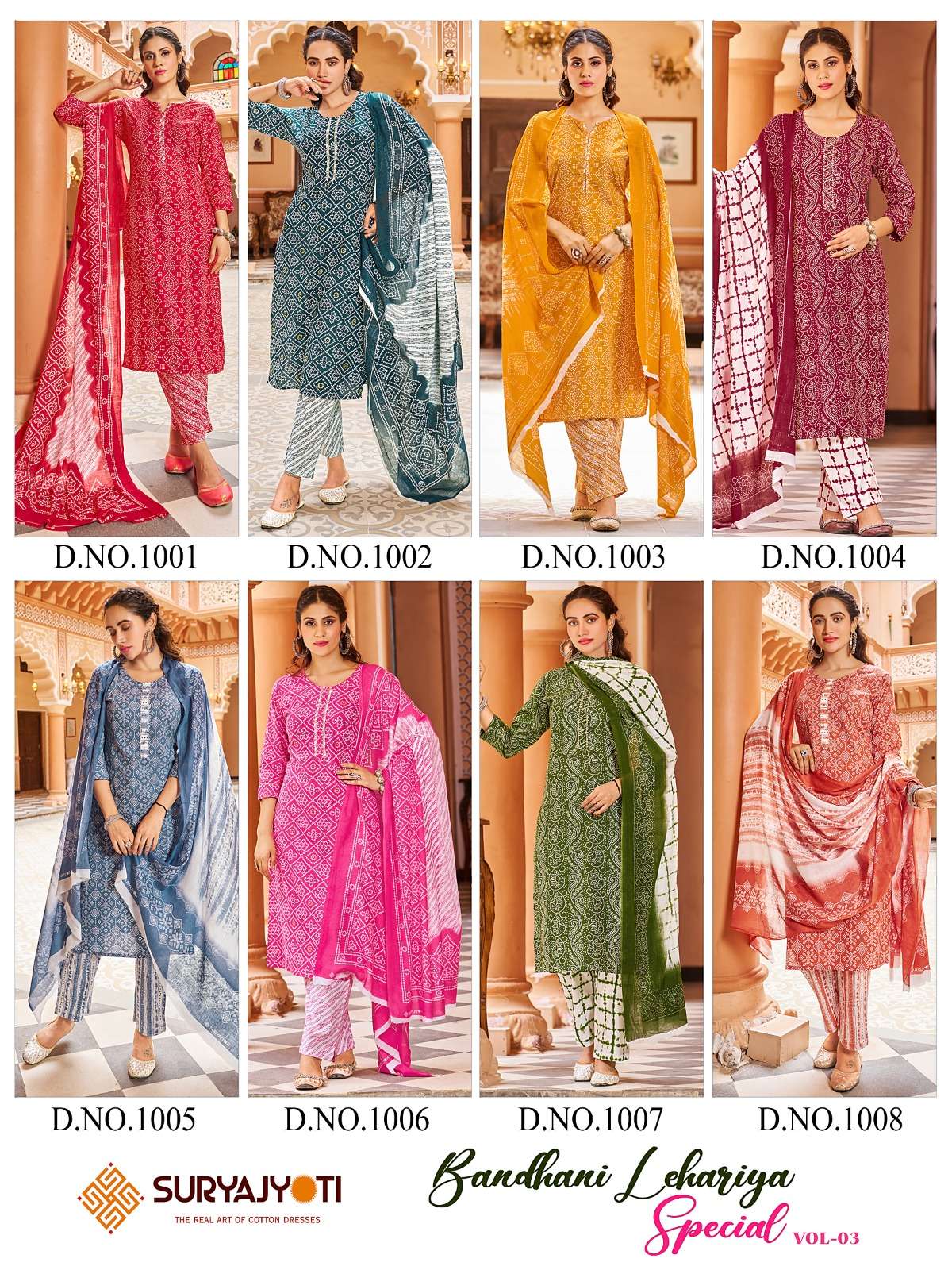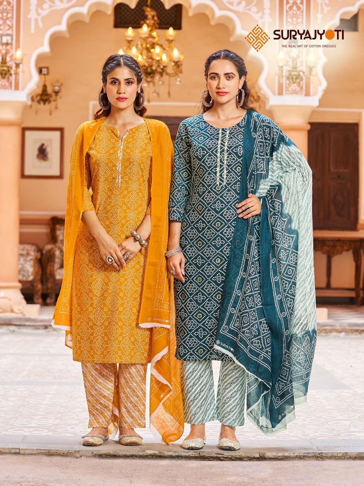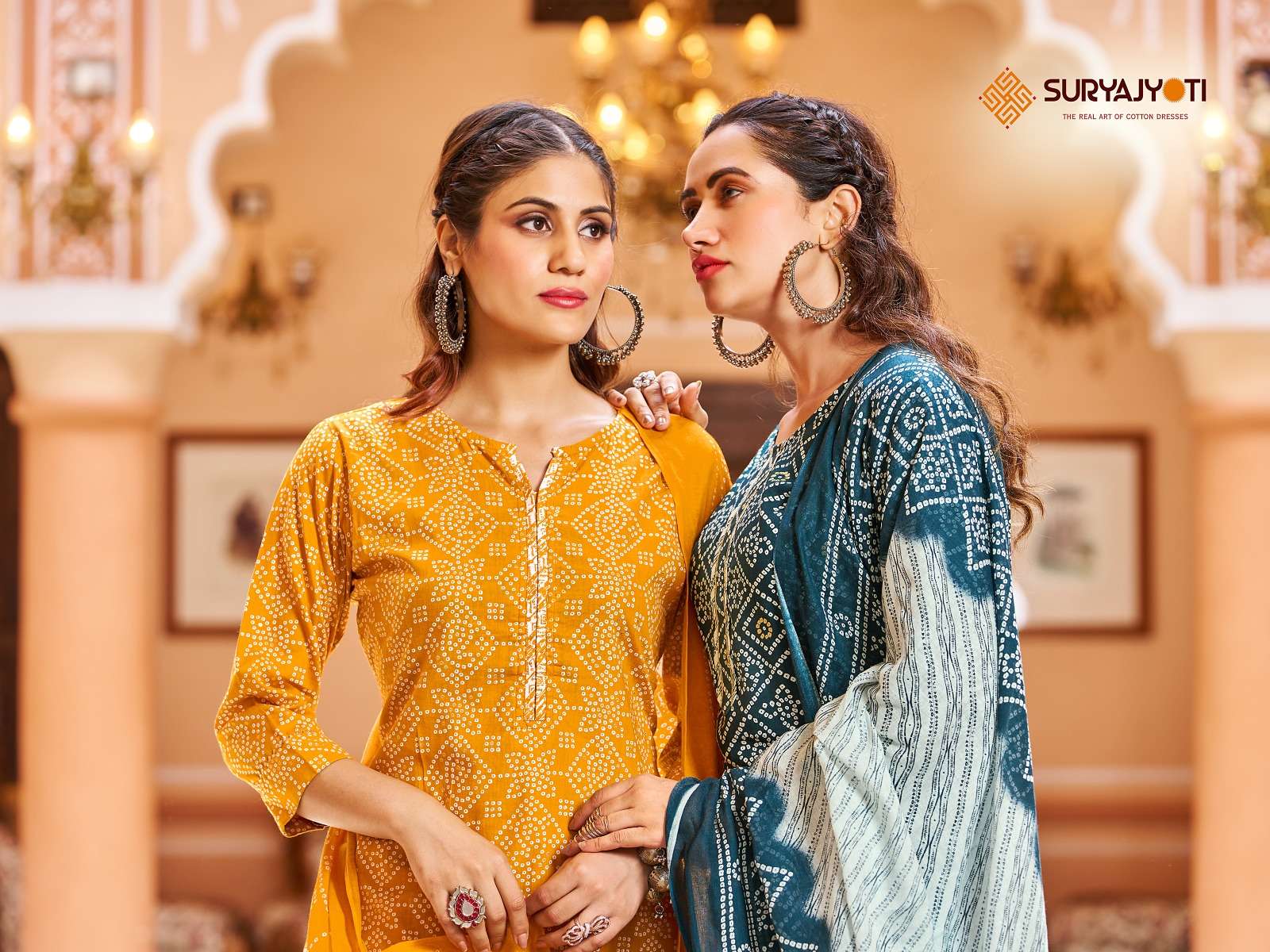 suryajyoti bandhani lehriya speical vol 3 readymade bandhani print salwar kameez collection