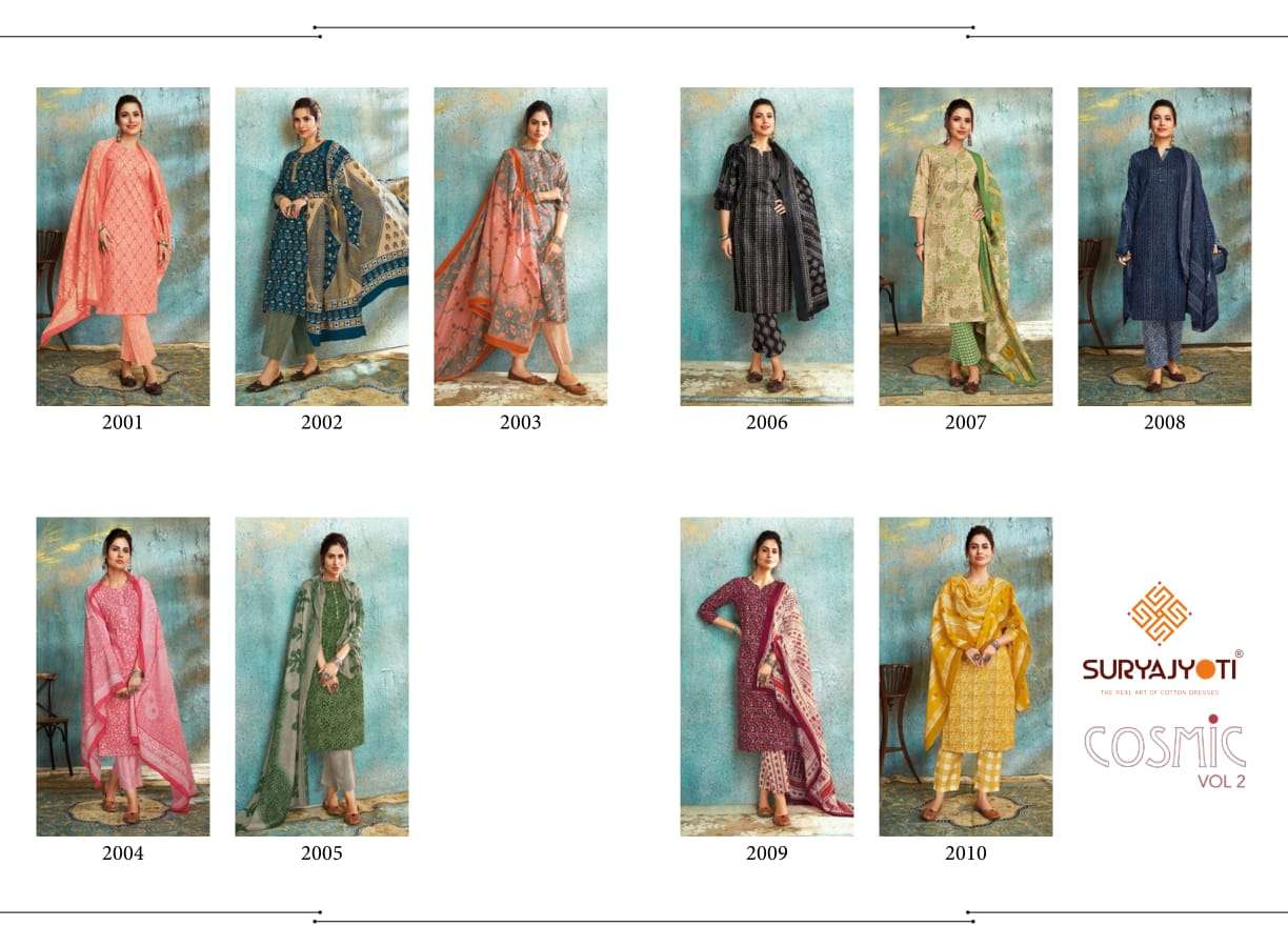 DEAR CUSTOMER WELCOME TO SURYAJYOTI LAUNCHING OF SURYAJYOTI'S NEW CATALOG 📕CATALOGUE:- COSMIC VOL-2 FABRIC💃🏻 🧣DUPATTA:- PURE COTTON 👖BOTTOM:- CAMBRIC COTTON CUT:- 2.50-2.0-2.25 RATE:- 470/-