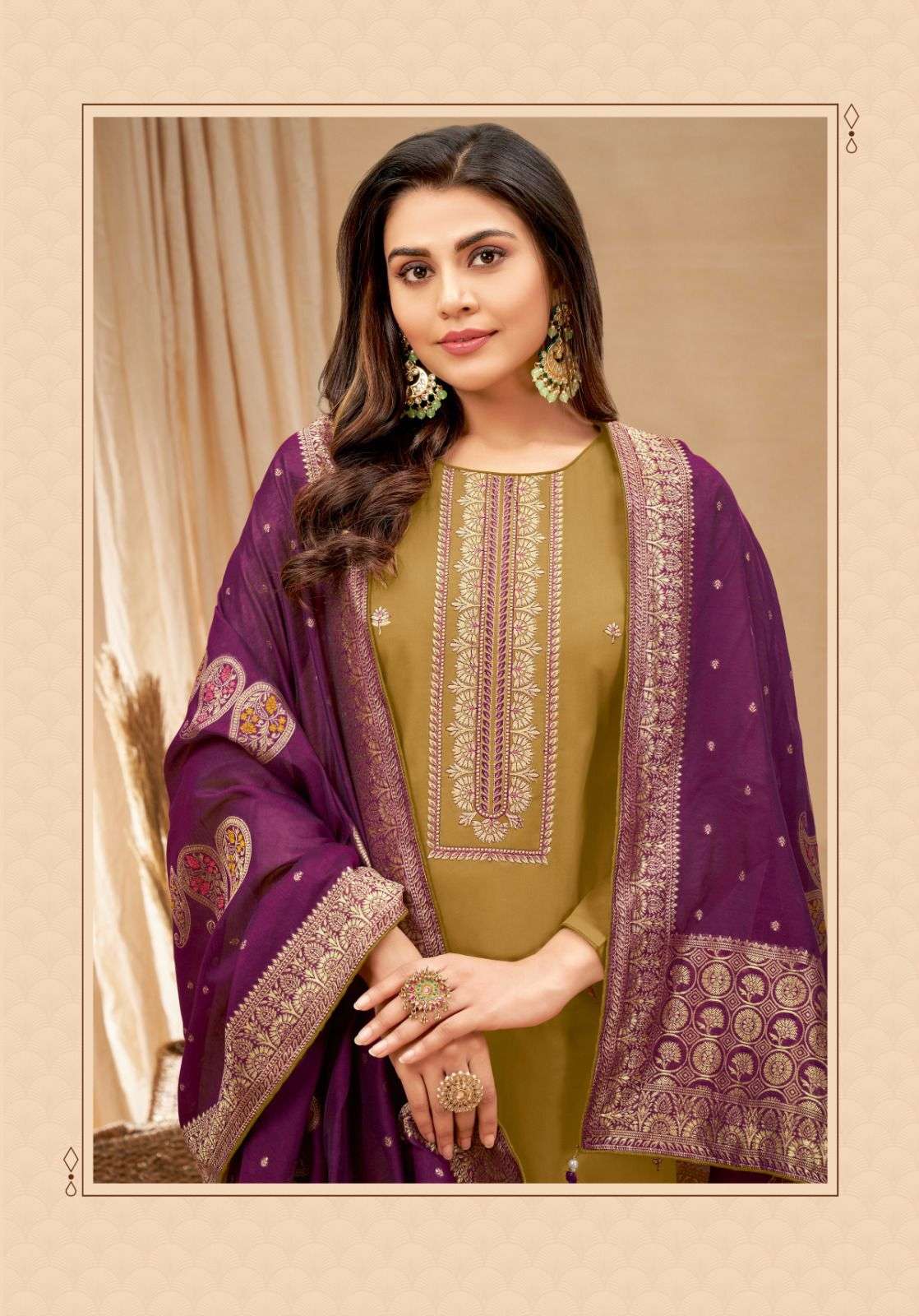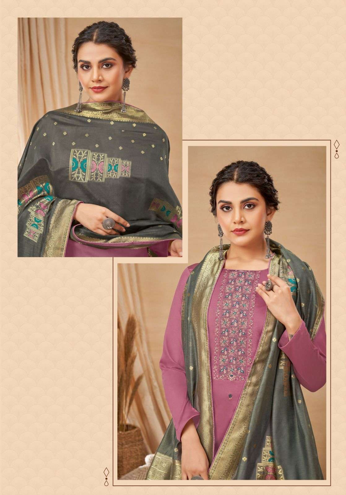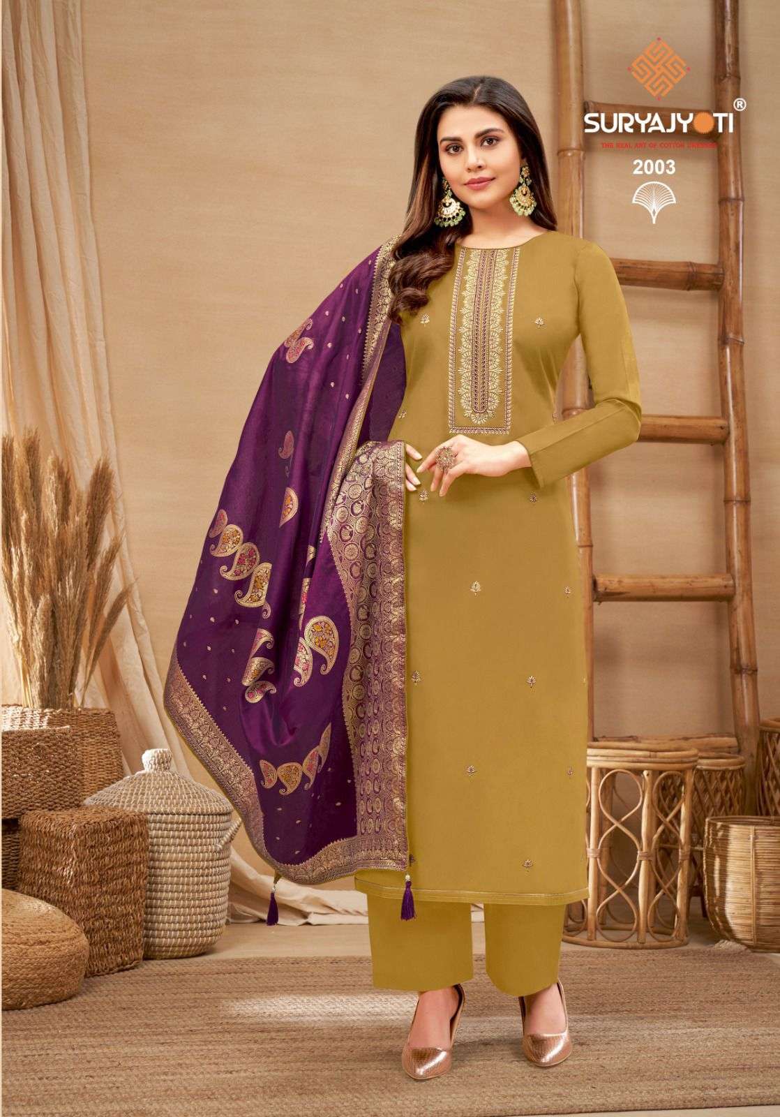 DEAR CUSTOMER, WELCOME TO SURYAJYOTI LAUNCHING OF SURYAJYOTI'S NEW FANCY CATALOG 📕CATALOGUE:- GUZARISH VOL-2 👗CLOTH:- JAAM SATIN WITH NECK EMBRODIERY & SWAROVSKI DIAMOND WORK 🧣DUPATTA:- FANCY JACQUARD DUPATTA WITH FOUR SIDE PIPING LACE & TESSELS 👖BOTTOM:- COTTON SOLID CUT:- 2.50-2.50-2.25 RATE:- 855/- ONLY PACKING:- EXCLUSIVE POUCH PACK WITH BAG🧳 |