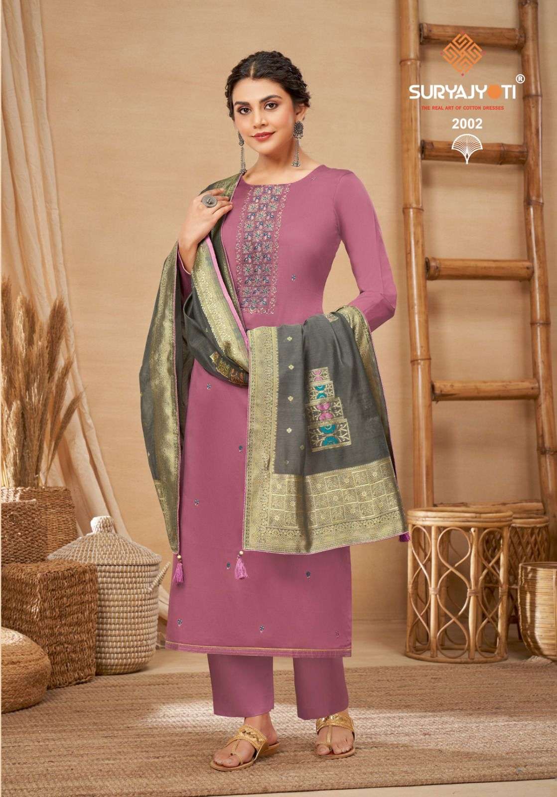 suryajyoti guzarish vol 2 jaam satin embroidery work salwar kameez material