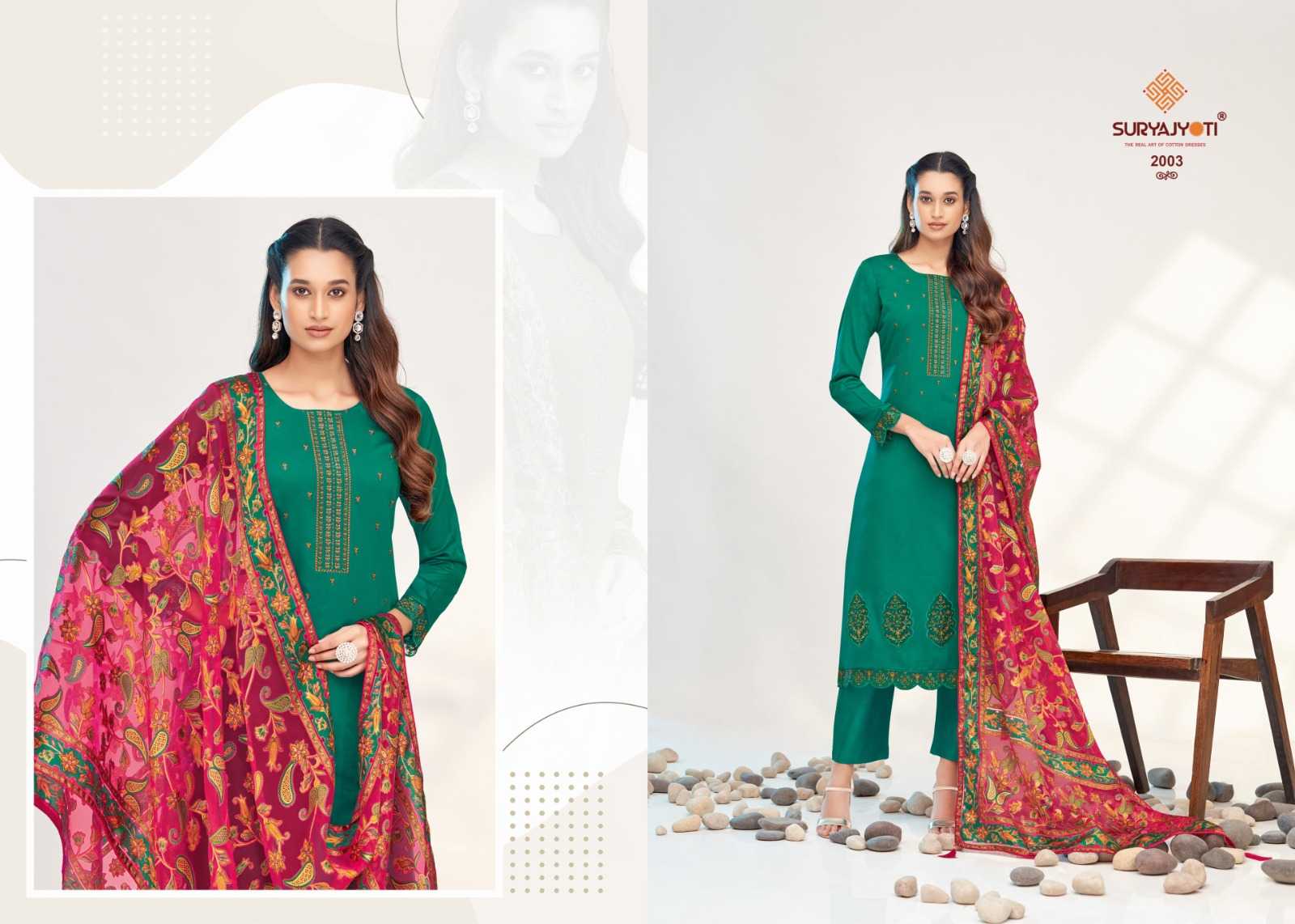 Suryajyoti Cotton Presents Latest Collection Launched on 23-10-2024. Presenting Beautiful collection of 6 PCS with Unstitched .