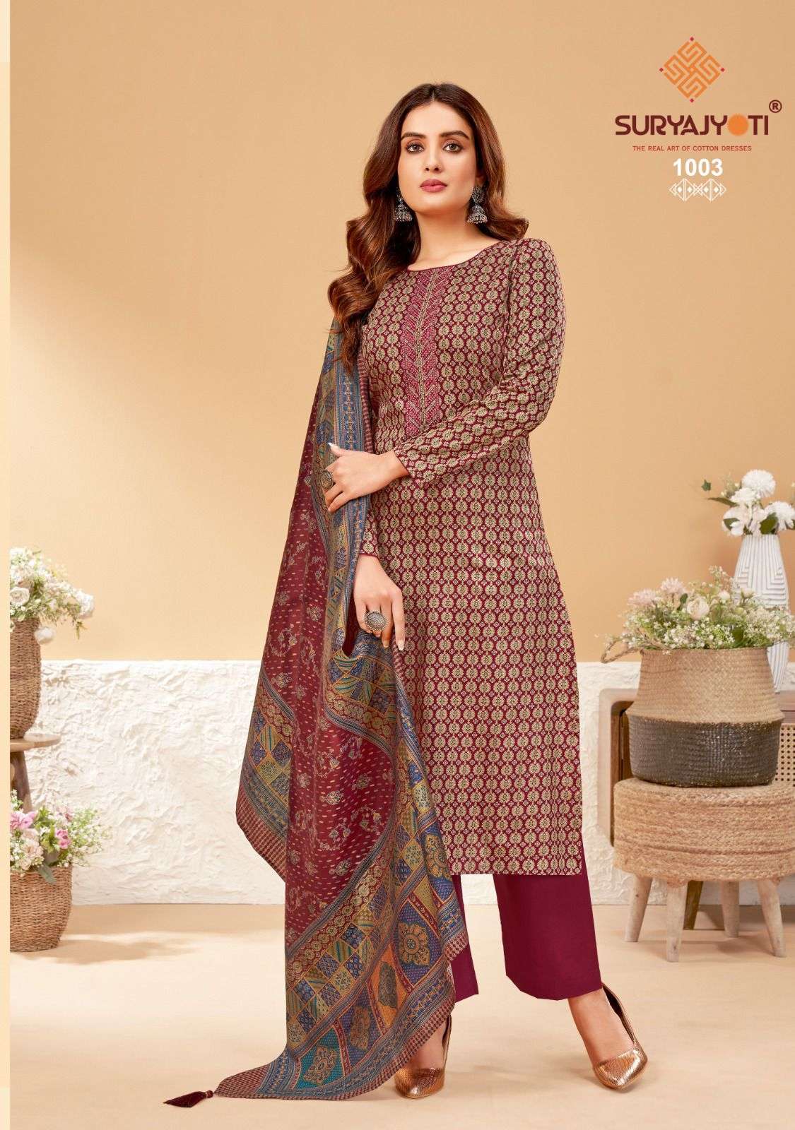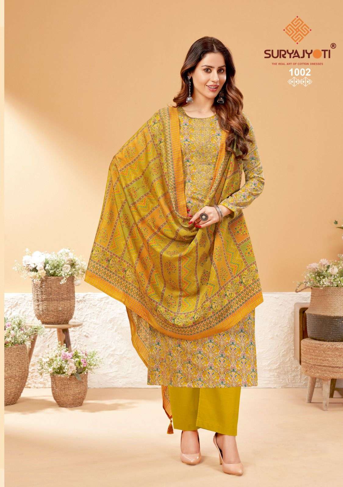 Suryajyoti Cotton Presents Latest Collection Launched on 26-04-2023. Presenting Beautiful collection of 8 PCS with Unstitched .