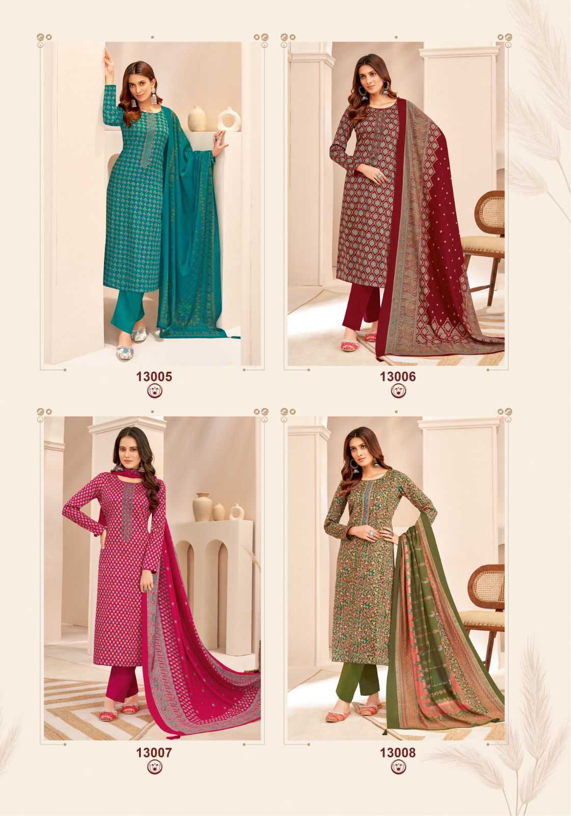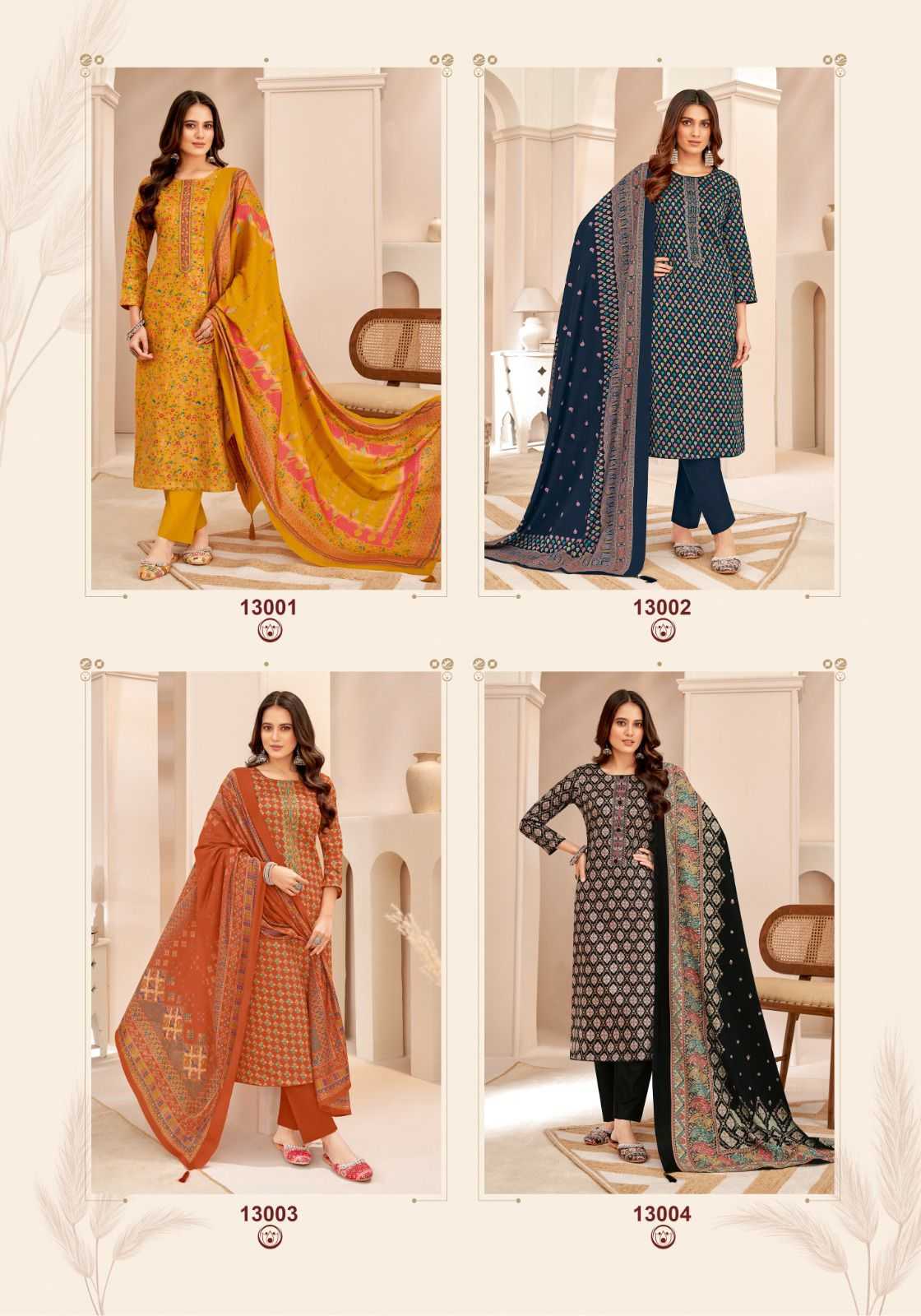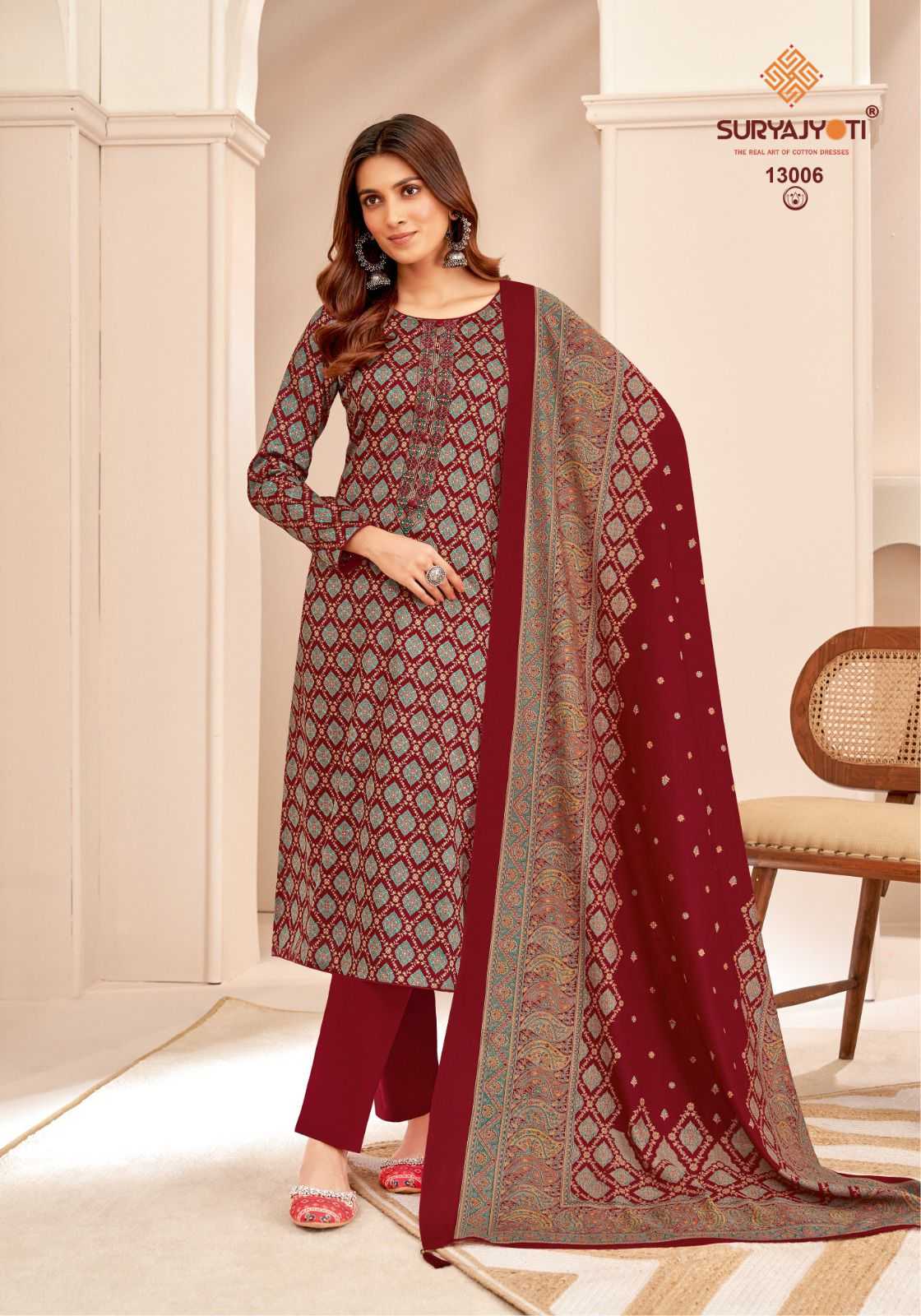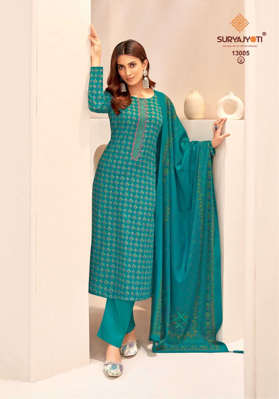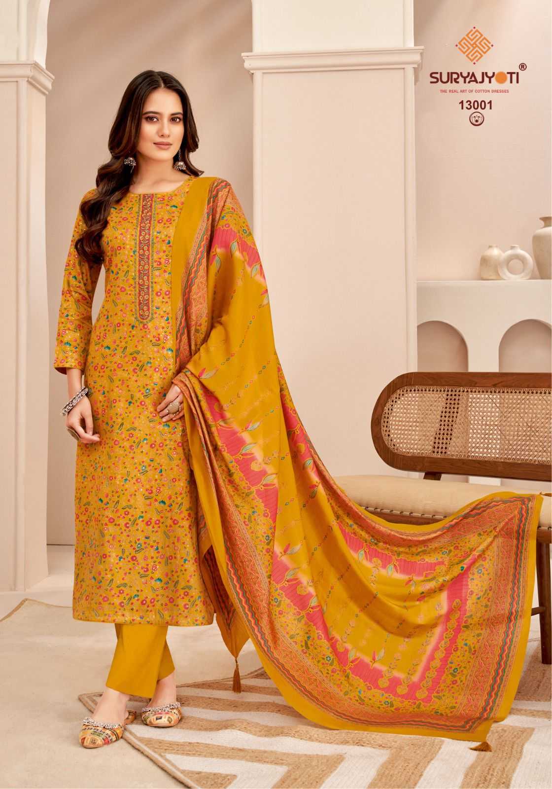 suryajyoti kalki vol 13 jam satin neck work fancy print salwar kameez