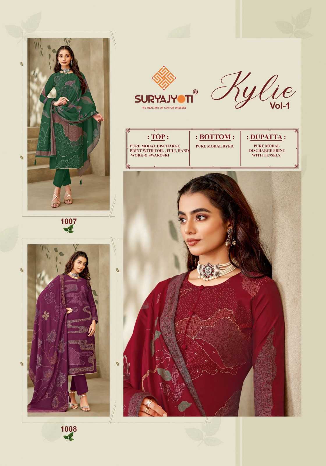 suryajyoti kylie vol 1 unique print modal swarovski suits collection