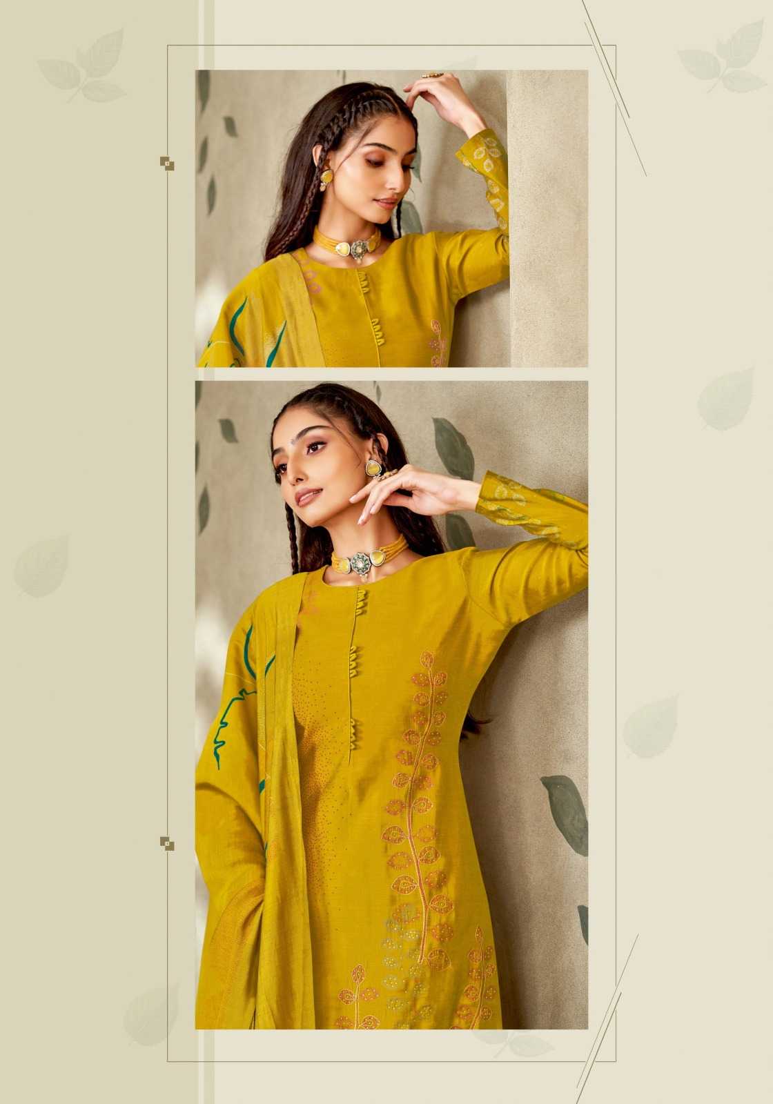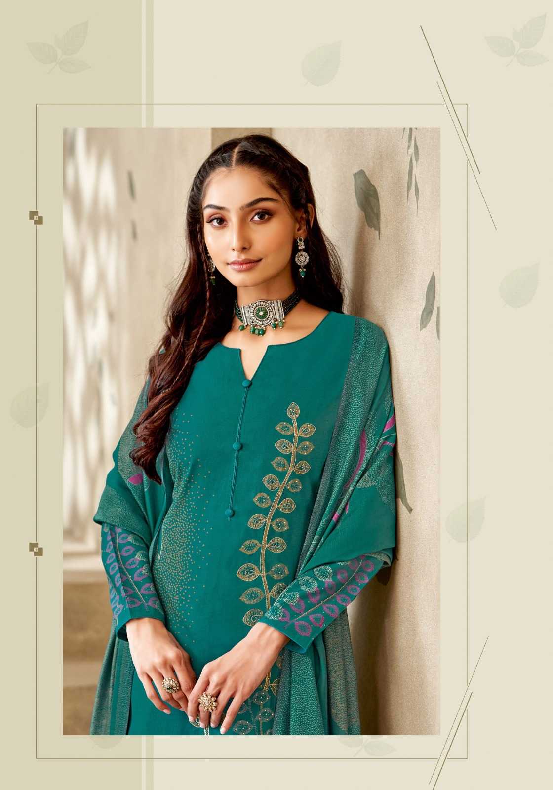 DEAR CUSTOMER WELCOME TO SURYAJYOTI LAUNCHING OF SURYAJYOTI’S NEW FANCY PRINT CATALOG 📕CATALOGUE- KYLIE VOL-1 👚TOP- PURE MODAL DISCHARGE PRINT WITH FOIL,FULL HANDWORK AND SWAROVSKI 👖BOTTOM- MODAL DYED 🧣DUPATTA- PURE MODAL DISCHARGE PRINT WITH TESSELS CUT- 2.50-2.50–2.25 RATE- 850/- PACKING- EXCLUSIVE POUCH PACK WITH BAG🧳 |