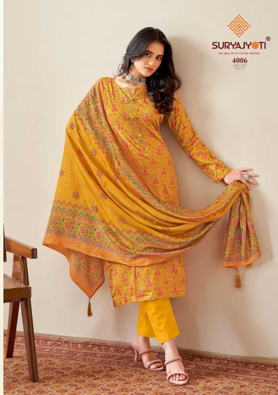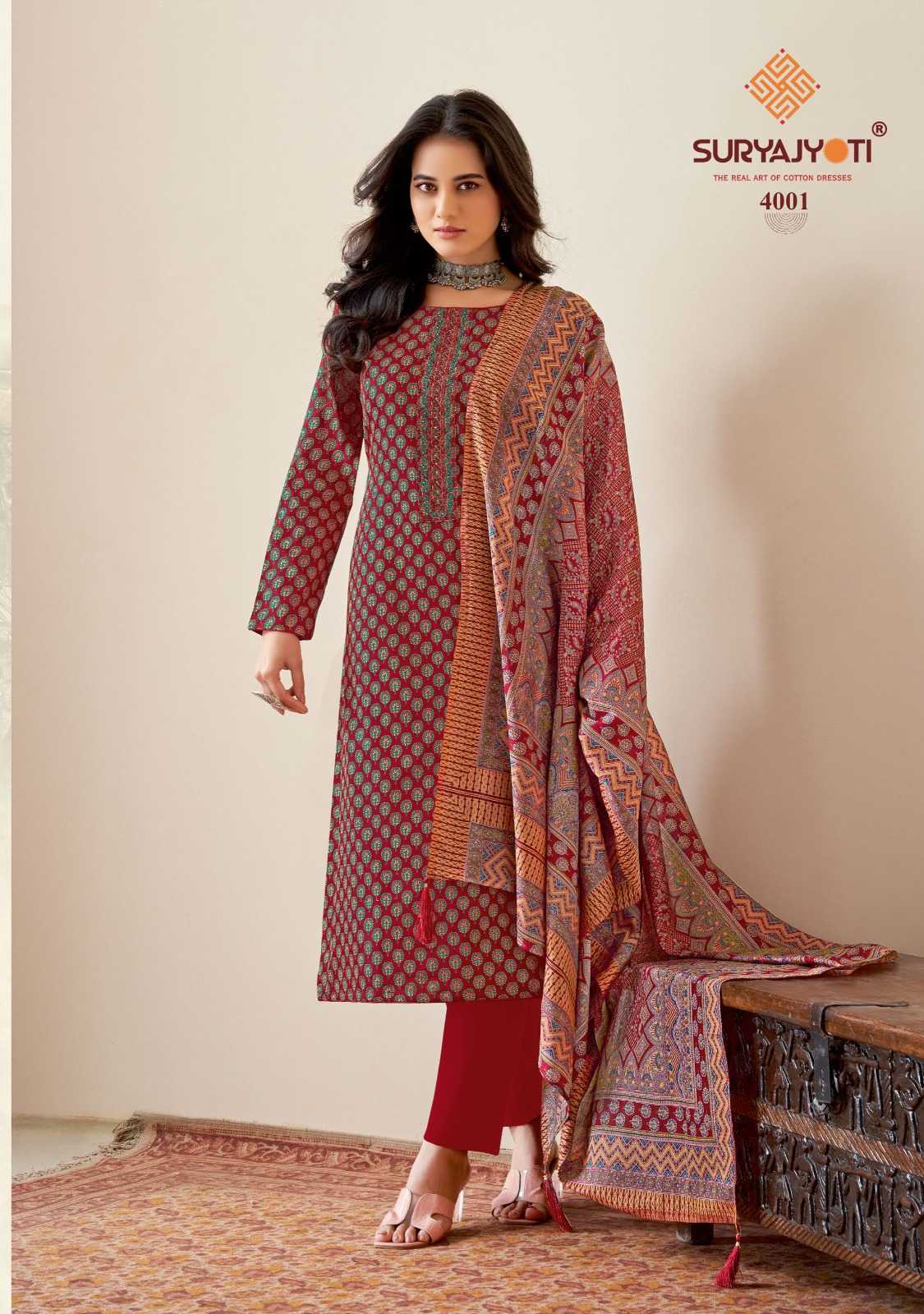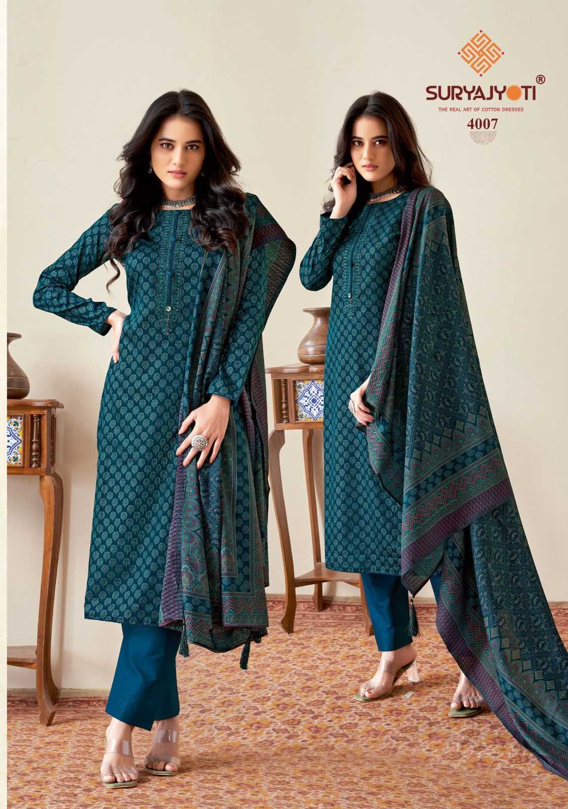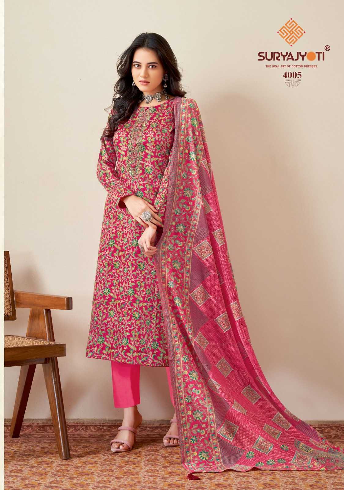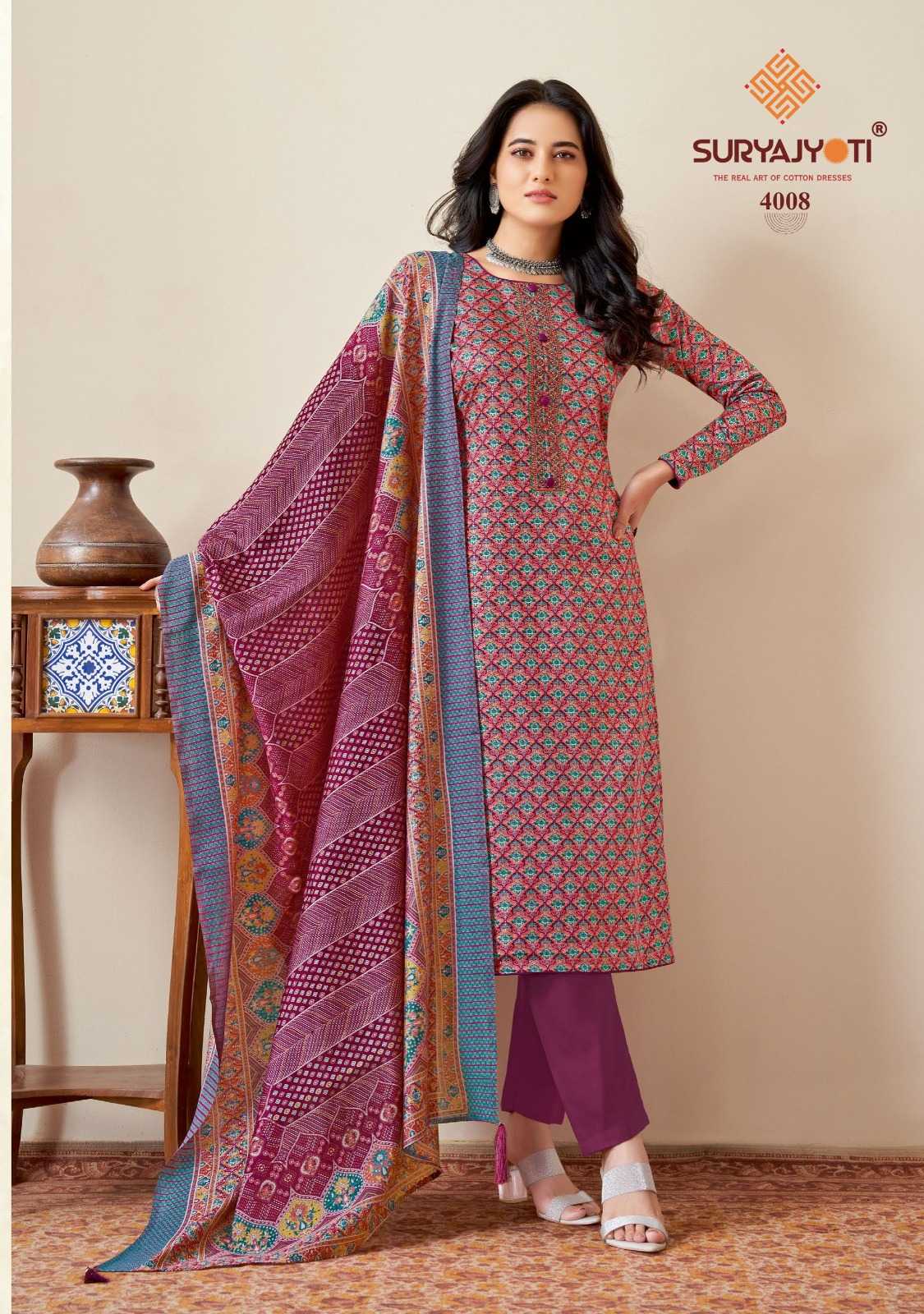 Suryajyoti Cotton Presents Latest Collection Launched on 29-11-2023. Presenting Beautiful collection of 8 PCS with Unstitched .