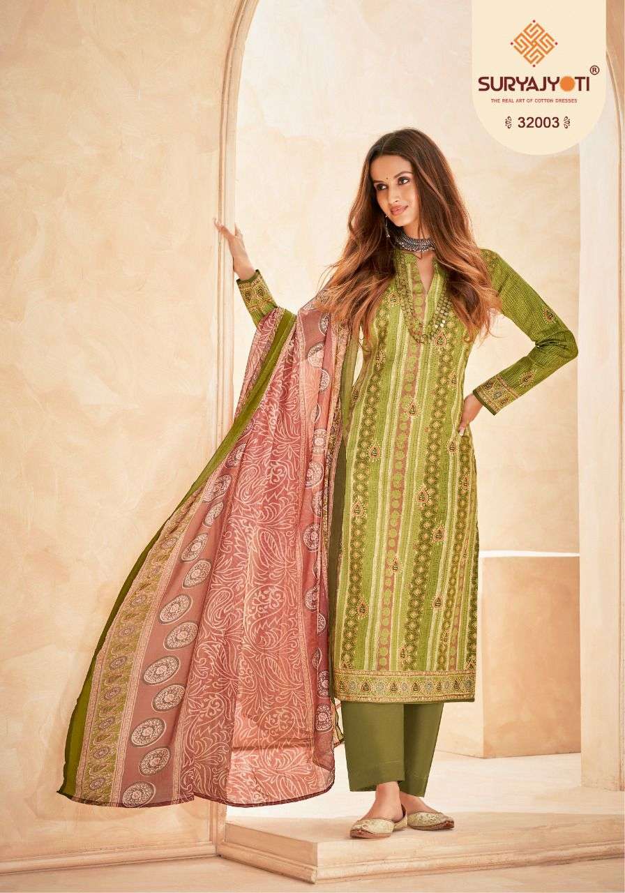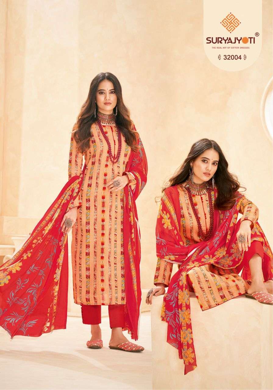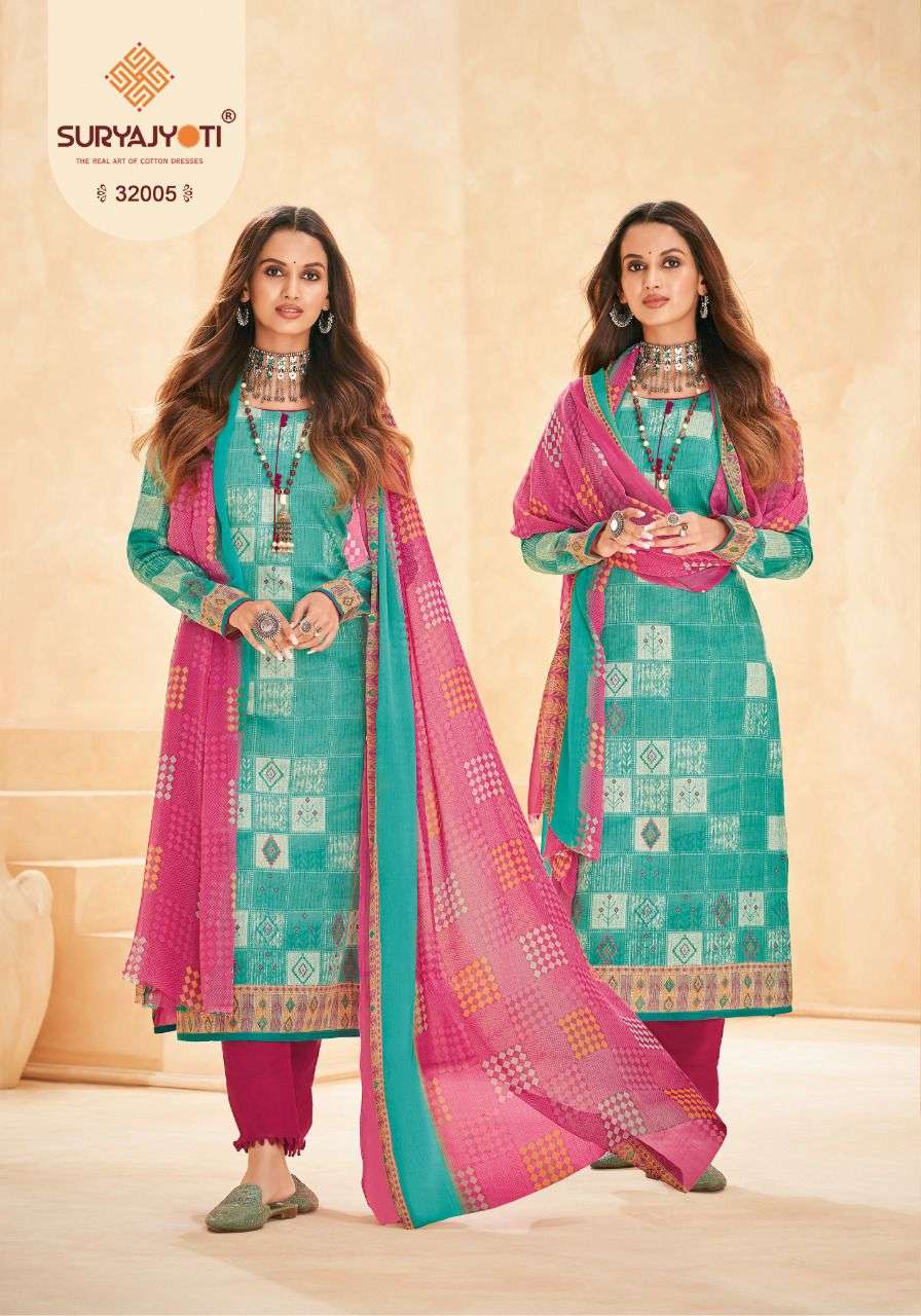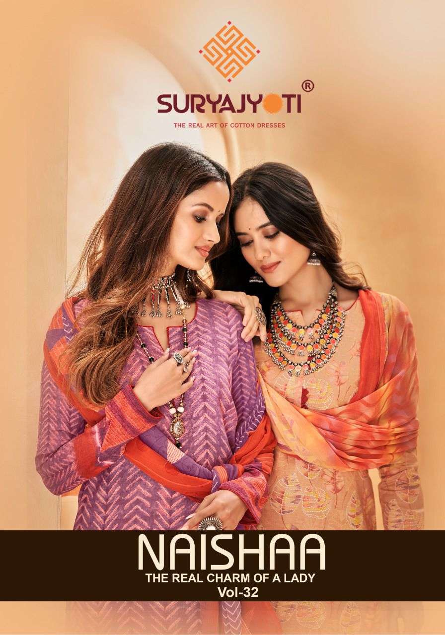 suryajyoti naishaa vol 32 long cotton salwar suits materials with chiffon dupatta