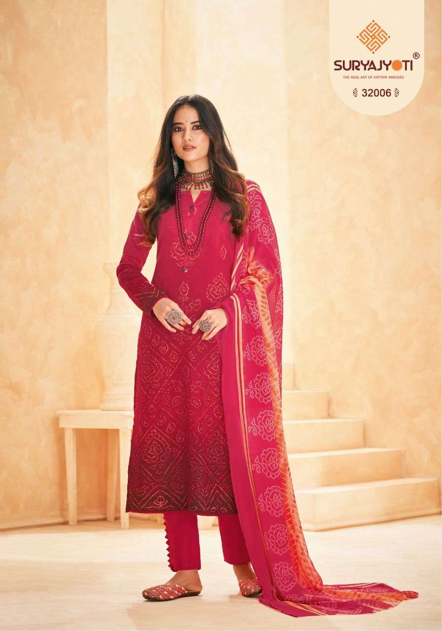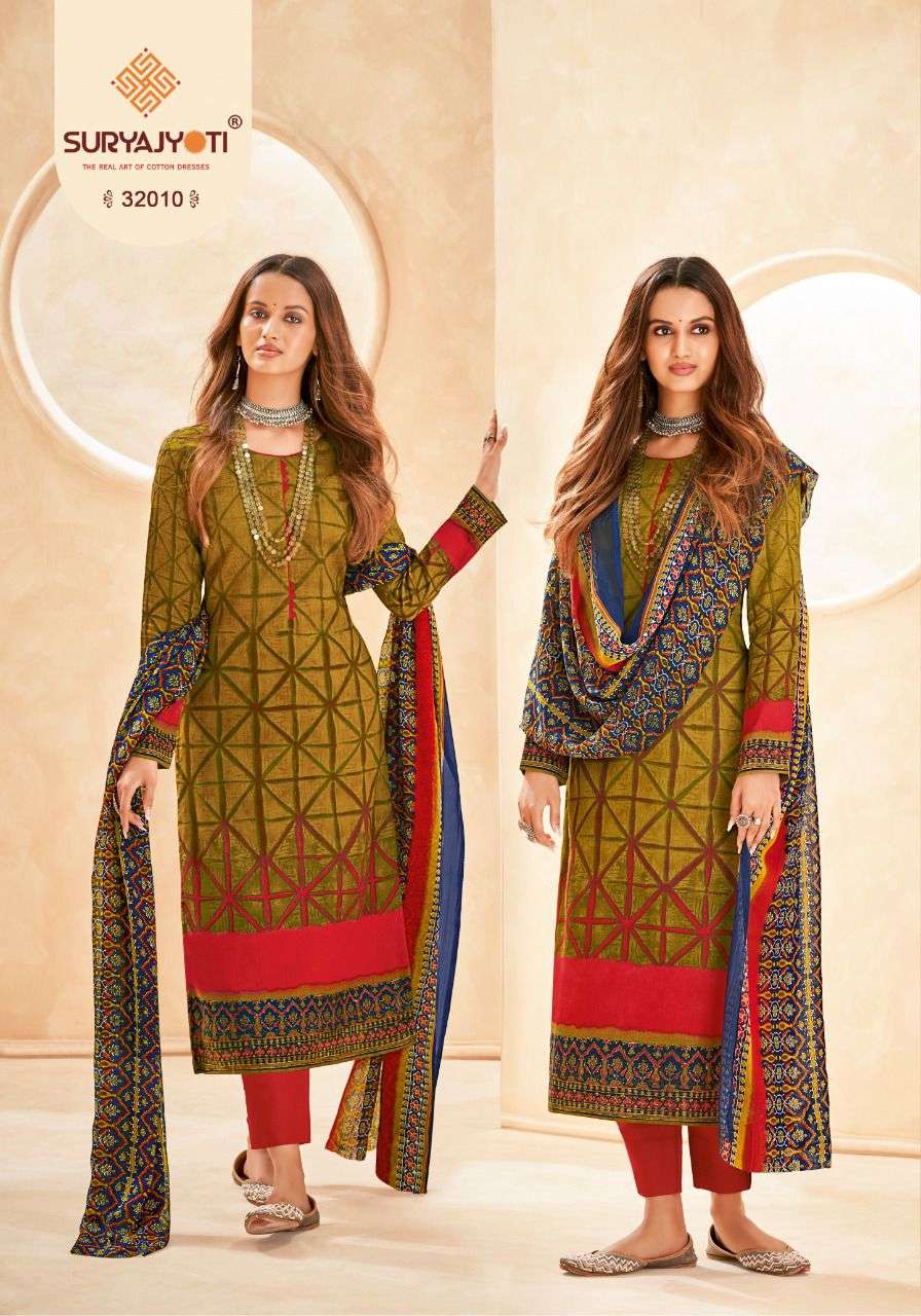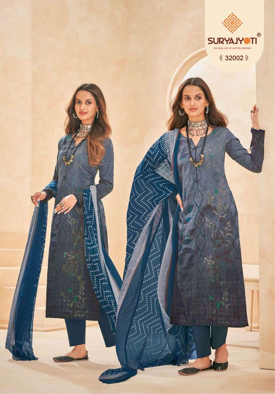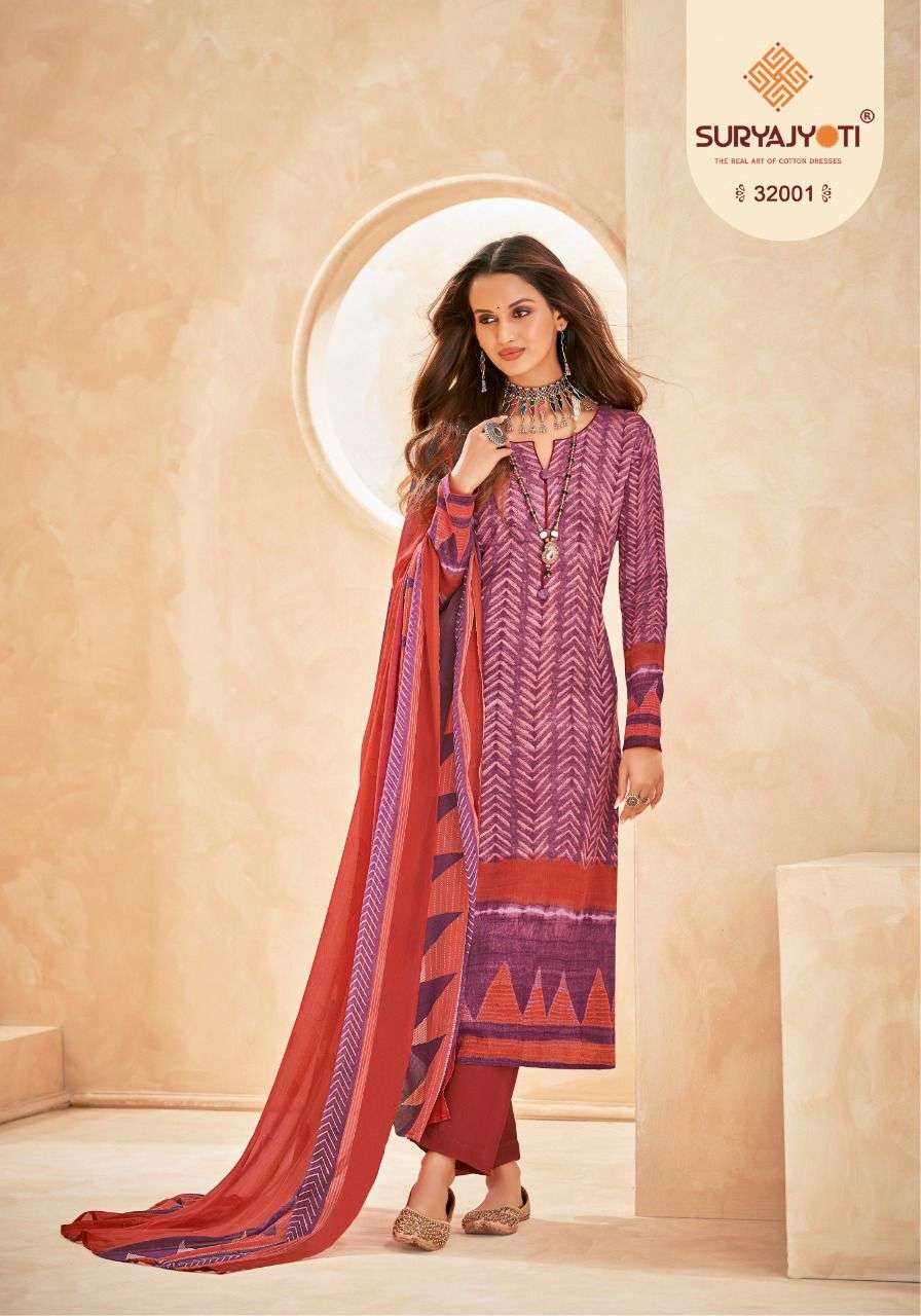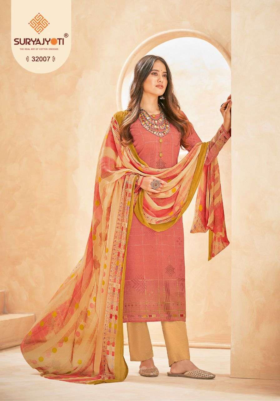 suryajyoti naishaa vol 32 long cotton salwar suits materials with chiffon dupatta