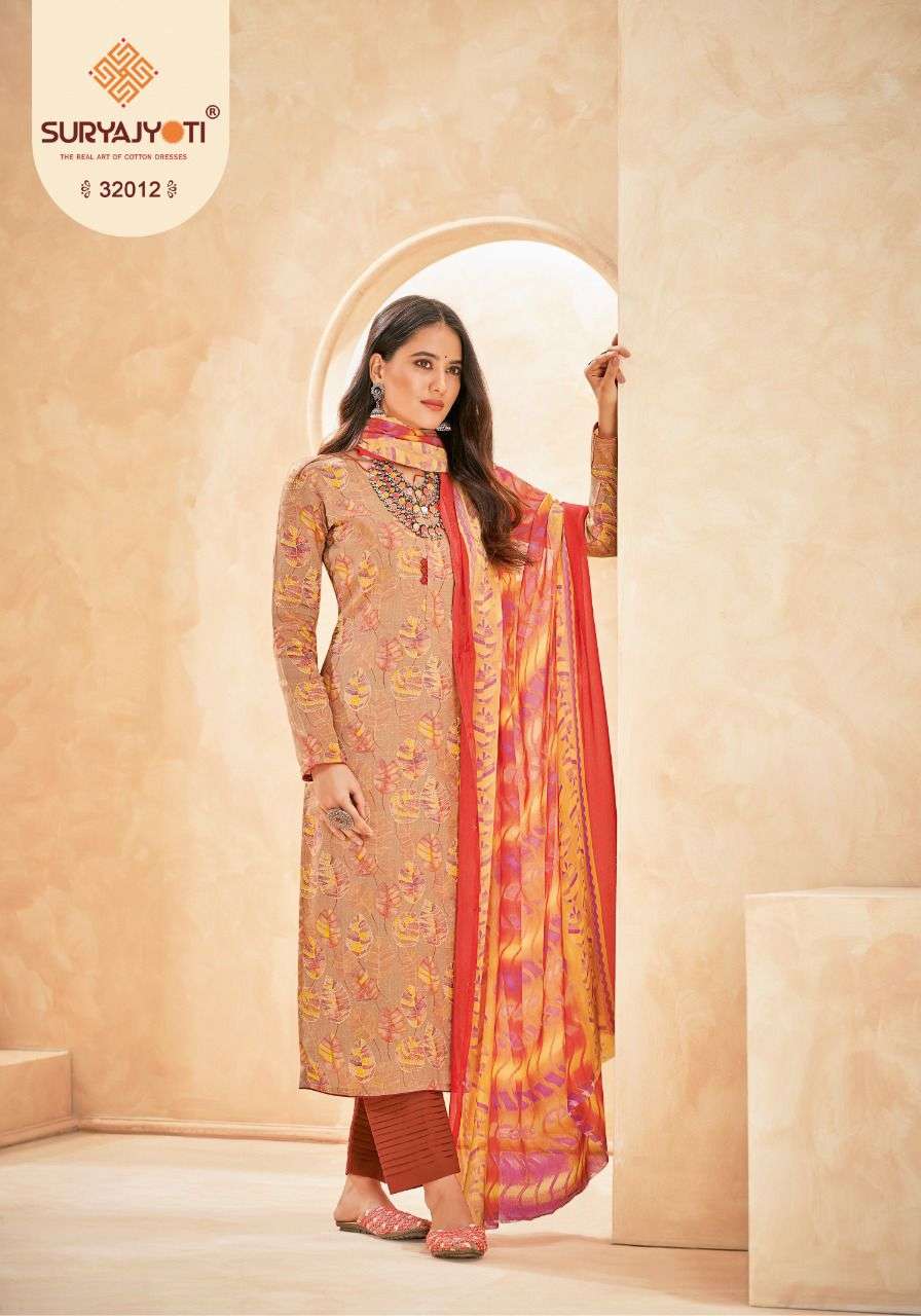Suryajyoti Cotton Presents Latest Collection Launched on 08-11-2022. Presenting Beautiful collection of 12 PCS with Unstitched .